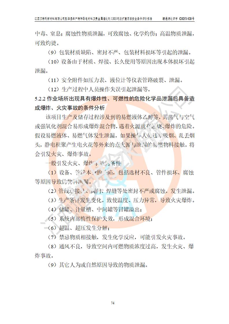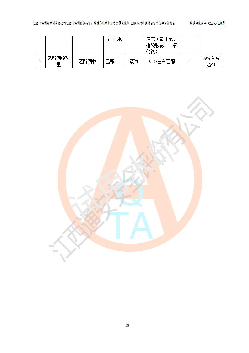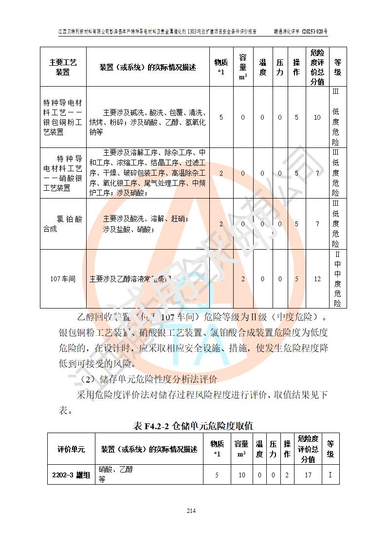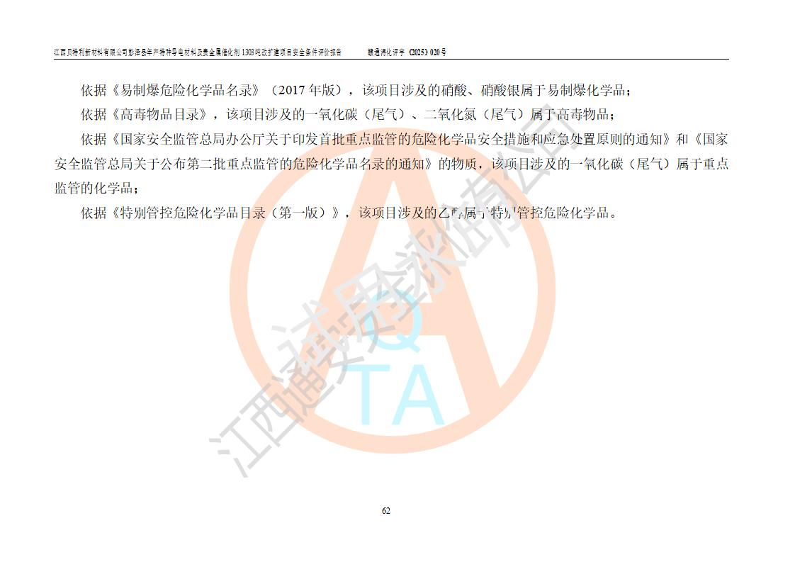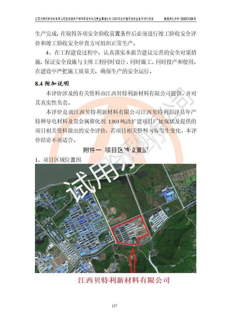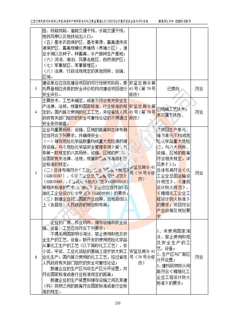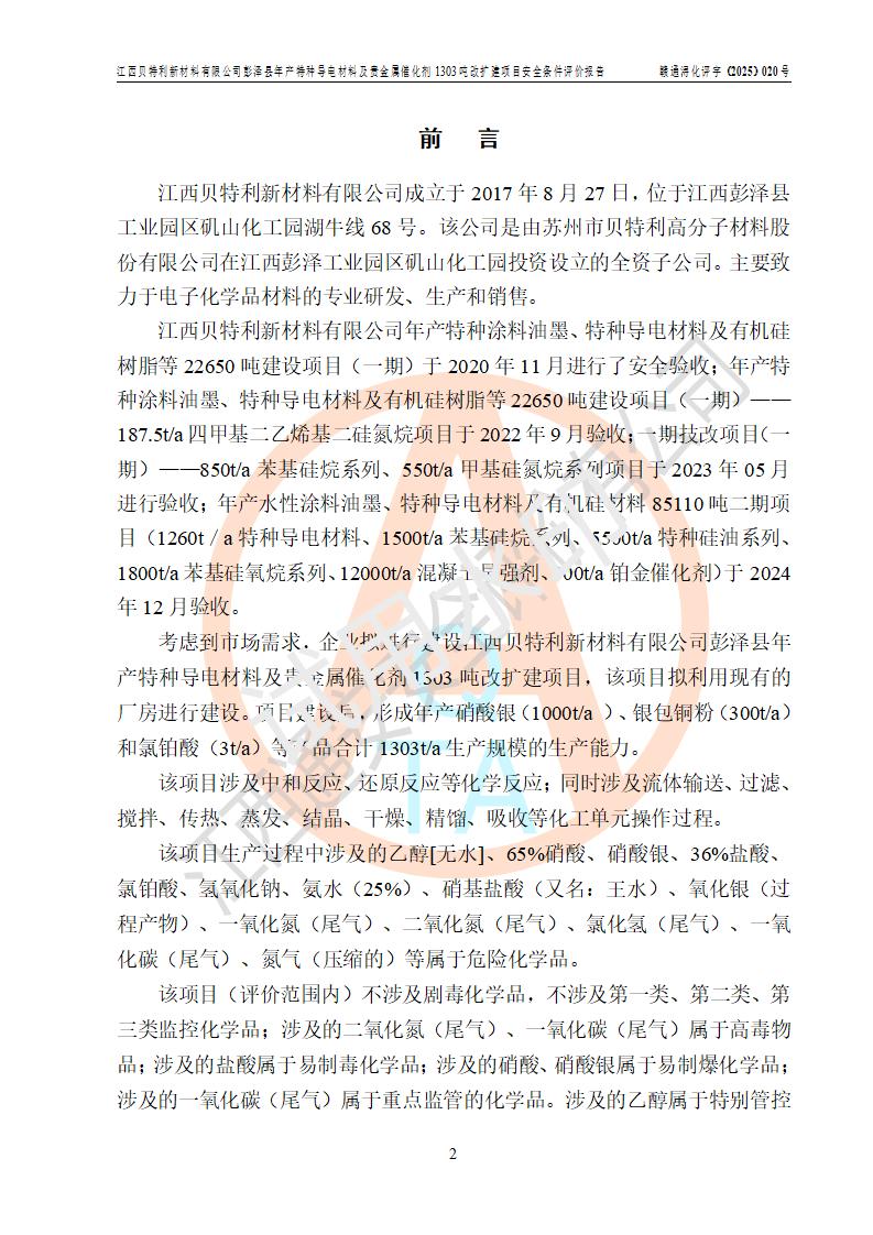 評價報告名稱 | 江西貝特利新材料有限公司彭澤縣年產特種導電材料及貴金屬催化劑1303噸改擴建項目安全條件評價報告 | |||||