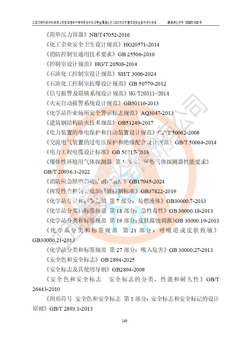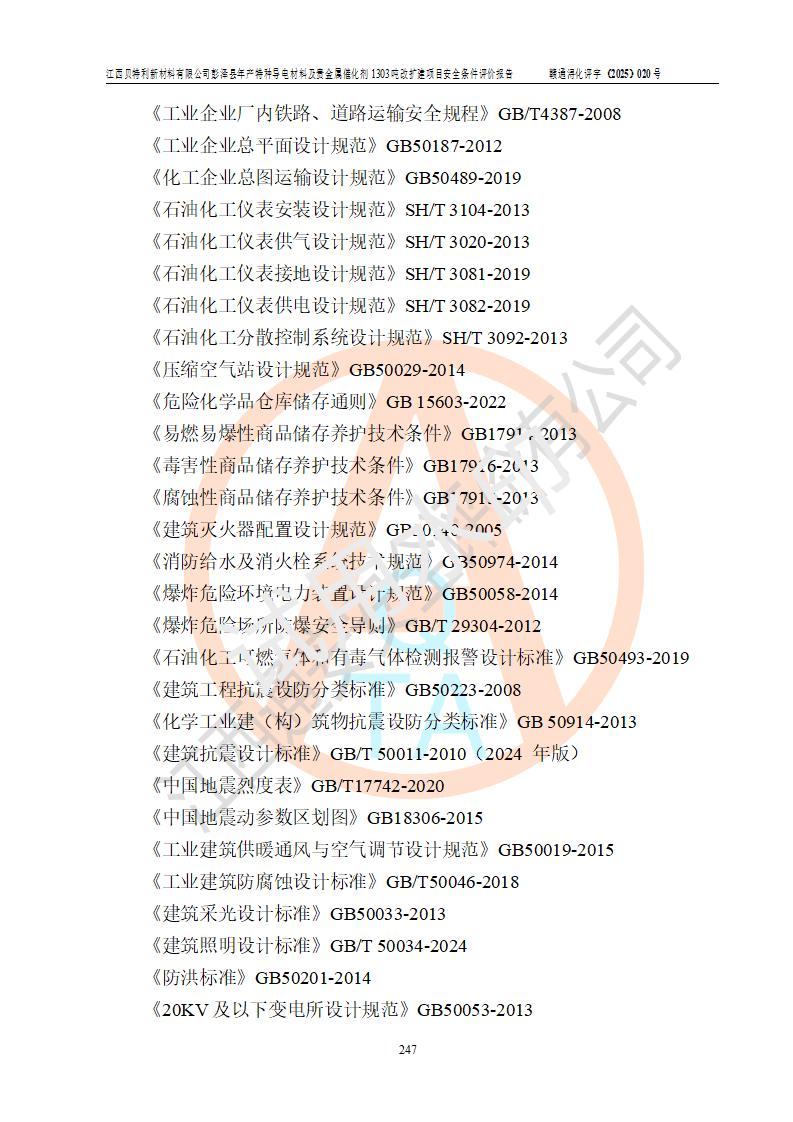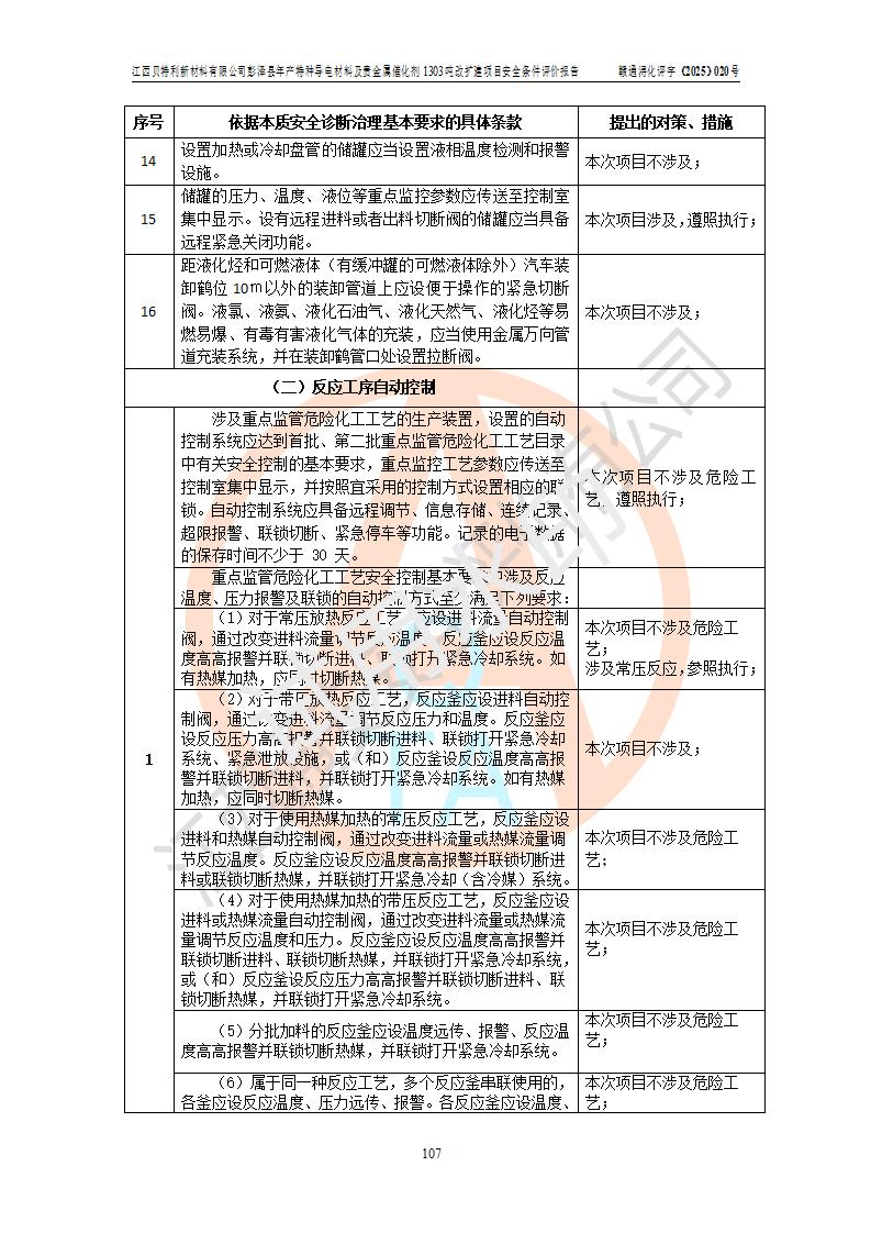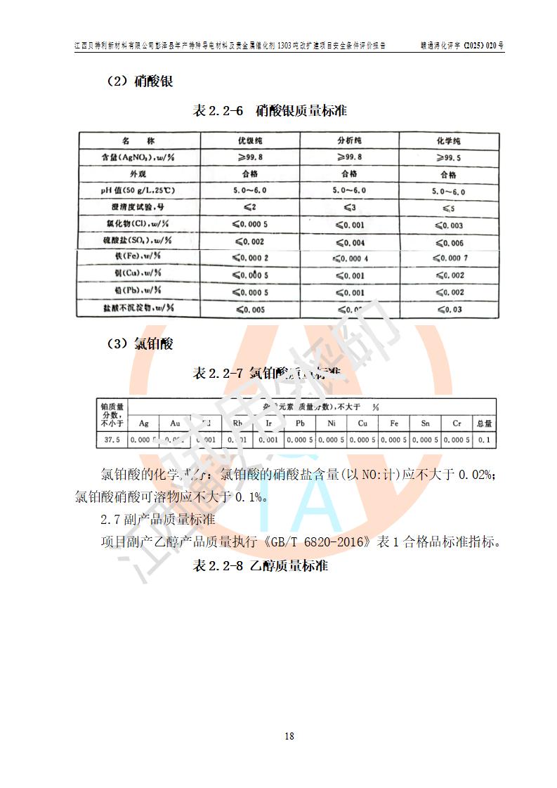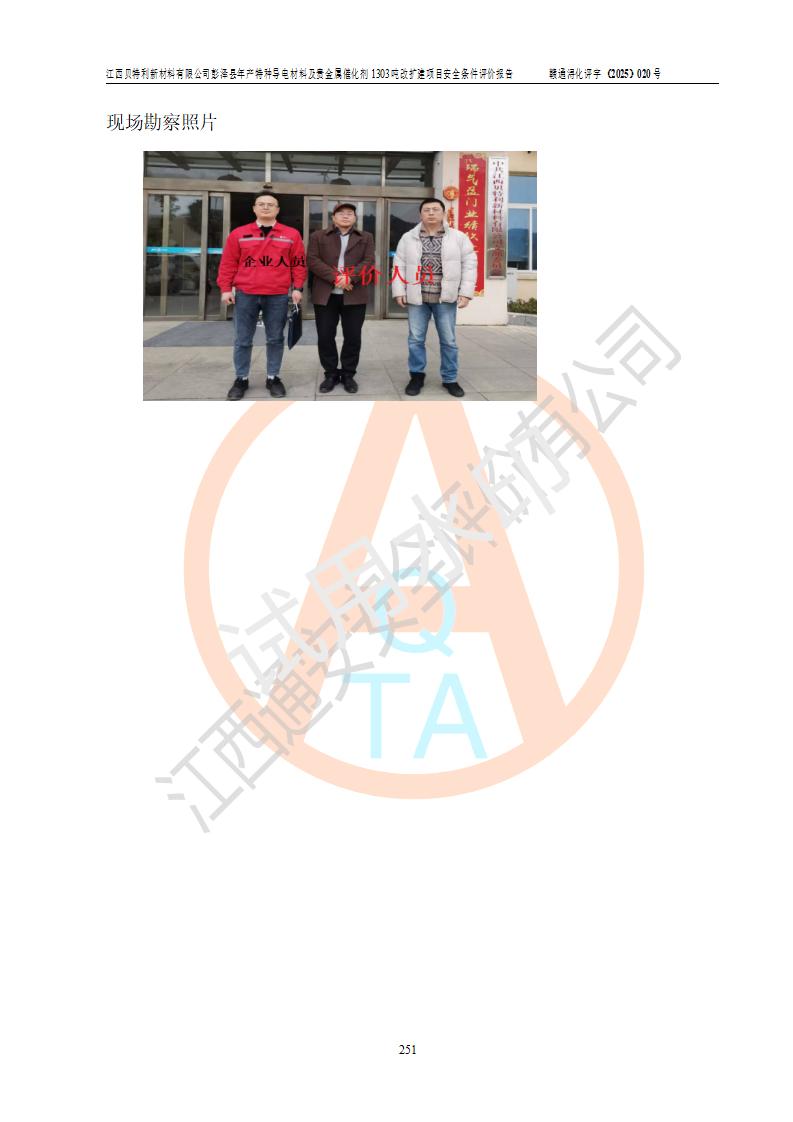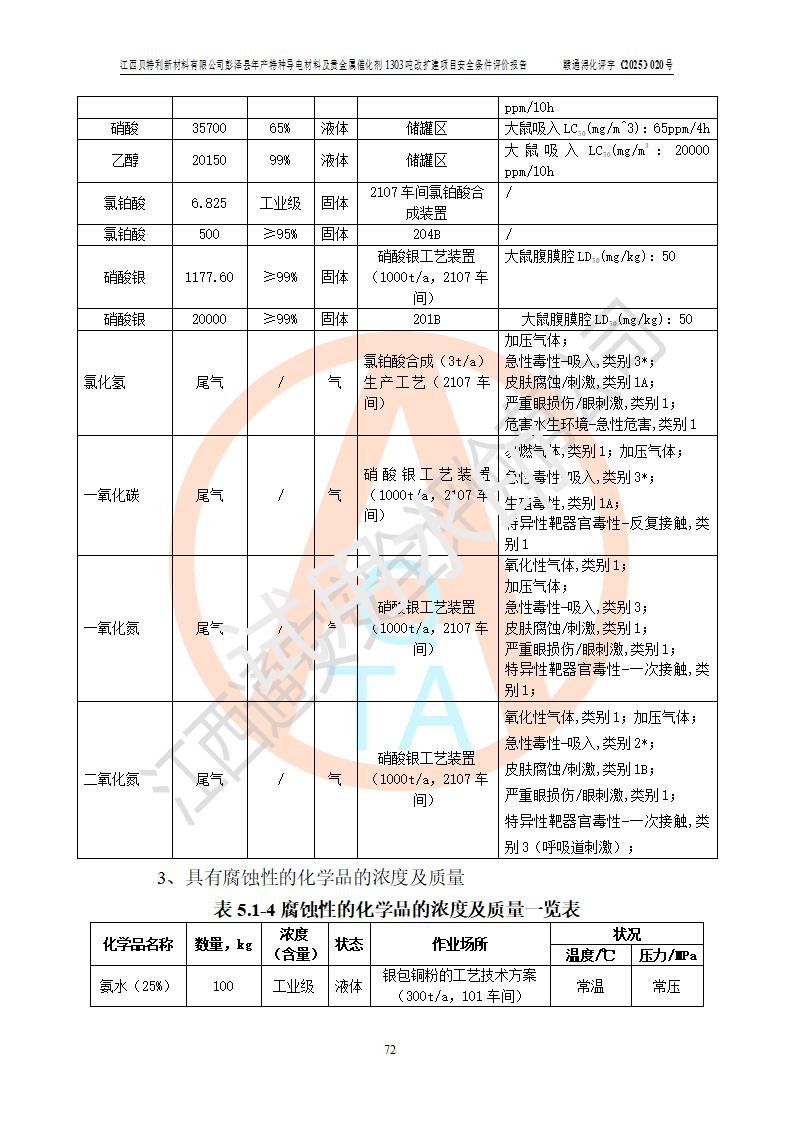 評價報告名稱 | 江西貝特利新材料有限公司彭澤縣年產特種導電材料及貴金屬催化劑1303噸改擴建項目安全條件評價報告 | |||||