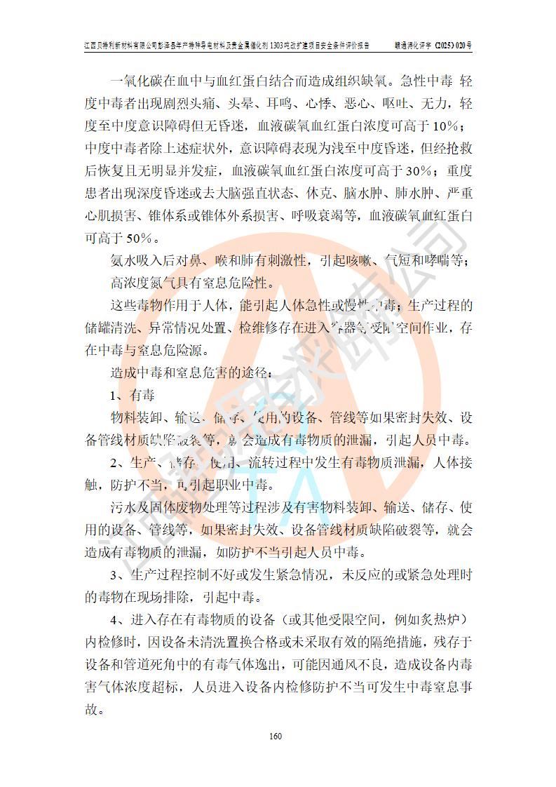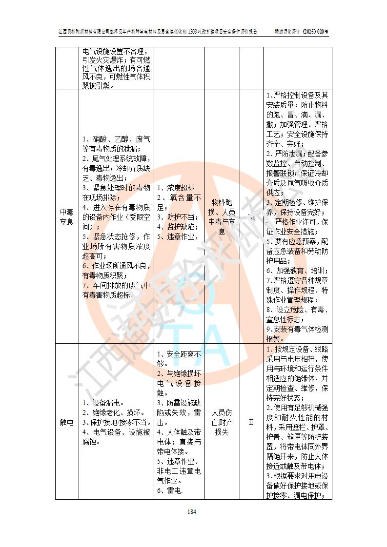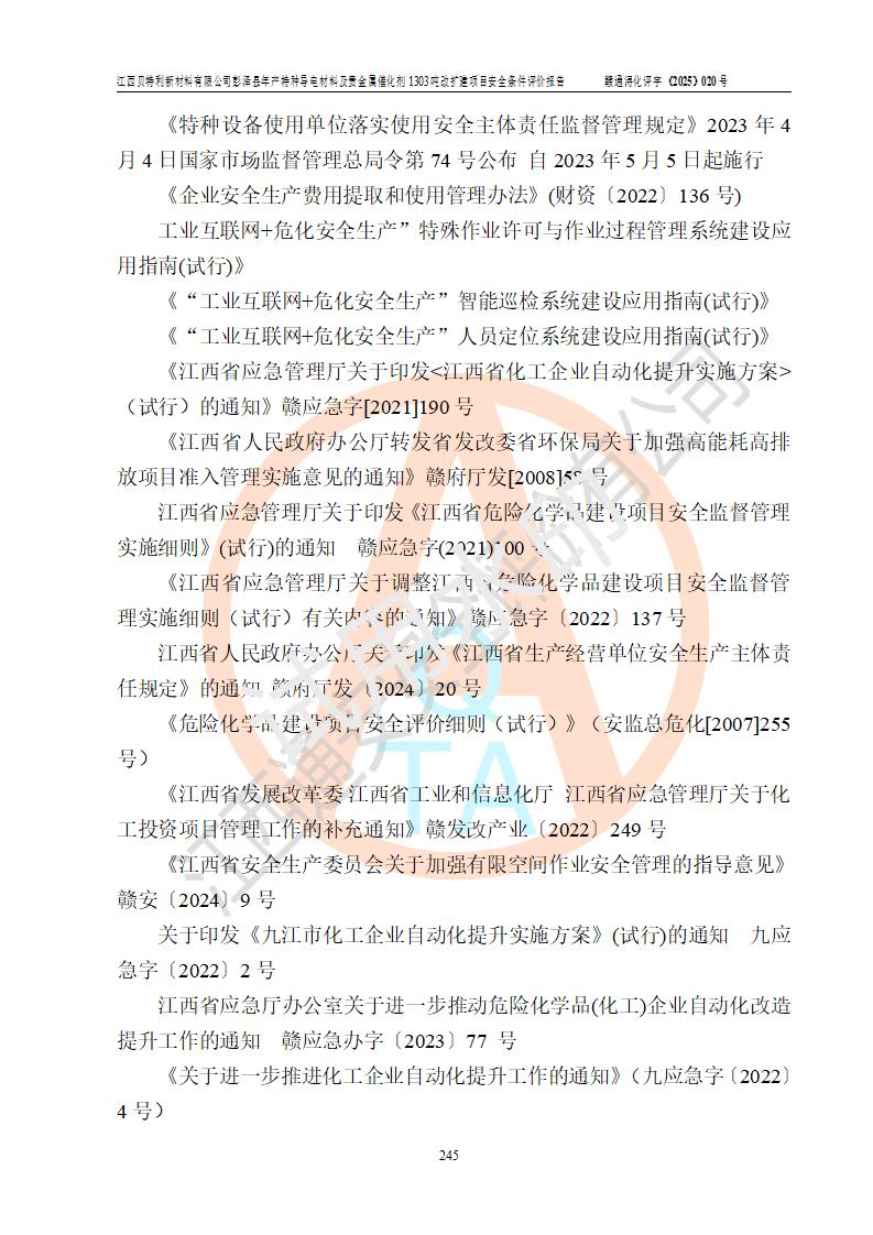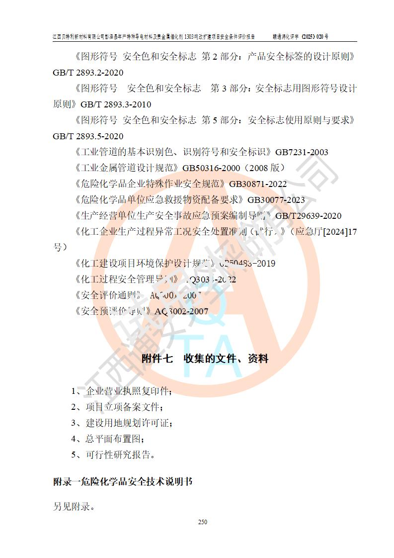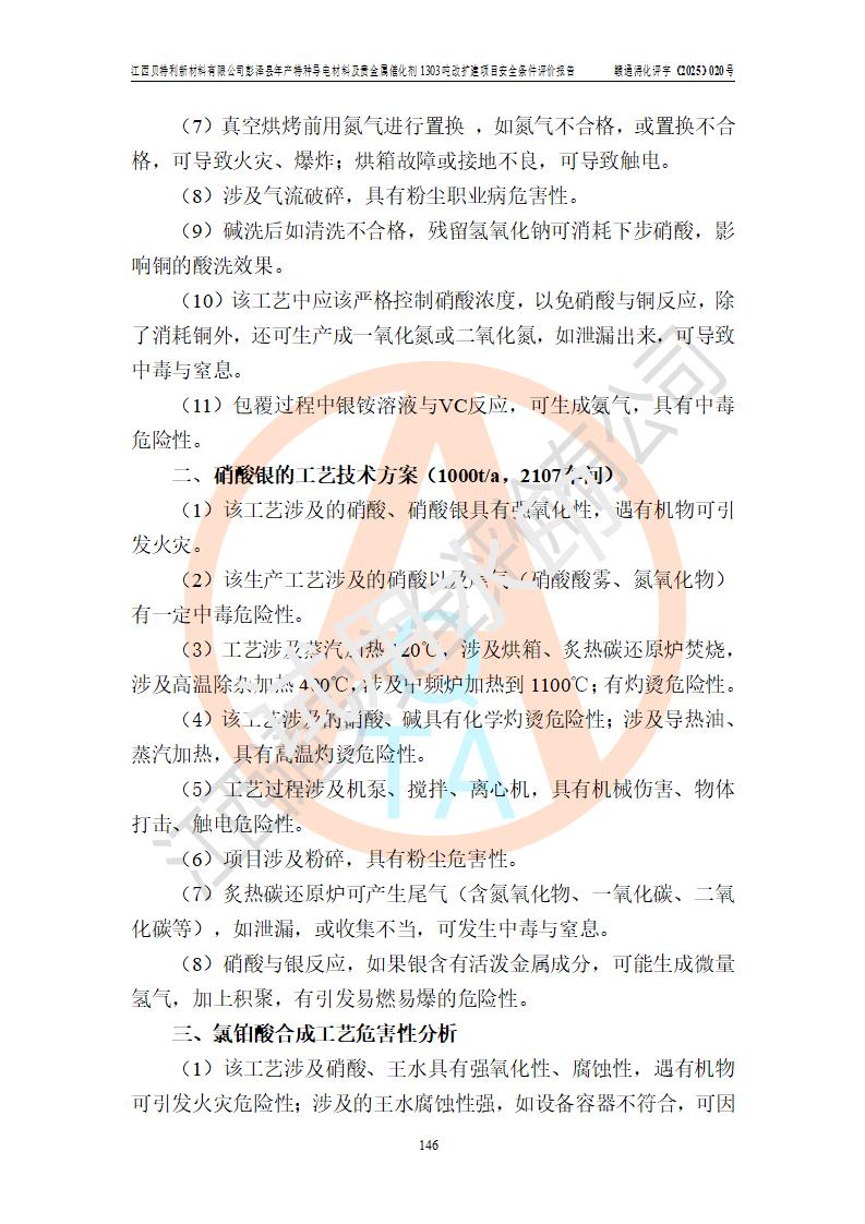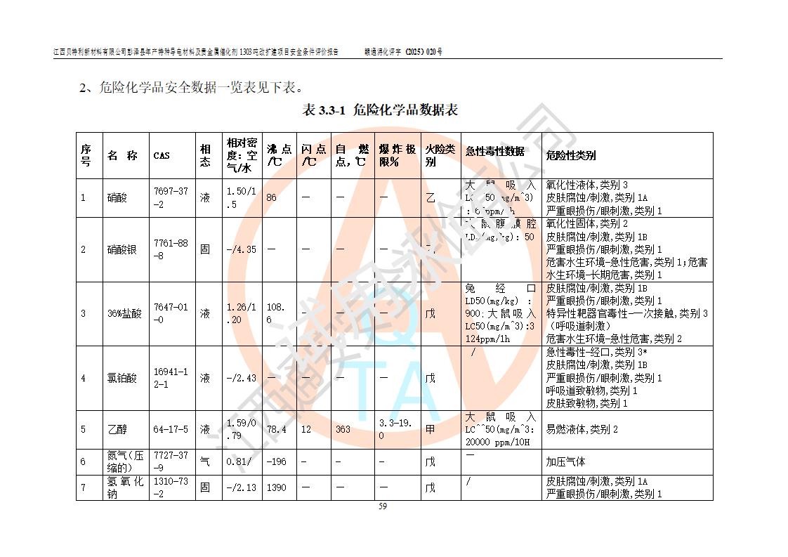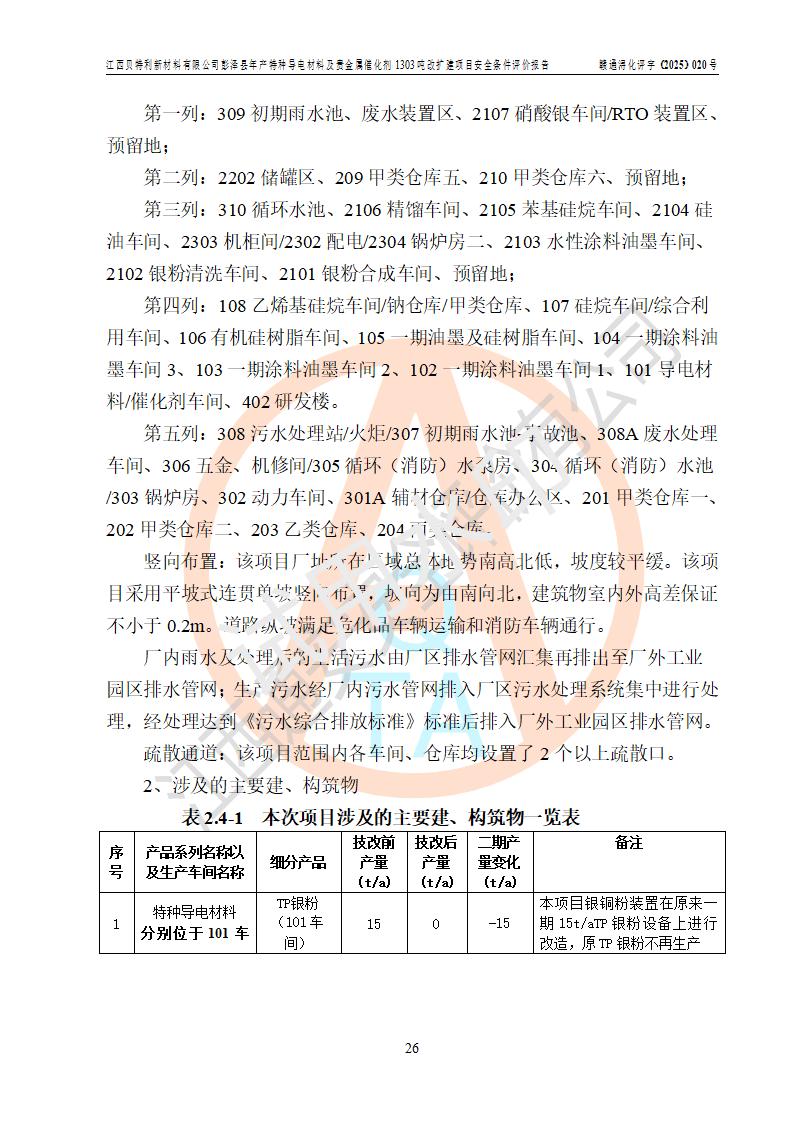評價報告名稱 | 江西貝特利新材料有限公司彭澤縣年產特種導電材料及貴金屬催化劑1303噸改擴建項目安全條件評價報告 | |||||