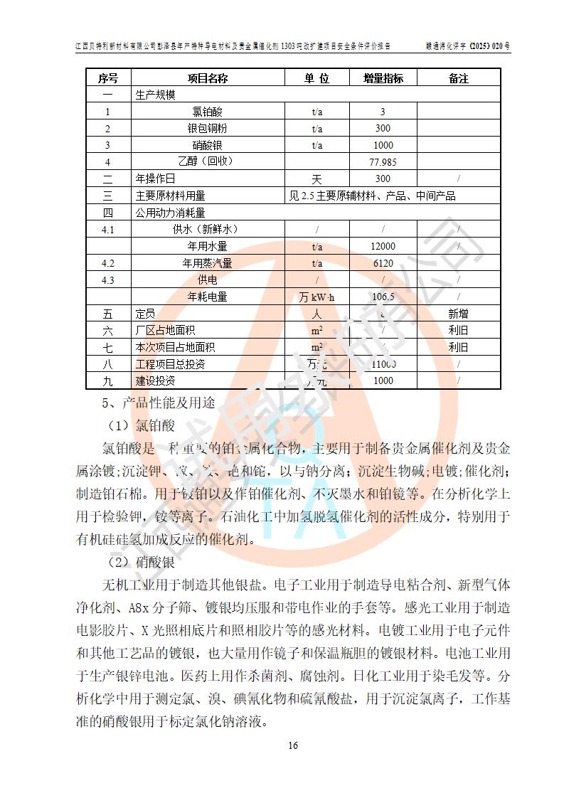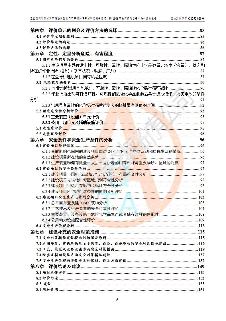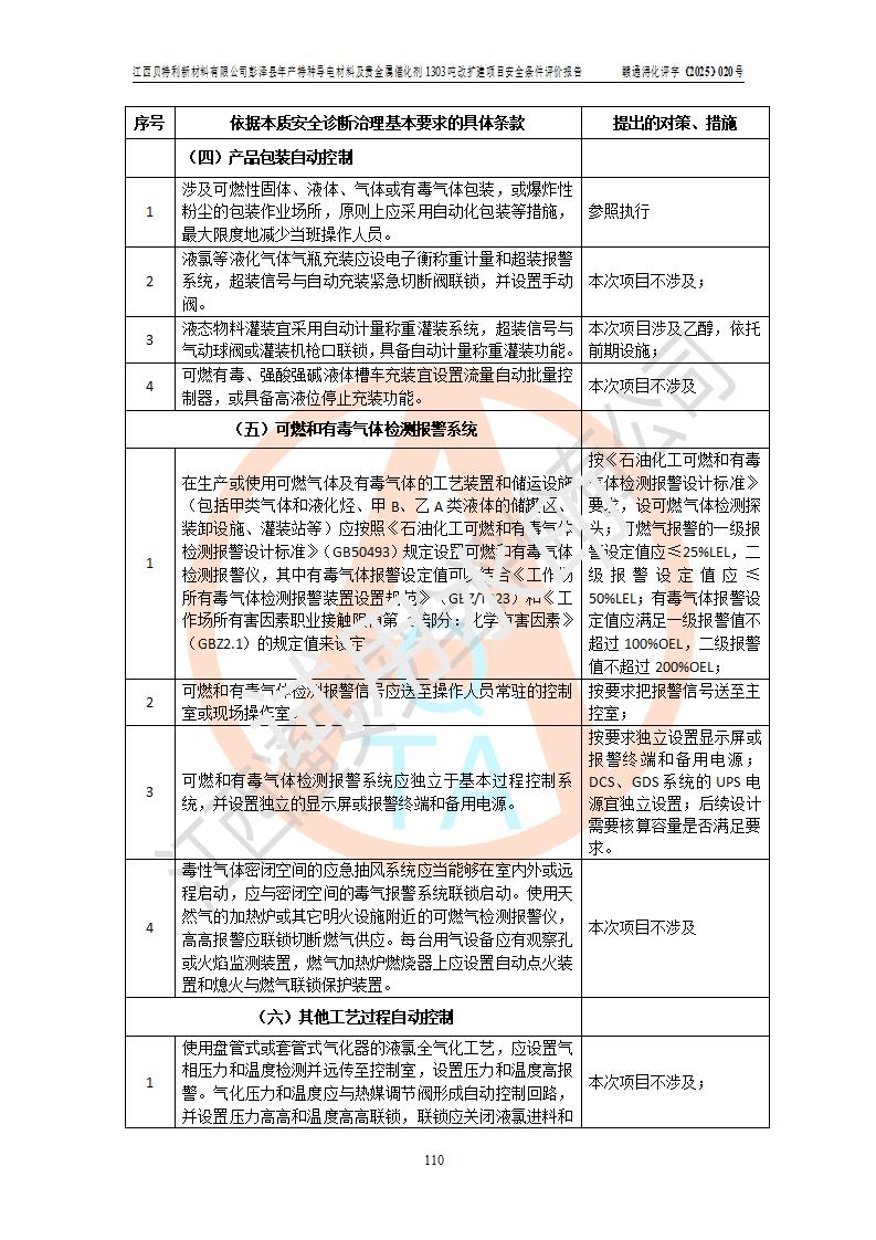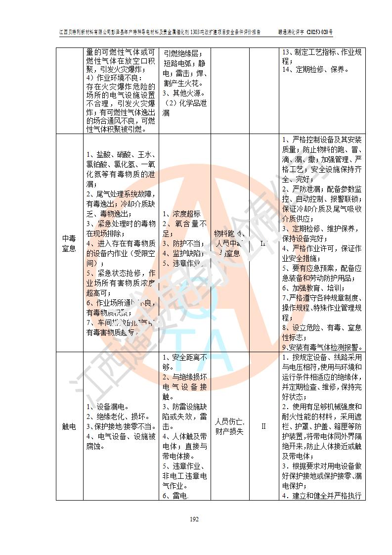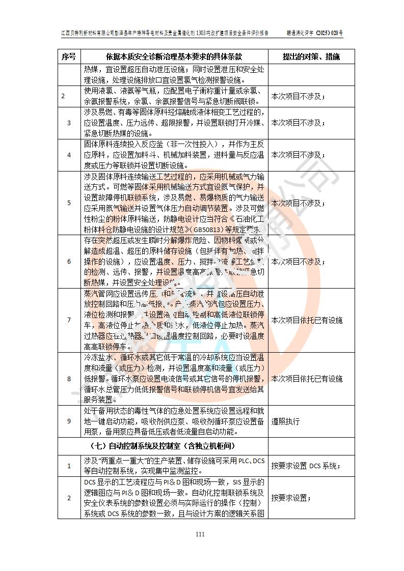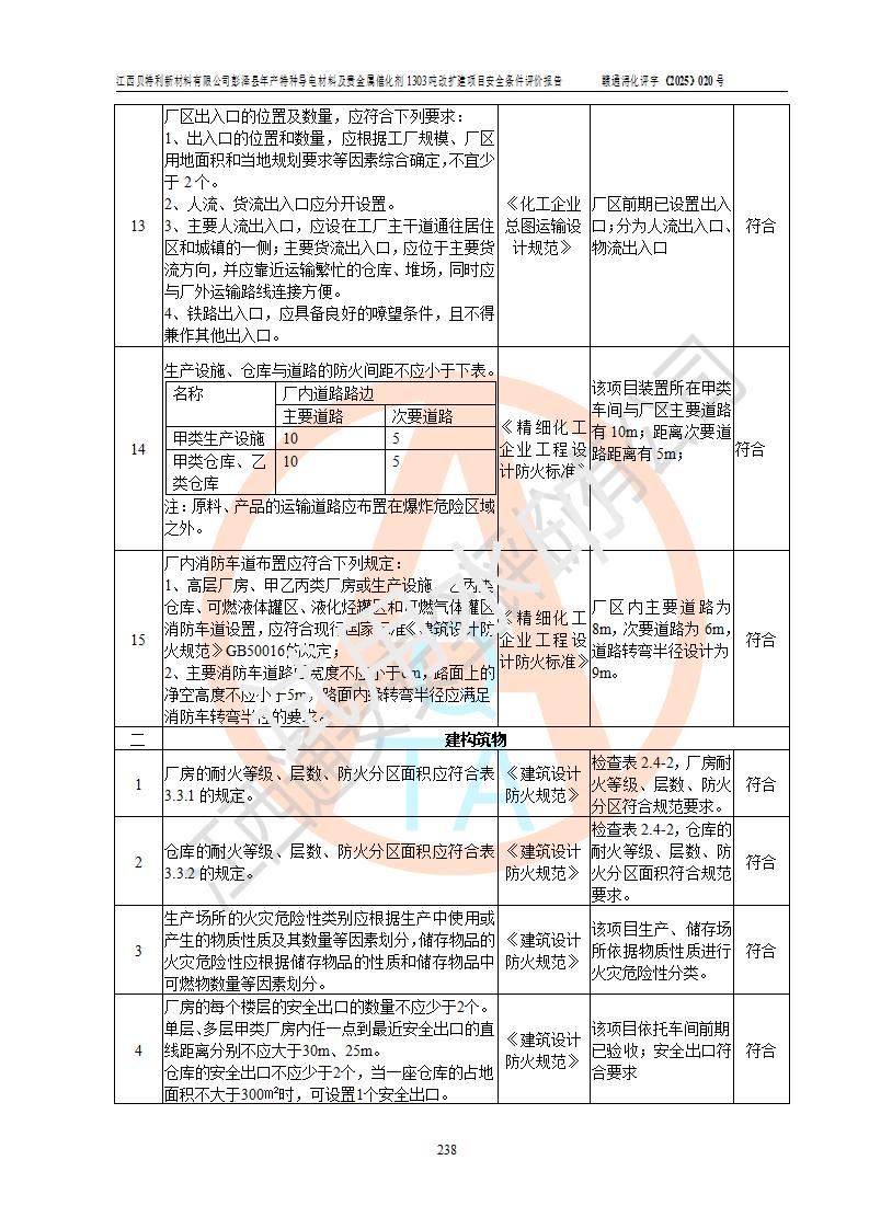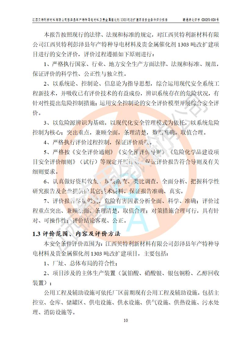 評價報告名稱 | 江西貝特利新材料有限公司彭澤縣年產特種導電材料及貴金屬催化劑1303噸改擴建項目安全條件評價報告 | |||||