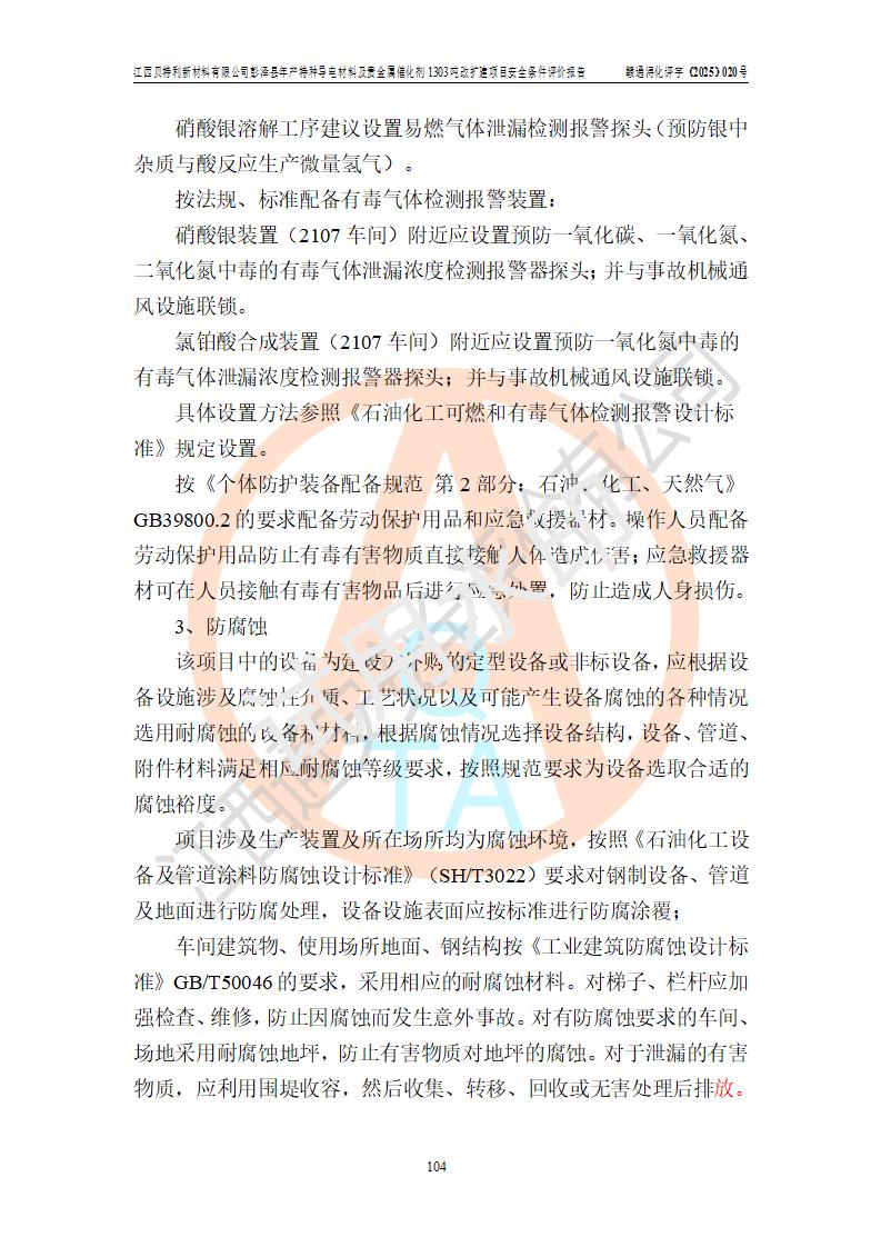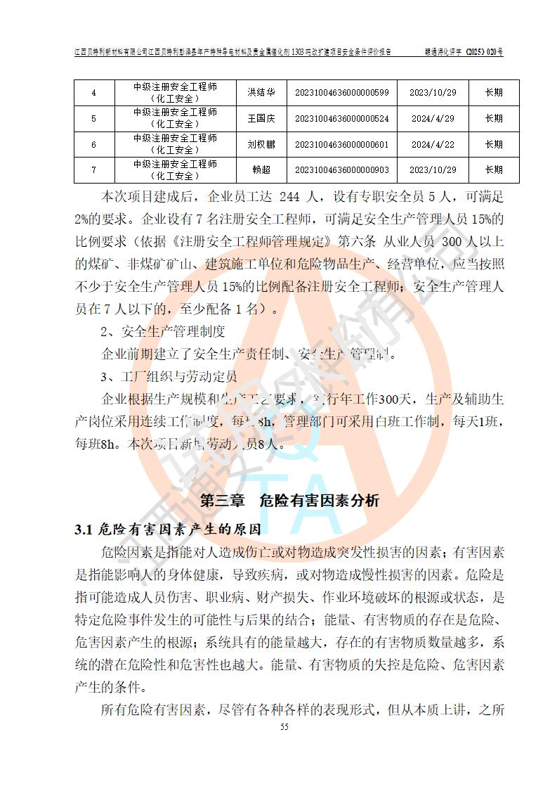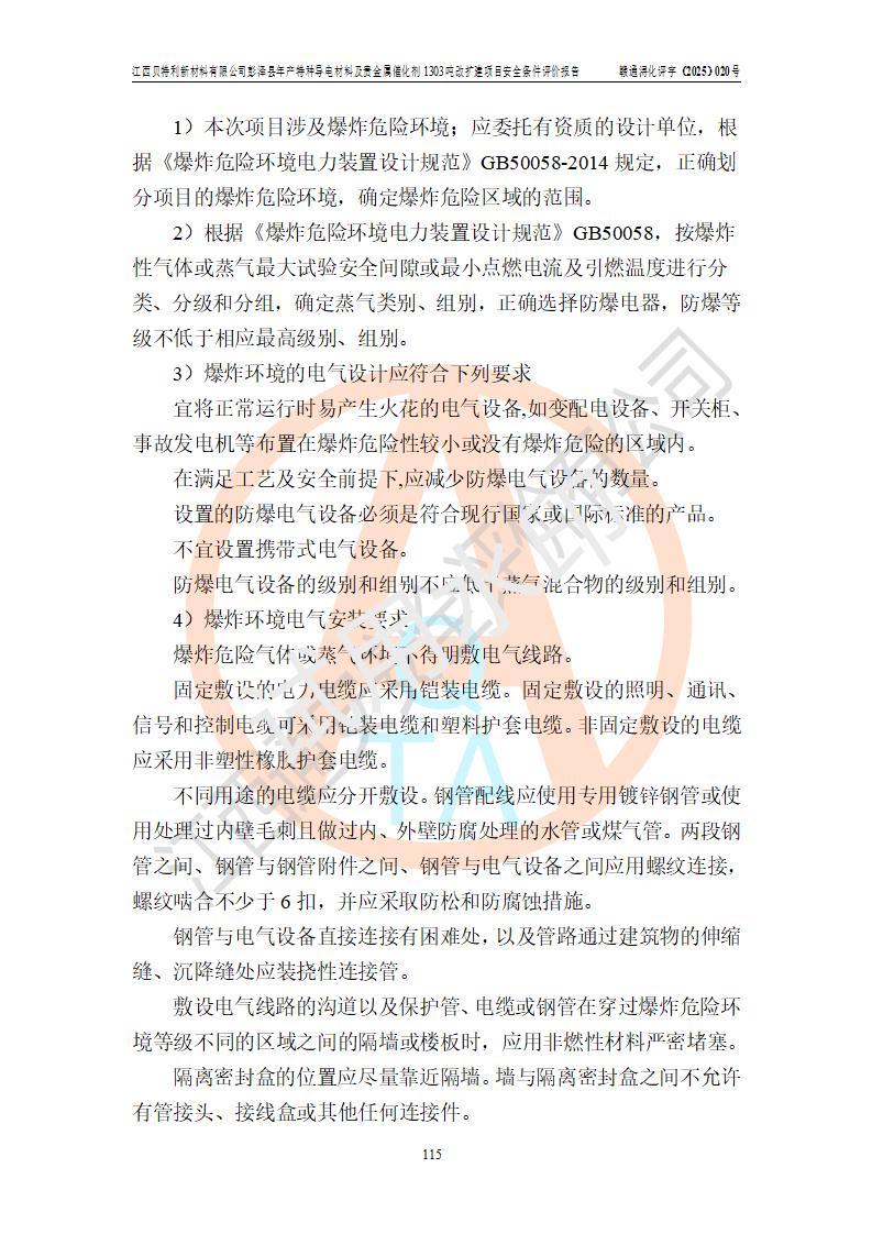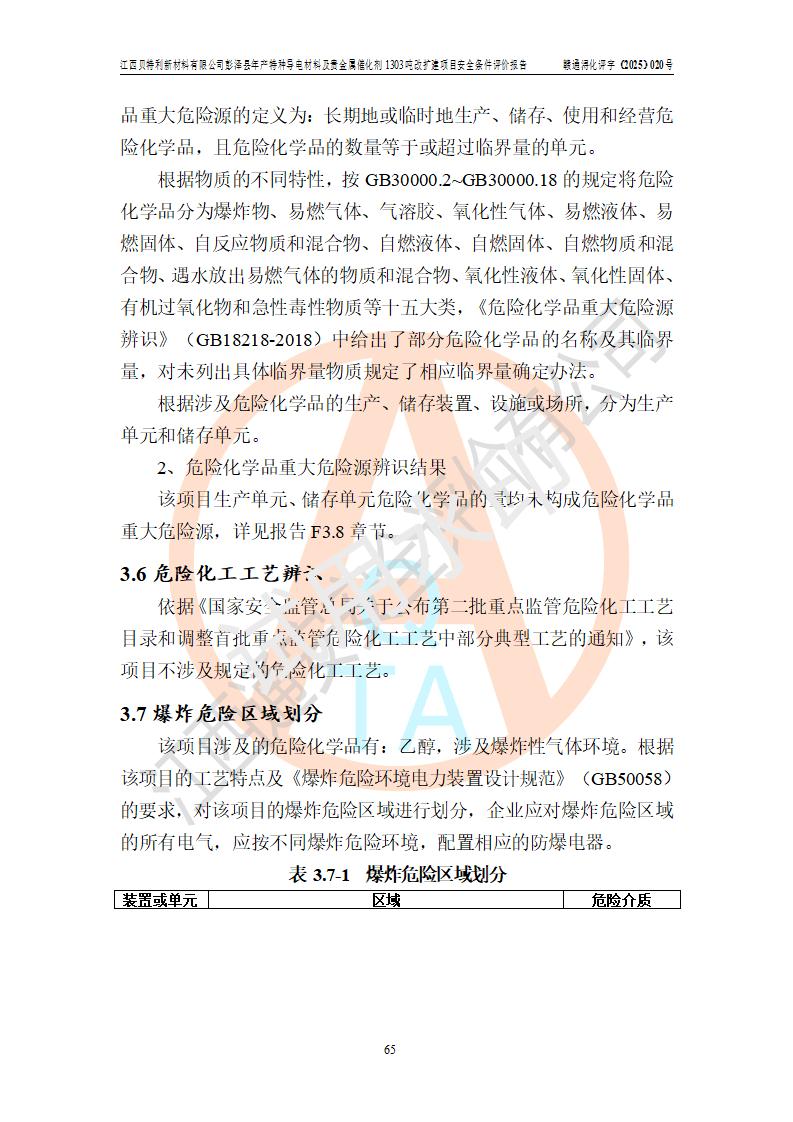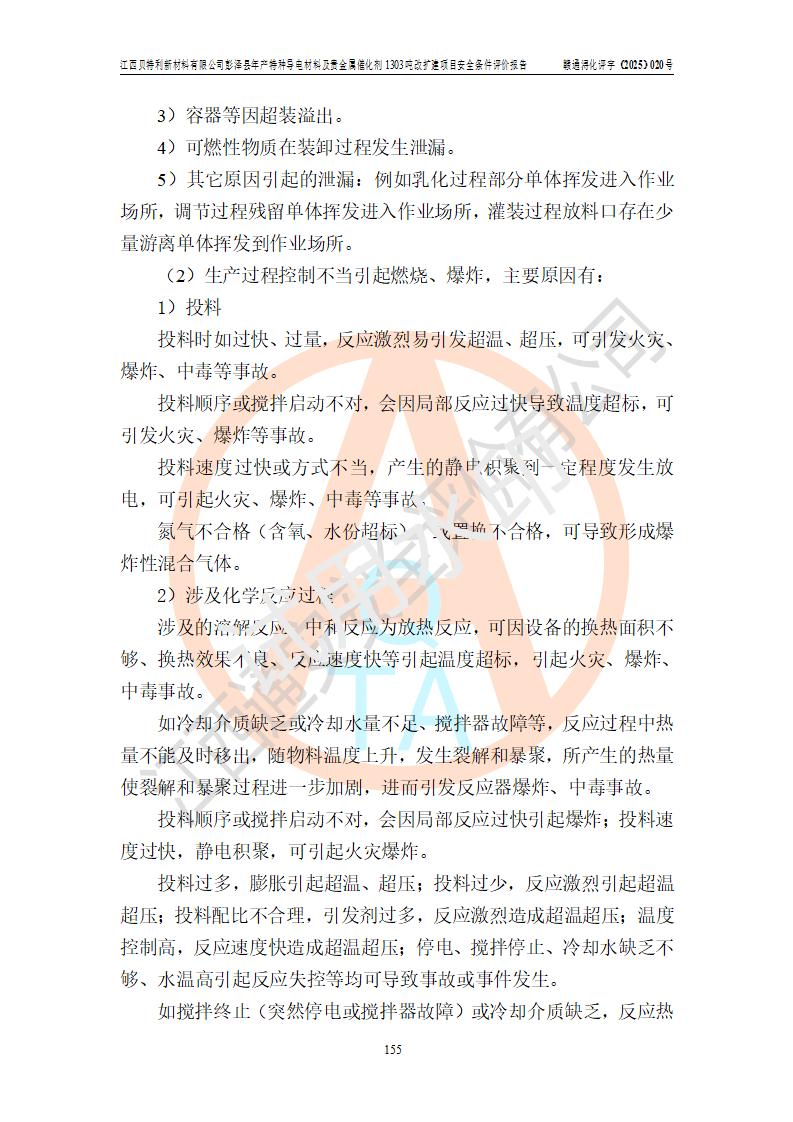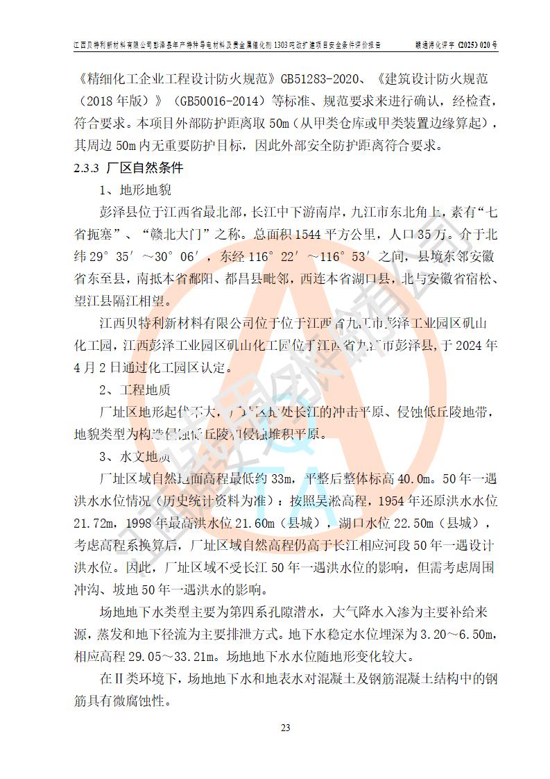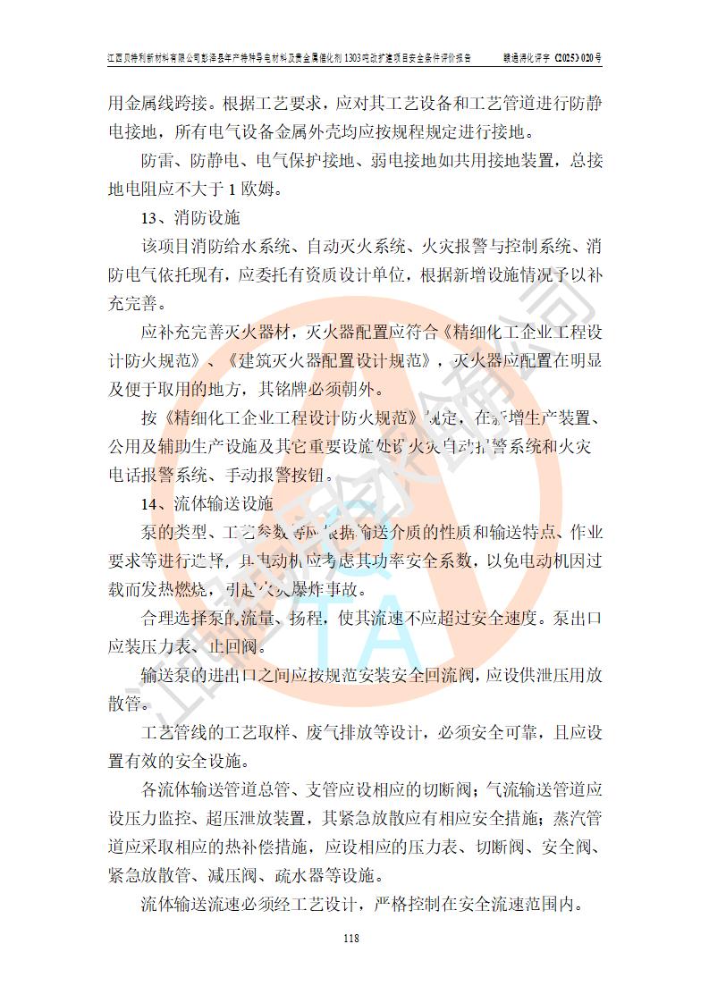 評價報告名稱 | 江西貝特利新材料有限公司彭澤縣年產特種導電材料及貴金屬催化劑1303噸改擴建項目安全條件評價報告 | |||||