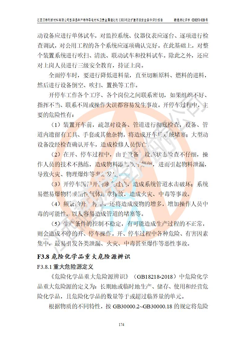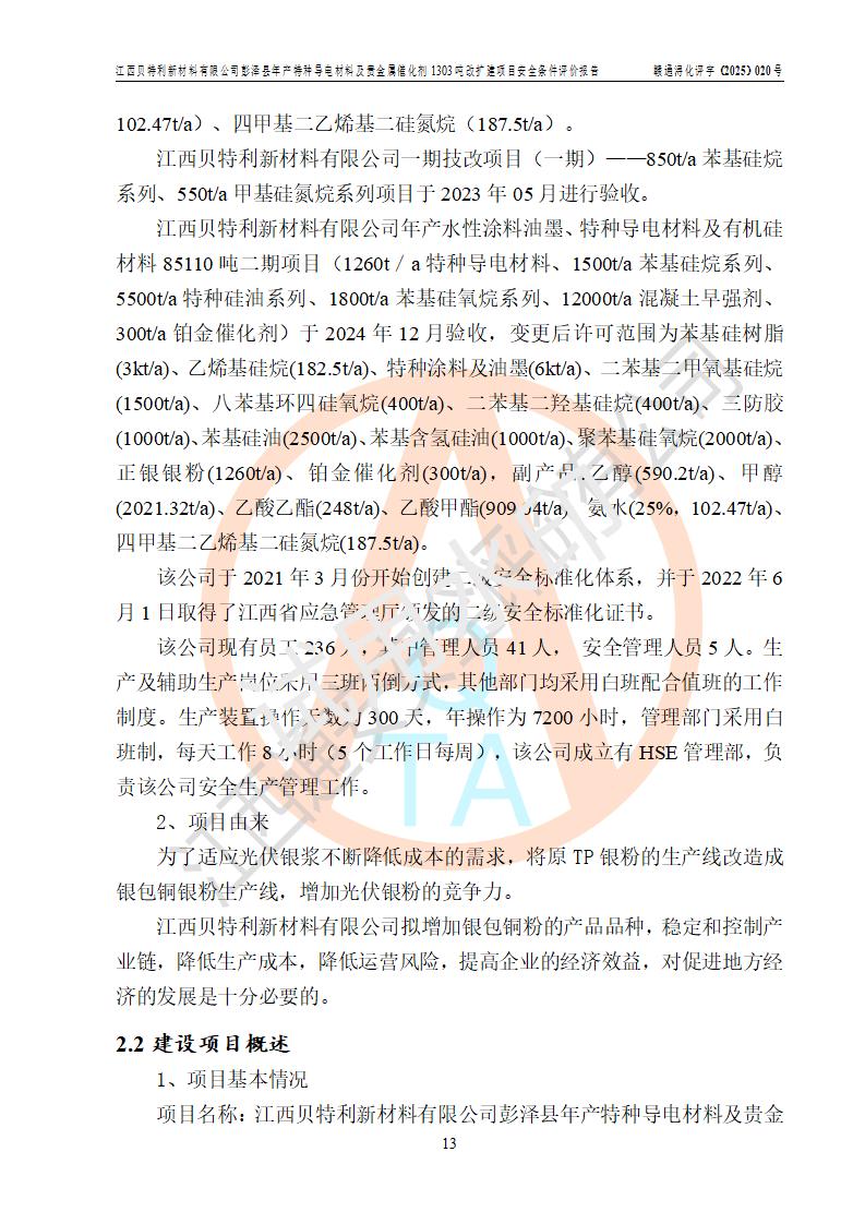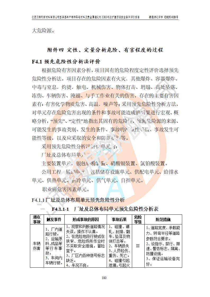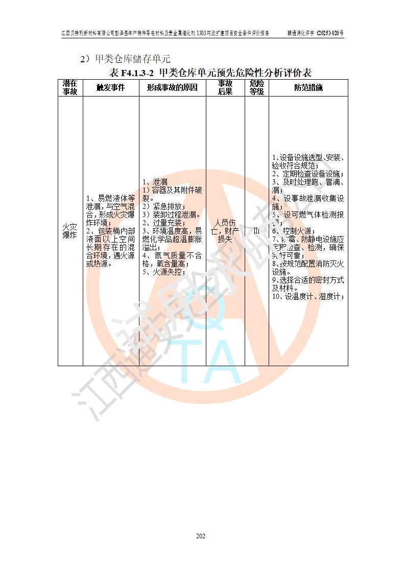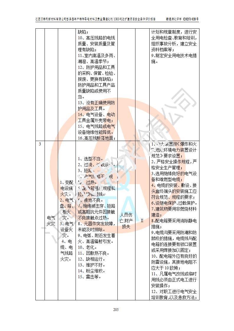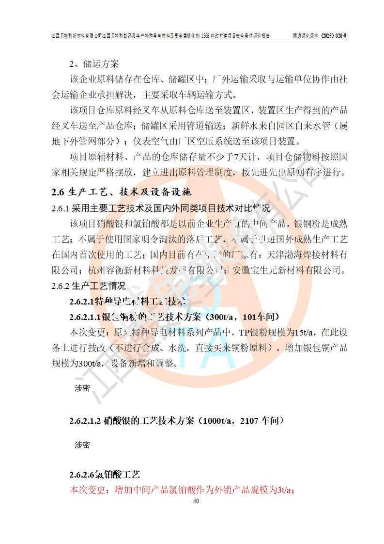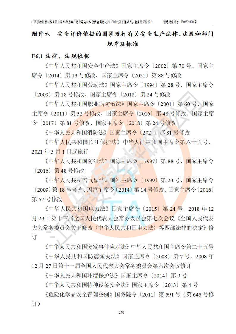 評價報告名稱 | 江西貝特利新材料有限公司彭澤縣年產特種導電材料及貴金屬催化劑1303噸改擴建項目安全條件評價報告 | |||||
