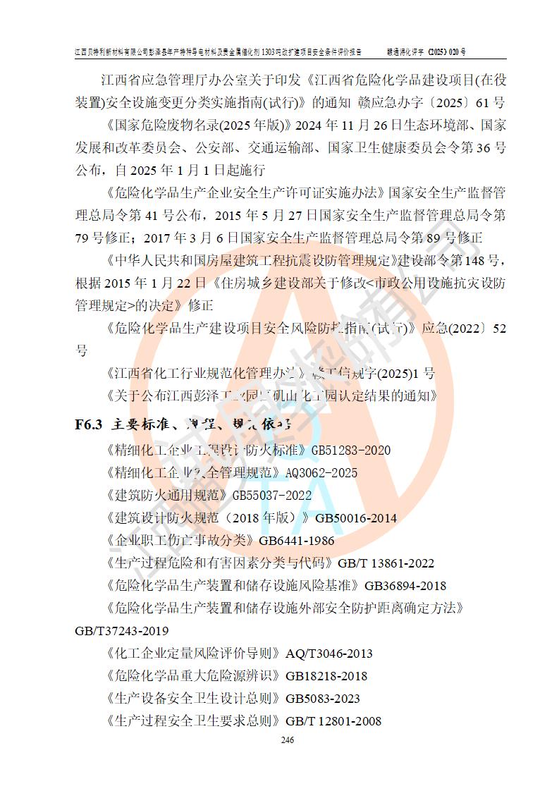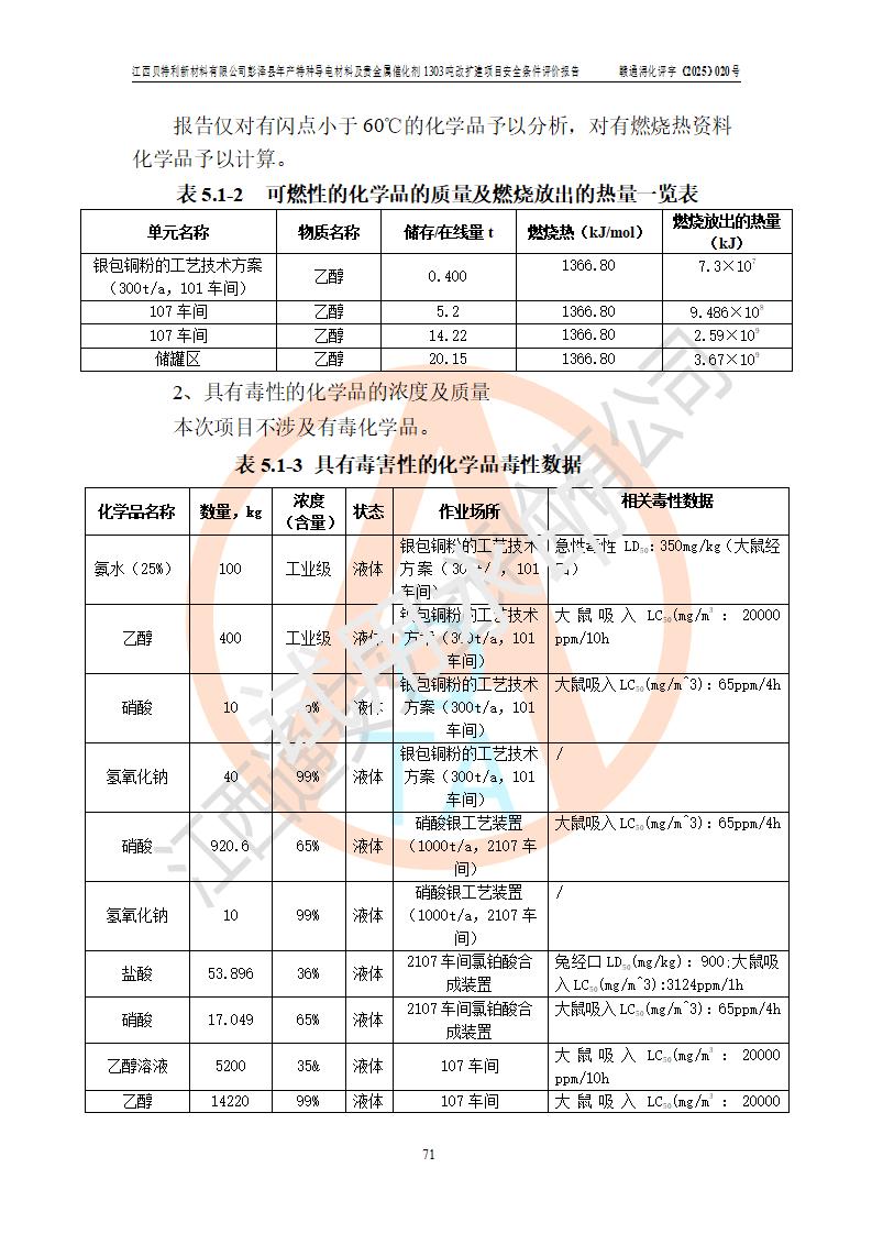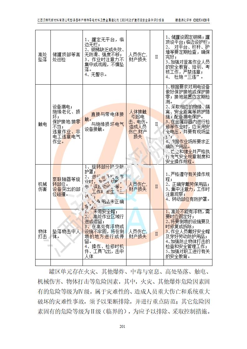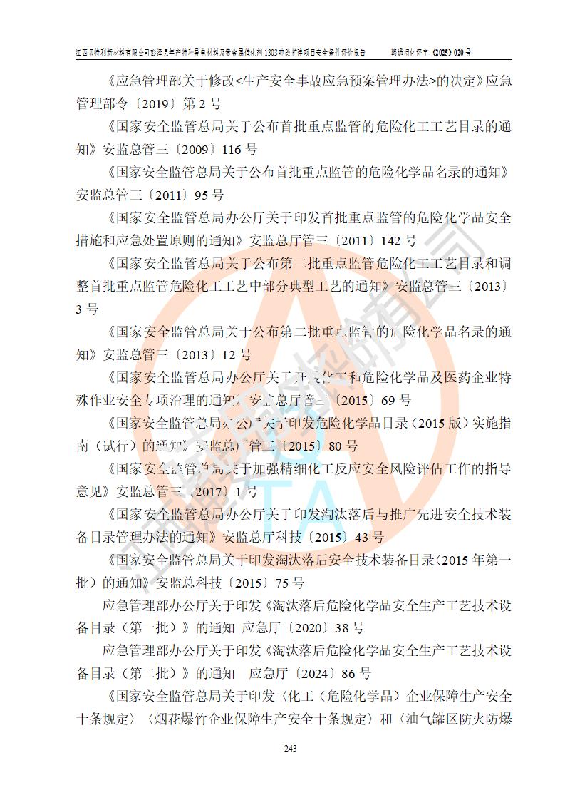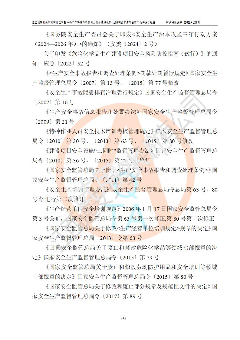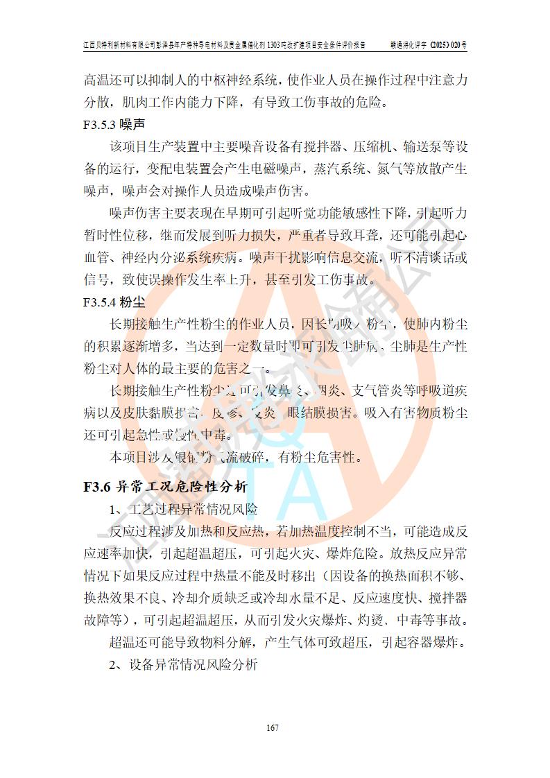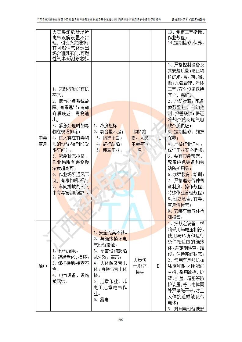 評價報告名稱 | 江西貝特利新材料有限公司彭澤縣年產特種導電材料及貴金屬催化劑1303噸改擴建項目安全條件評價報告 | |||||