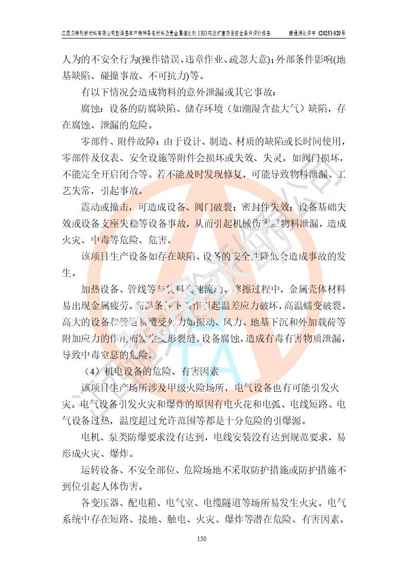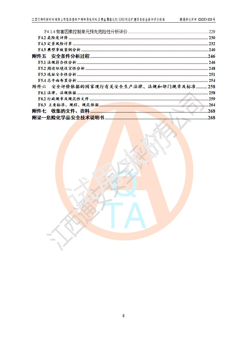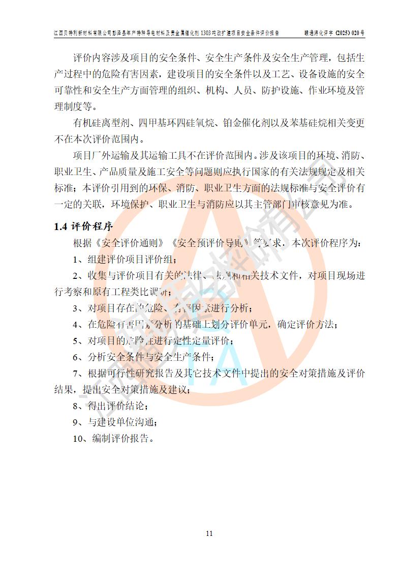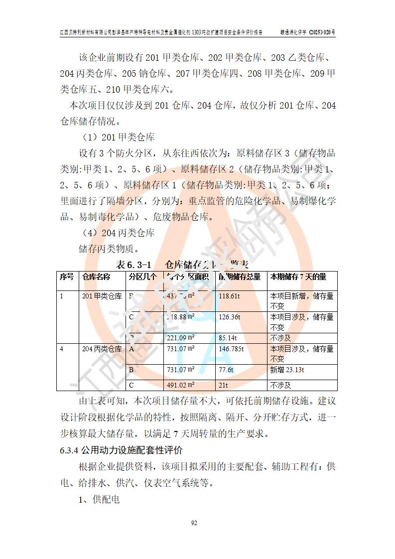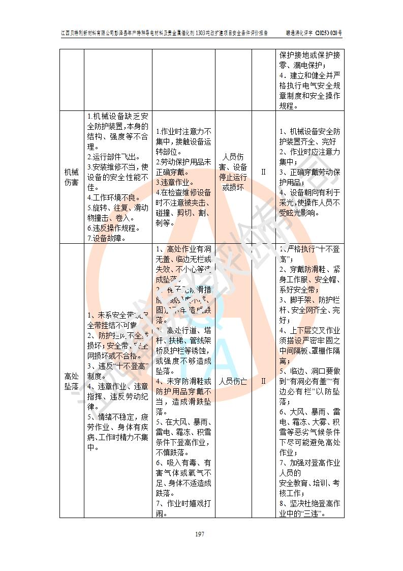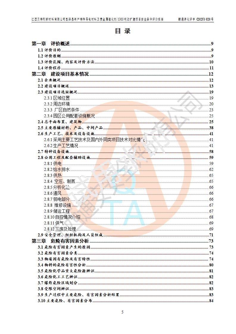 評價報告名稱 | 江西貝特利新材料有限公司彭澤縣年產特種導電材料及貴金屬催化劑1303噸改擴建項目安全條件評價報告 | |||||