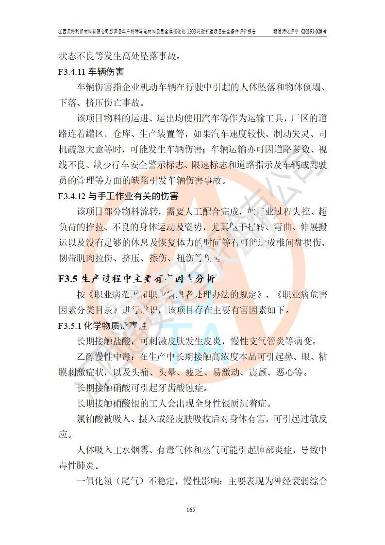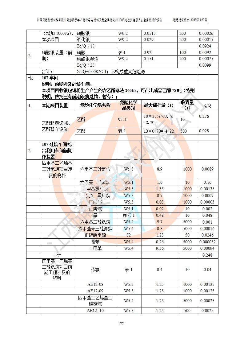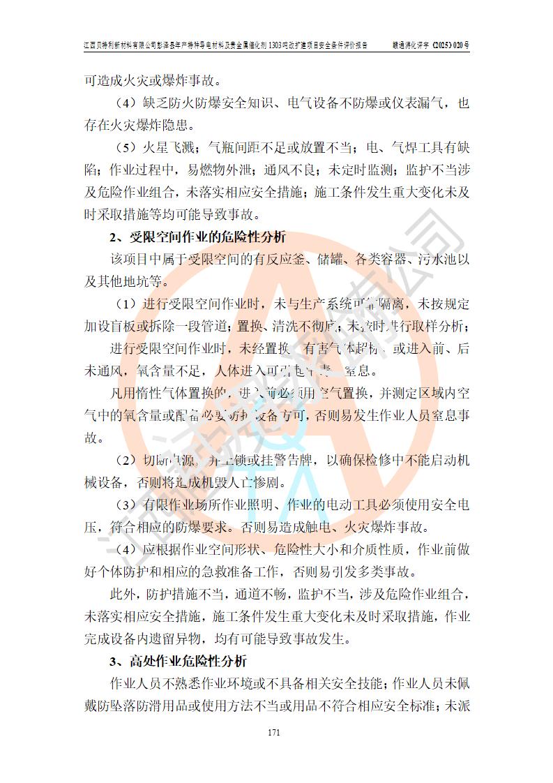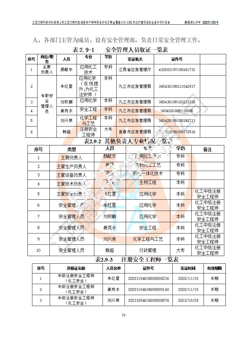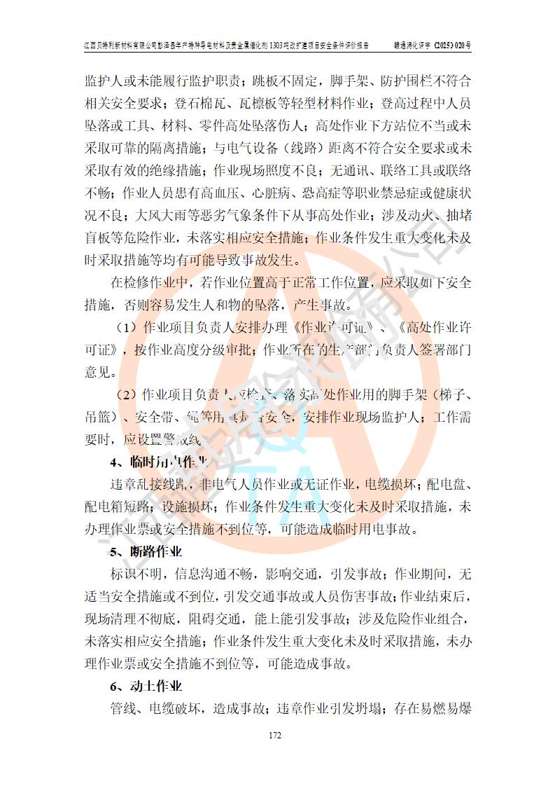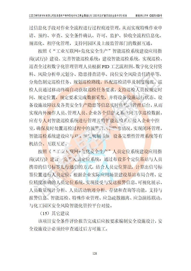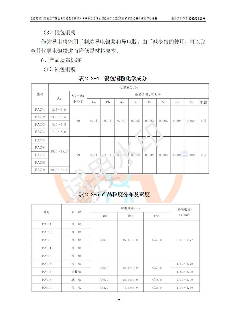 評價報告名稱 | 江西貝特利新材料有限公司彭澤縣年產特種導電材料及貴金屬催化劑1303噸改擴建項目安全條件評價報告 | |||||