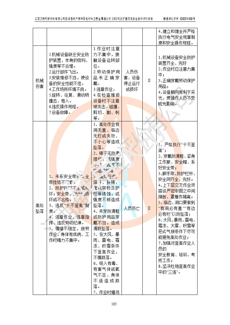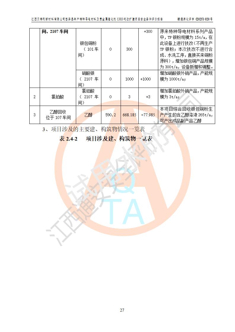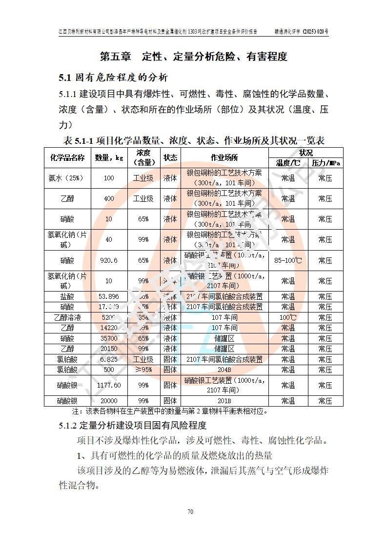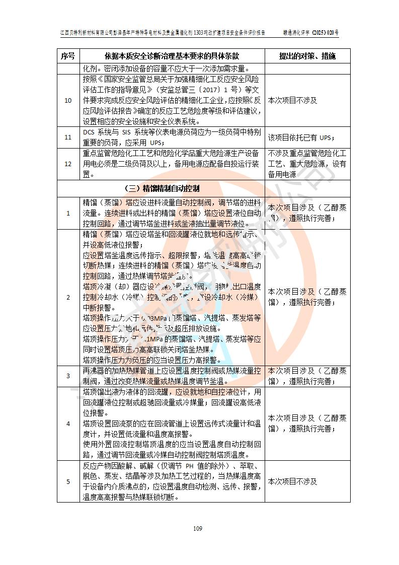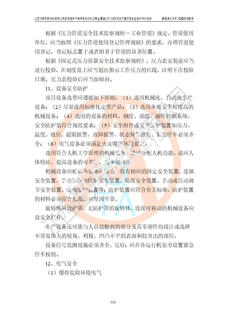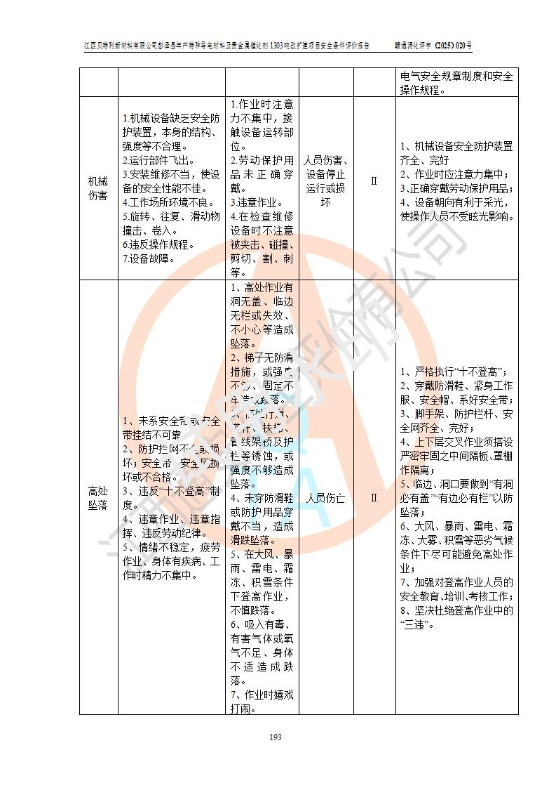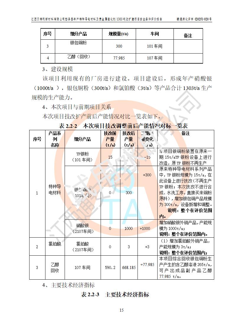 評價報告名稱 | 江西貝特利新材料有限公司彭澤縣年產特種導電材料及貴金屬催化劑1303噸改擴建項目安全條件評價報告 | |||||
