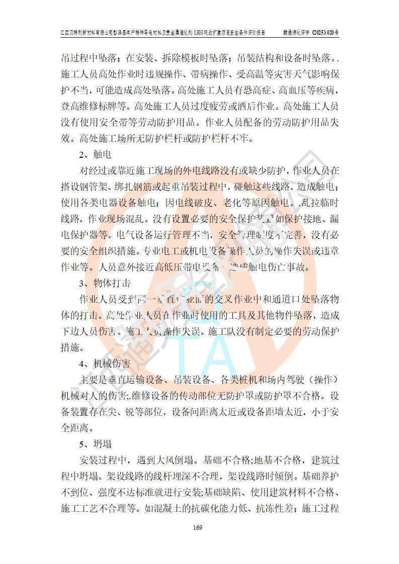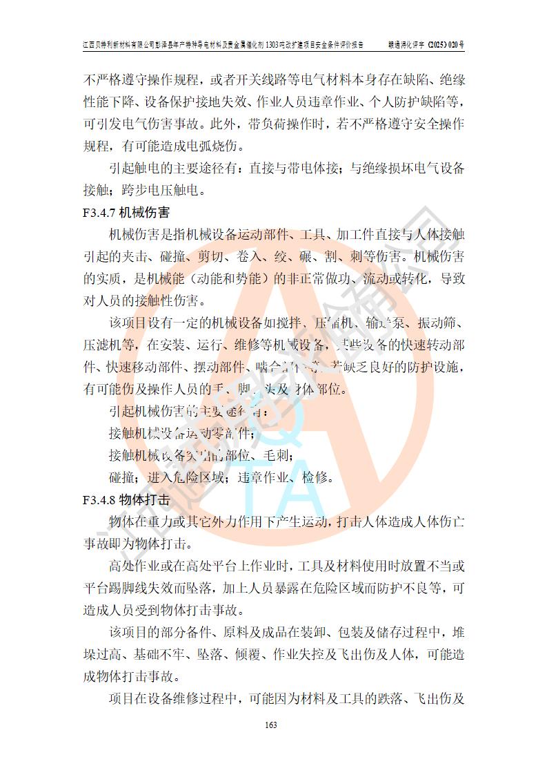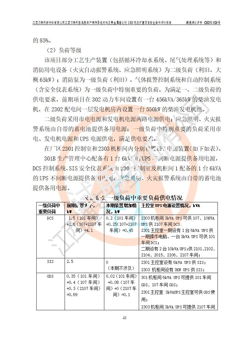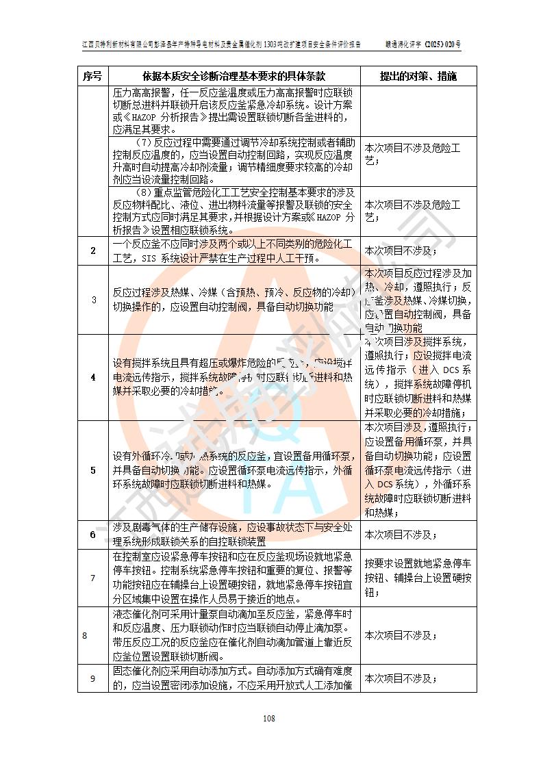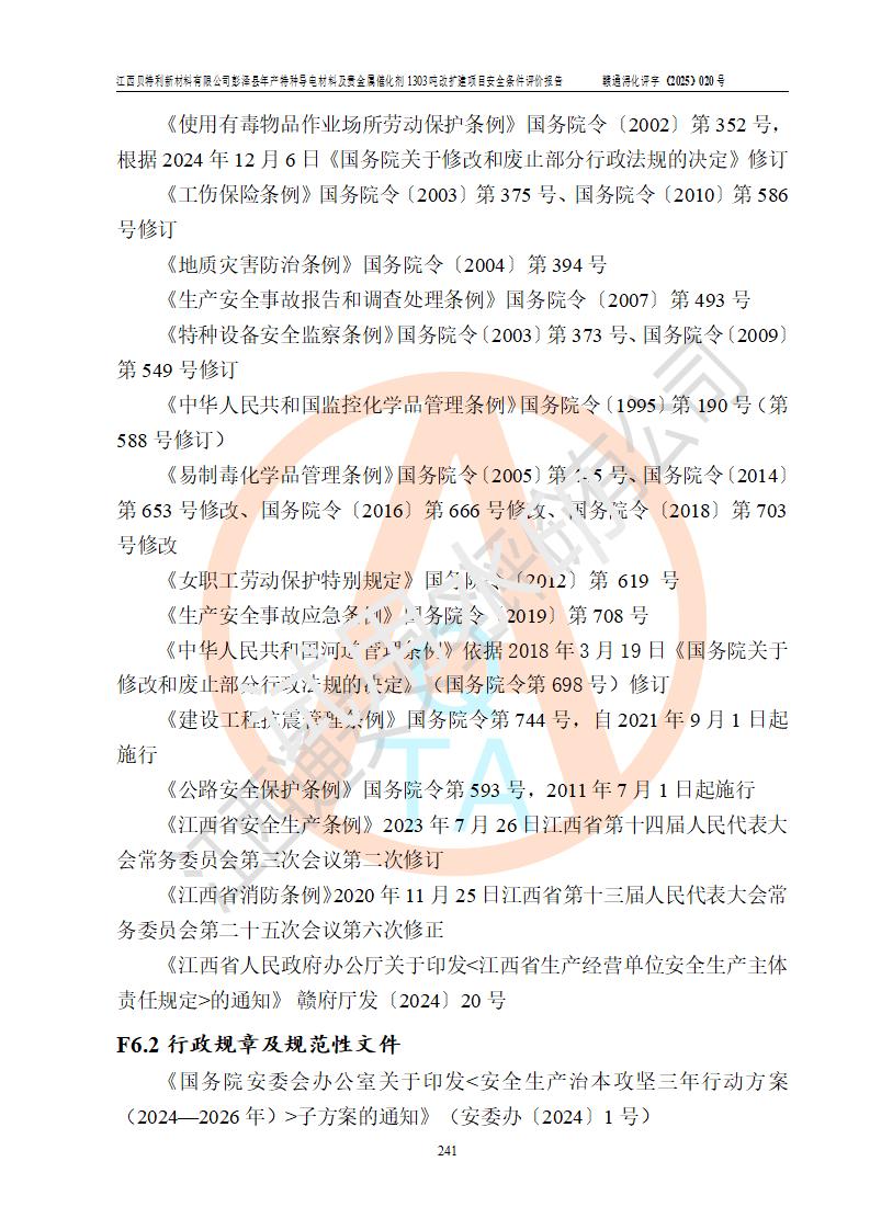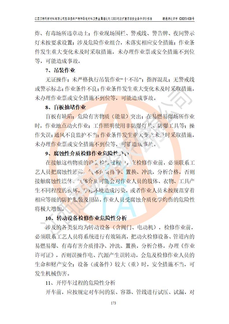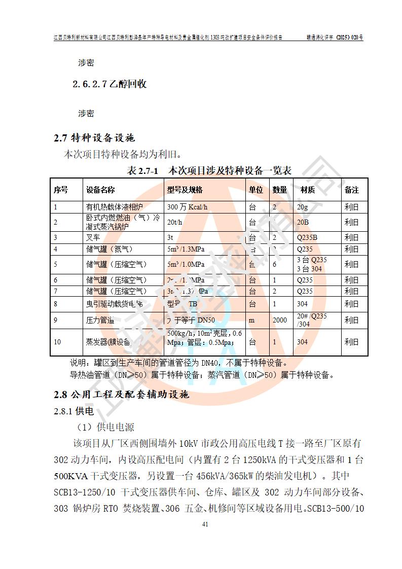 評價報告名稱 | 江西貝特利新材料有限公司彭澤縣年產特種導電材料及貴金屬催化劑1303噸改擴建項目安全條件評價報告 | |||||