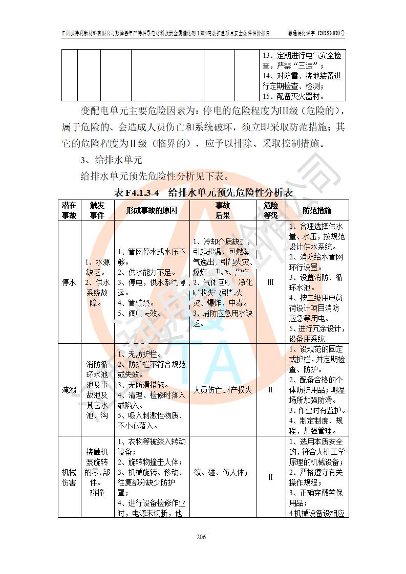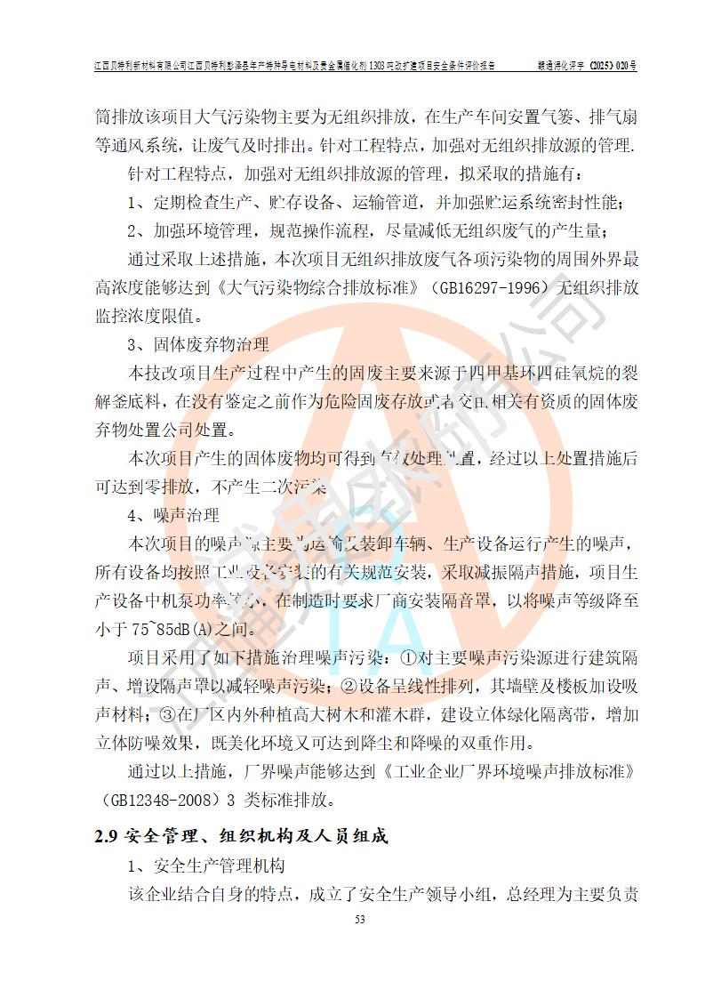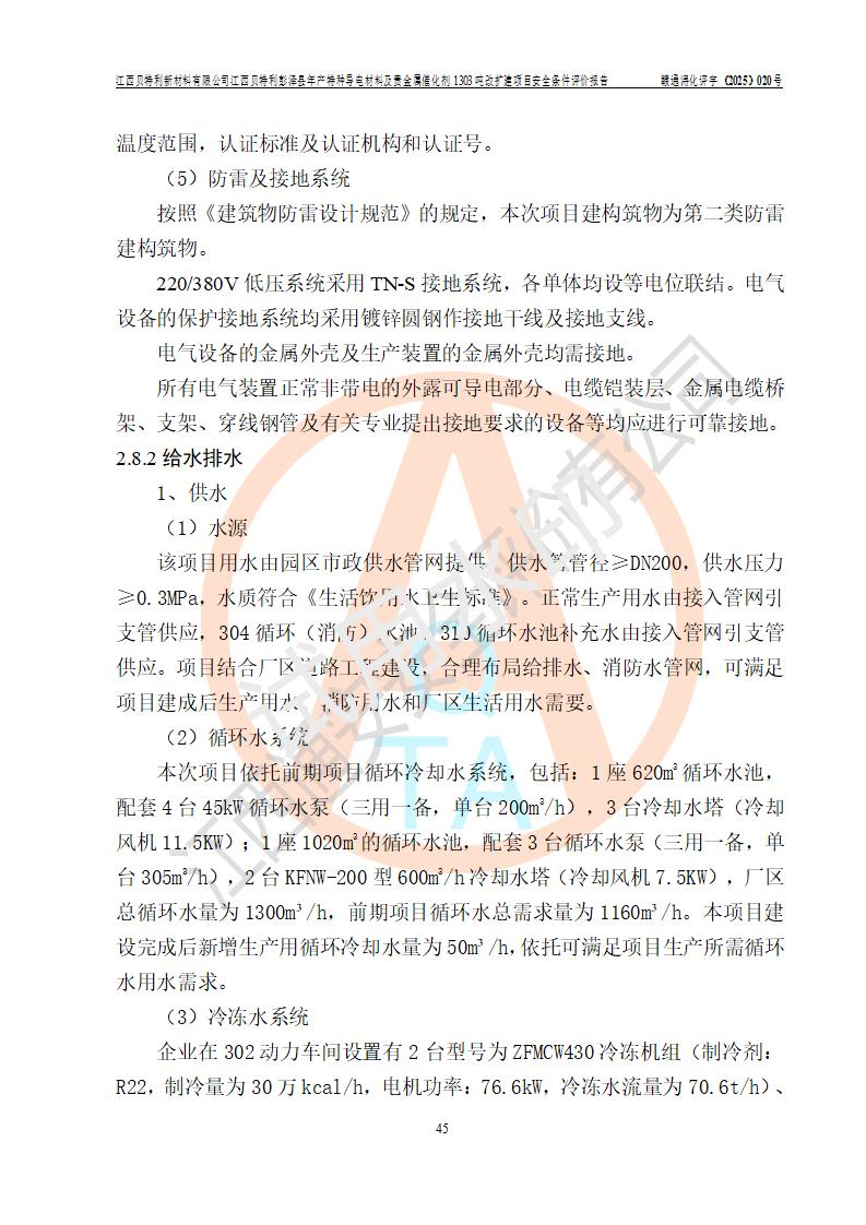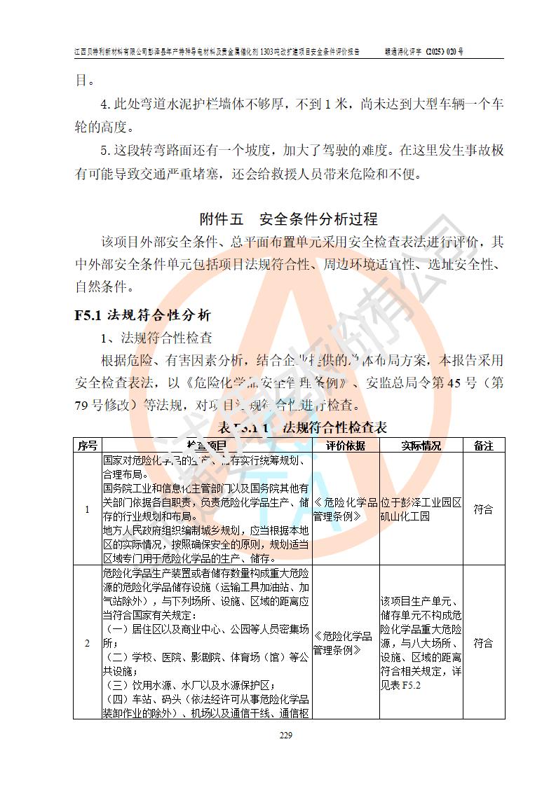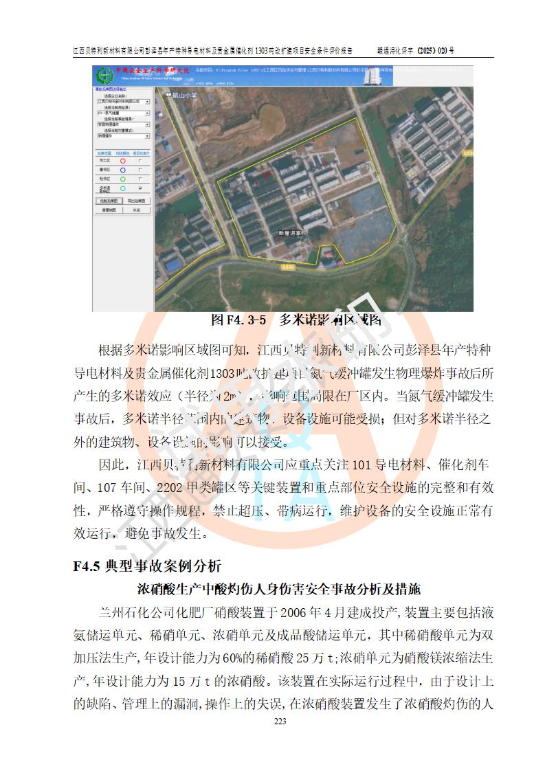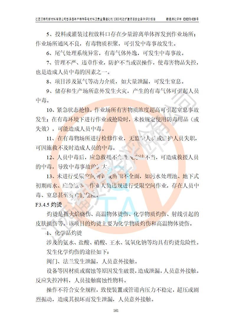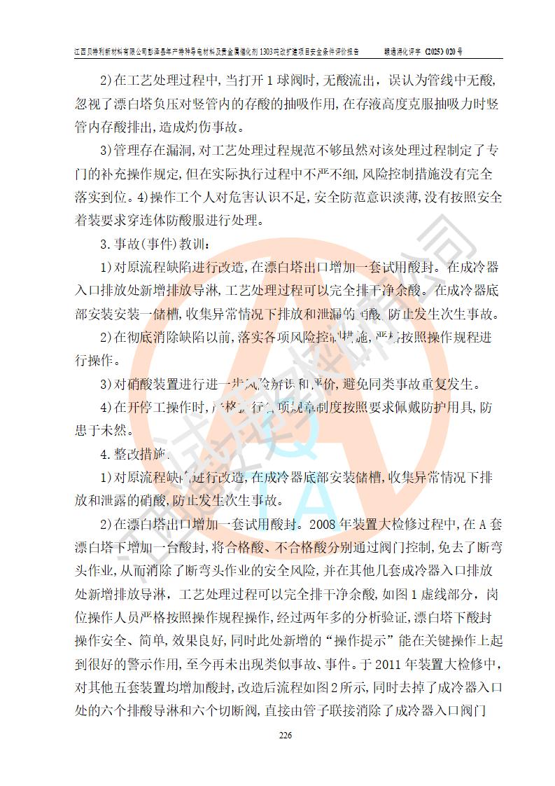 評價結論 | 江西貝特利新材料有限公司江西貝特利彭澤縣年產特種導電材料及貴金屬催化劑 1303噸改擴建項目的選址、總體布局、周邊環(huán)境、自然環(huán)境能滿足建設安全條件:項目選擇的工藝過程及設備設施的安全可靠性能達到**法規(guī)、標準規(guī)定要求。 項目存在的危險有害因素可控,在落實本評價報告提出的有關安全對策措施后,其危險有害程度能達到可以接受的程度,項目建設能夠實現(xiàn)安全運行的目標。 | |||||