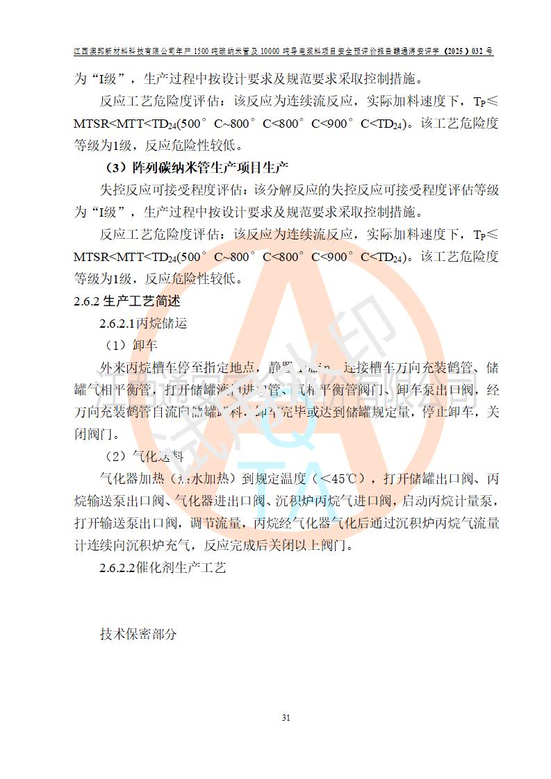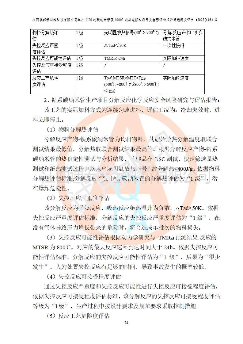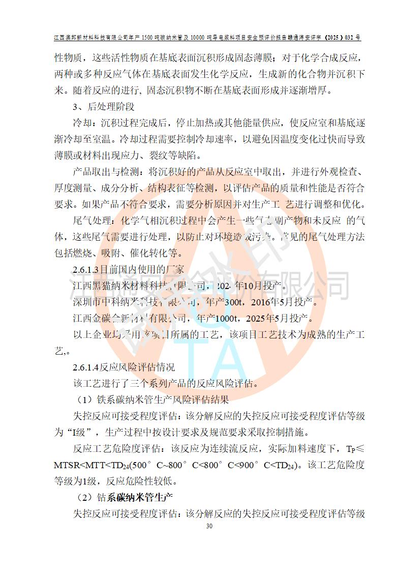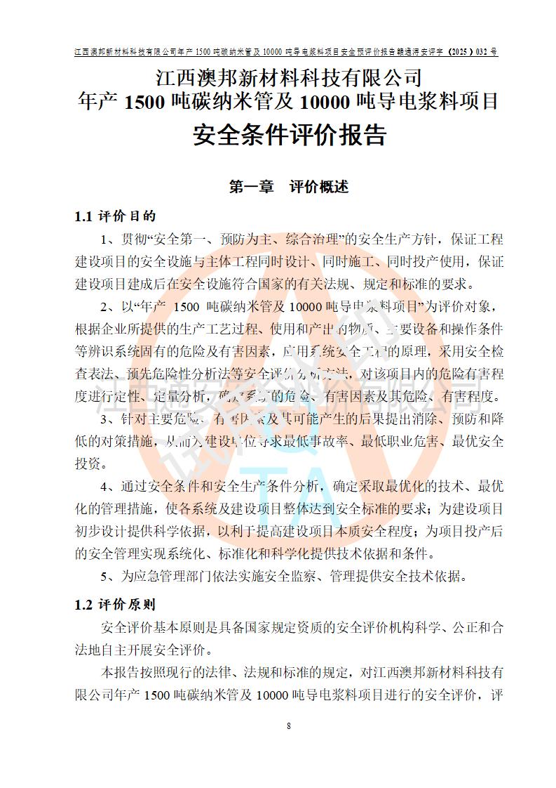 評價報告名稱 | 江西澳邦新材料科技有限公司年產(chǎn)1500噸碳納米管及10000噸導電漿料項目安全預評價報告 | |||||