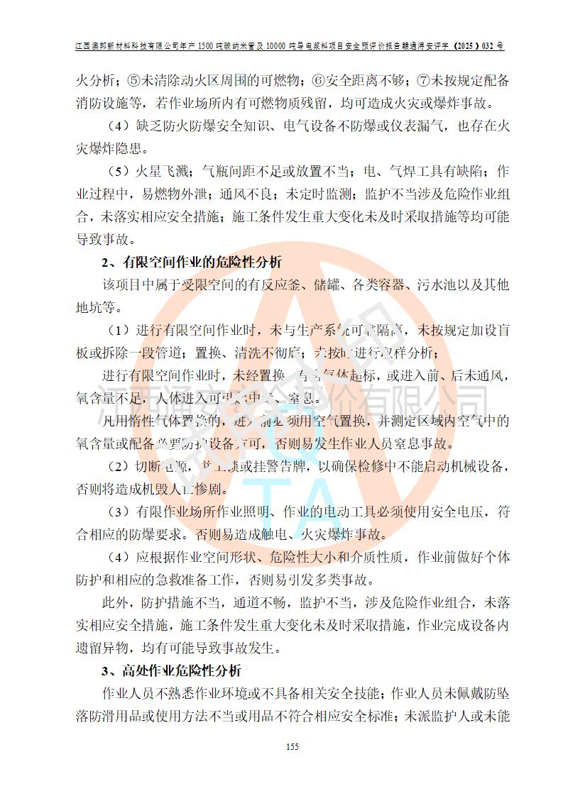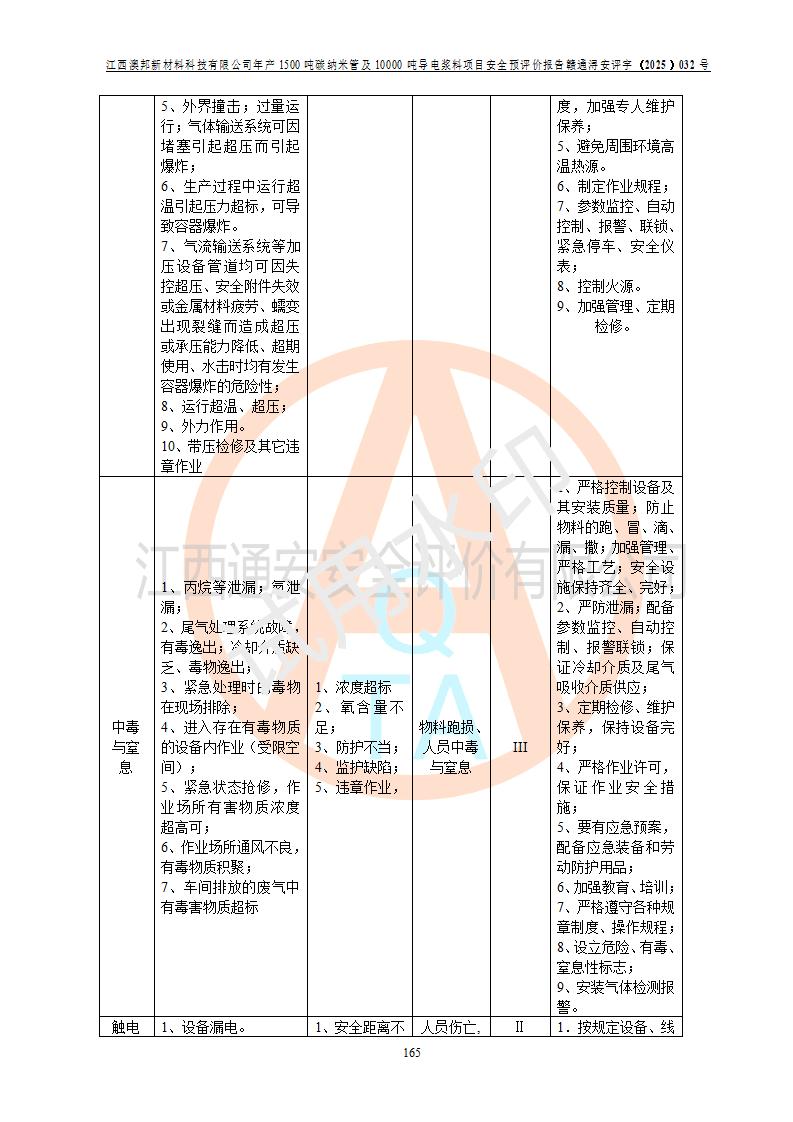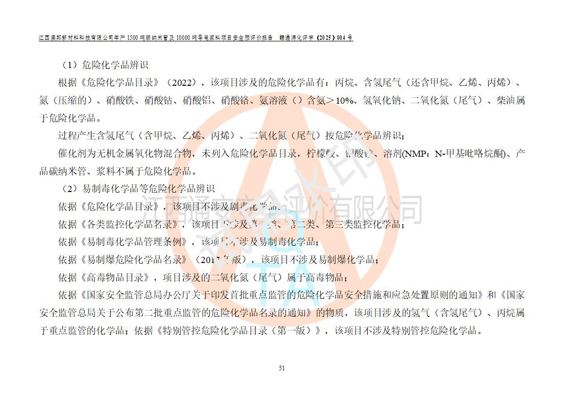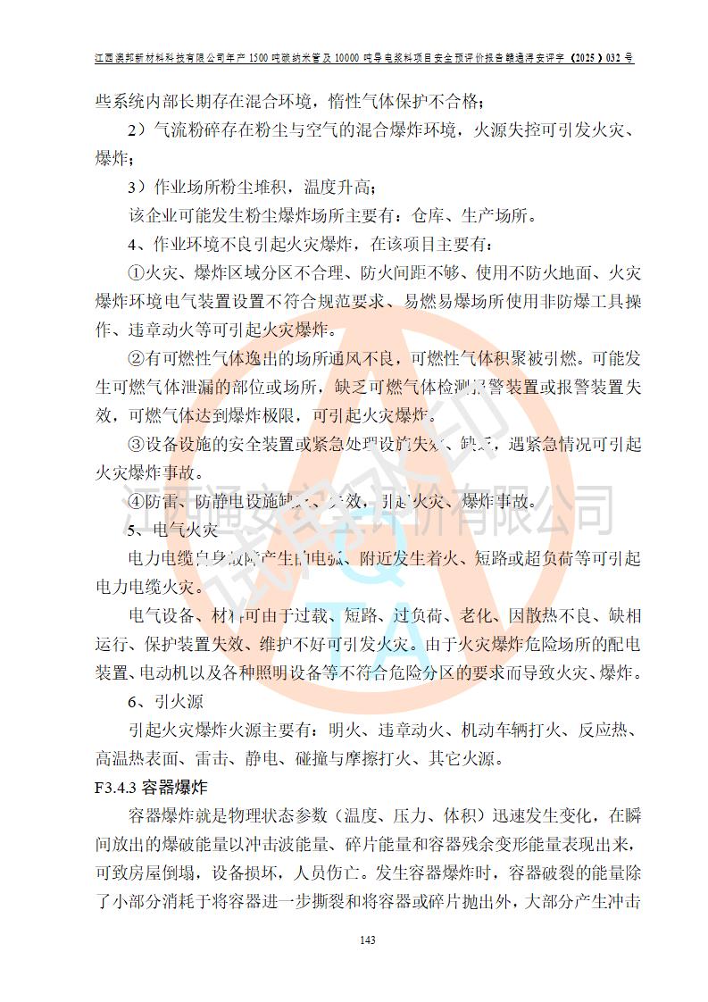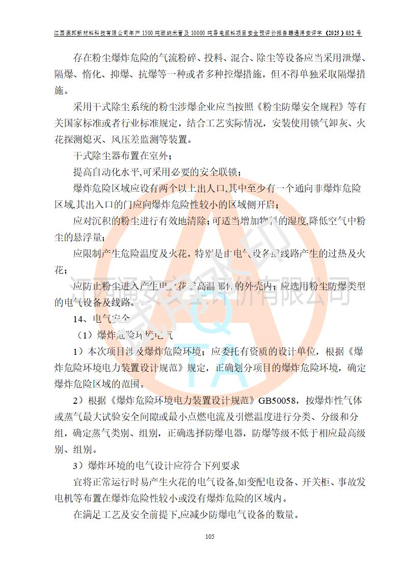 評價報告名稱 | 江西澳邦新材料科技有限公司年產(chǎn)1500噸碳納米管及10000噸導電漿料項目安全預評價報告 | |||||