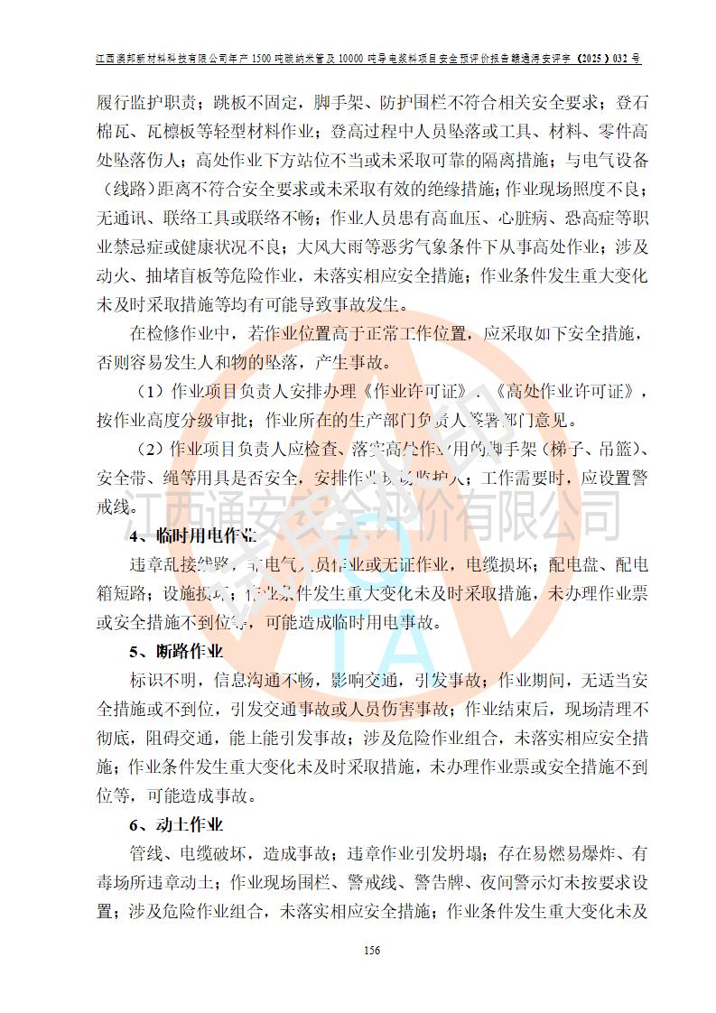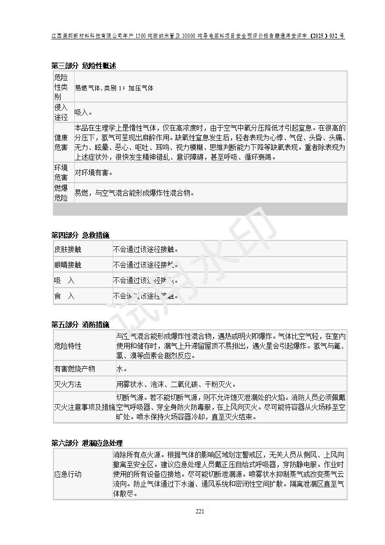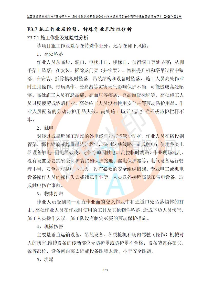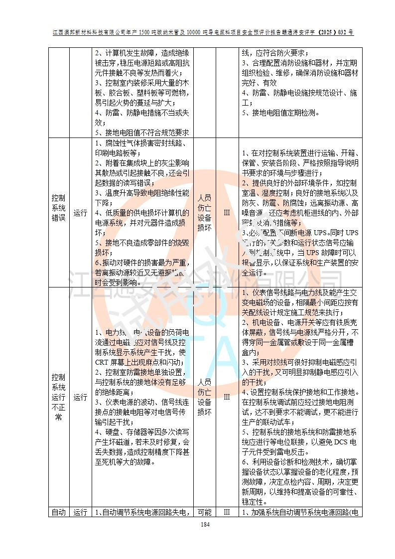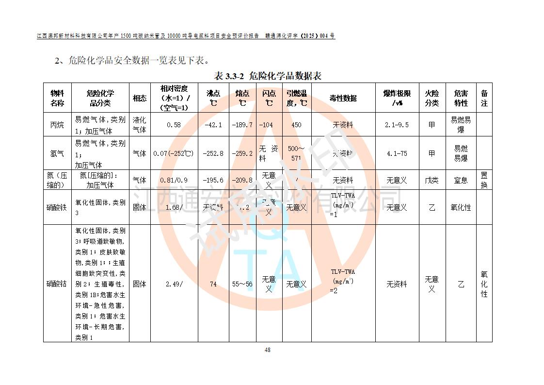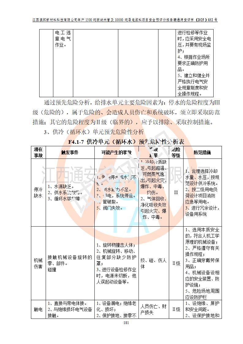 評價結論 | 江西澳邦新材料科技有限公司年產(chǎn) 1500 噸碳納米管及10000噸導電漿料項目的選址、總體布局、周邊環(huán)境、自然環(huán)境能滿足建設安全條件;項目選擇的工藝過程及設備設施的安全可靠性能達到**法規(guī)、標準規(guī)定要求。 項目存在的危險有害因素可控,在落實本評價報告提出的有關安全對策措施后,其危險有害程度能達到可以接受的程度,項目建設能夠實現(xiàn)安全運行的目標。 | |||||