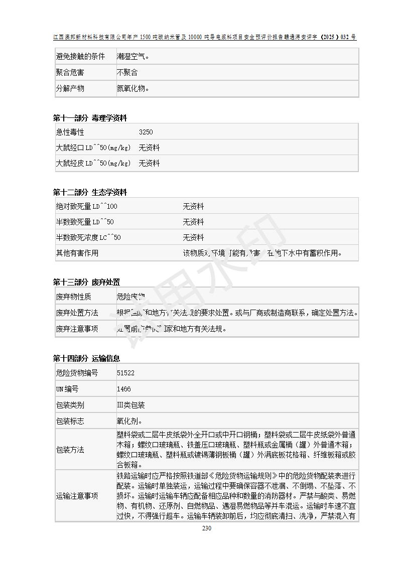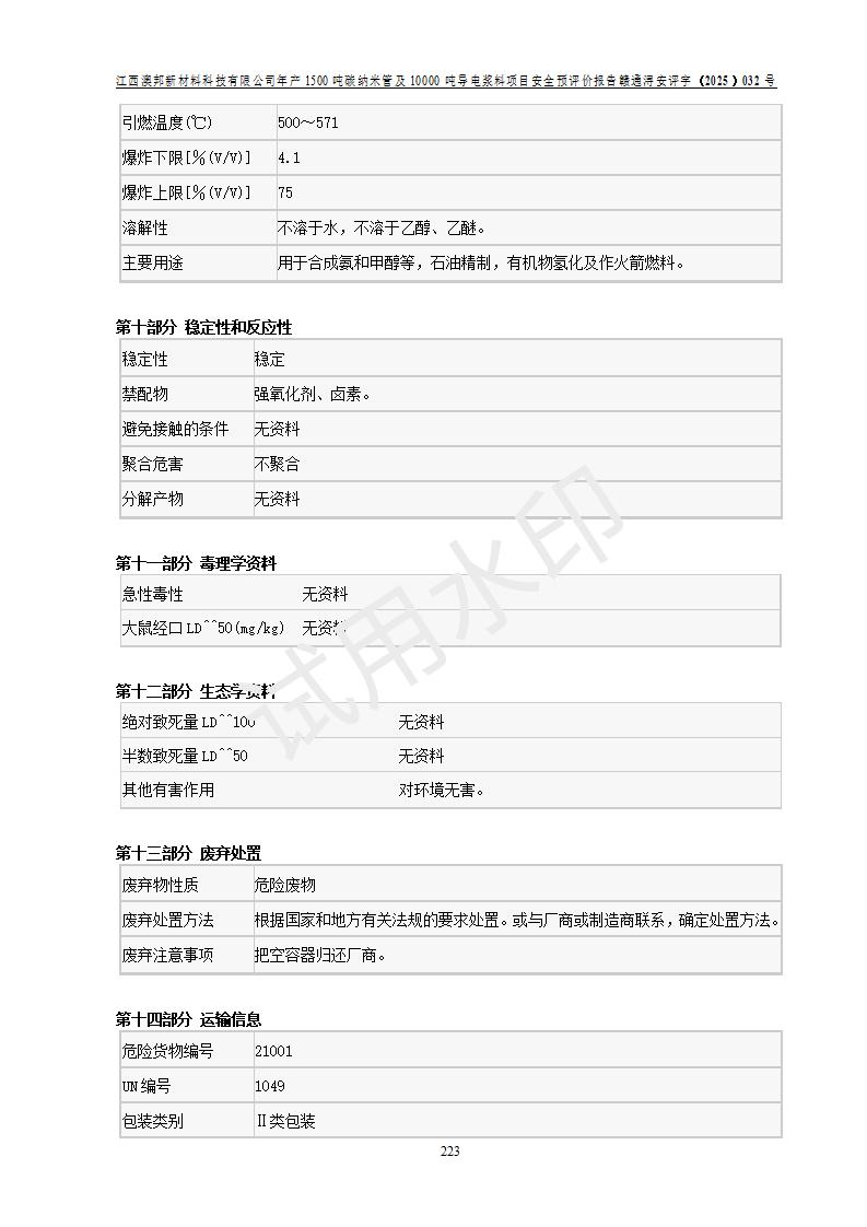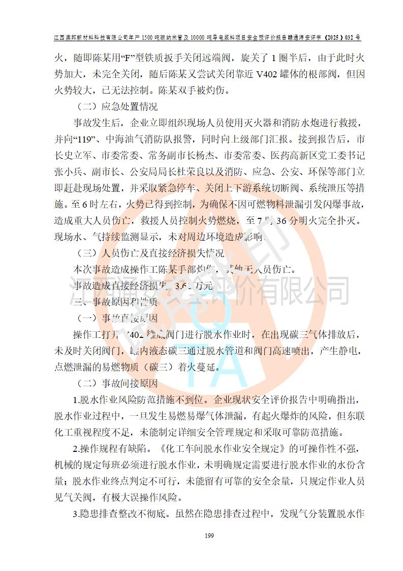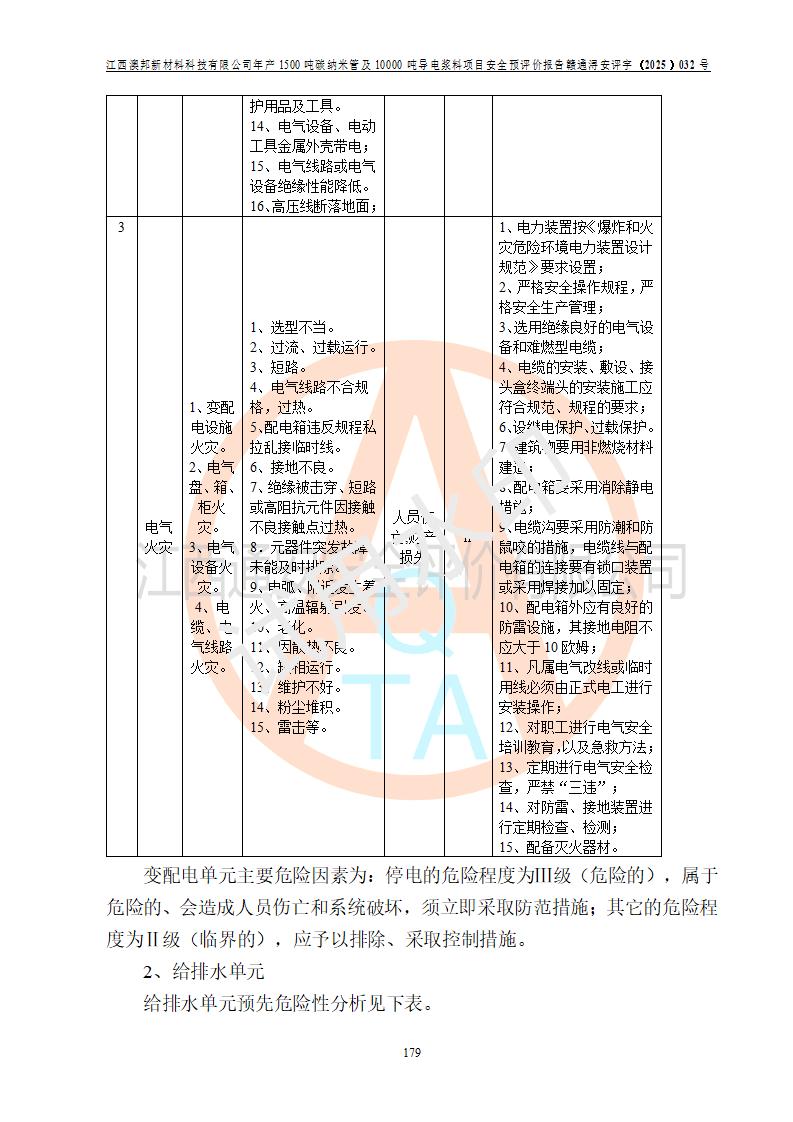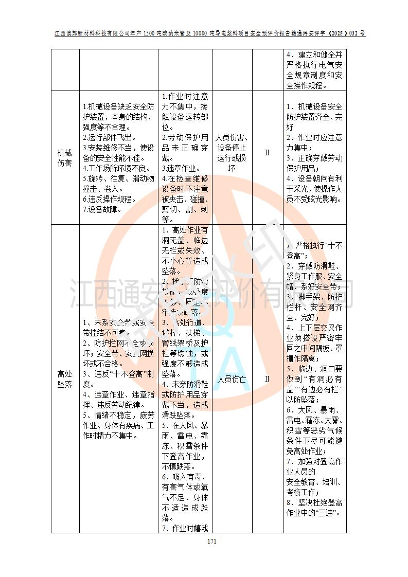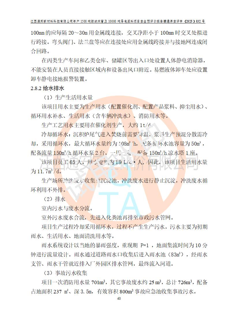評價結論 | 江西澳邦新材料科技有限公司年產(chǎn) 1500 噸碳納米管及10000噸導電漿料項目的選址、總體布局、周邊環(huán)境、自然環(huán)境能滿足建設安全條件;項目選擇的工藝過程及設備設施的安全可靠性能達到**法規(guī)、標準規(guī)定要求。 項目存在的危險有害因素可控,在落實本評價報告提出的有關安全對策措施后,其危險有害程度能達到可以接受的程度,項目建設能夠實現(xiàn)安全運行的目標。 | |||||
