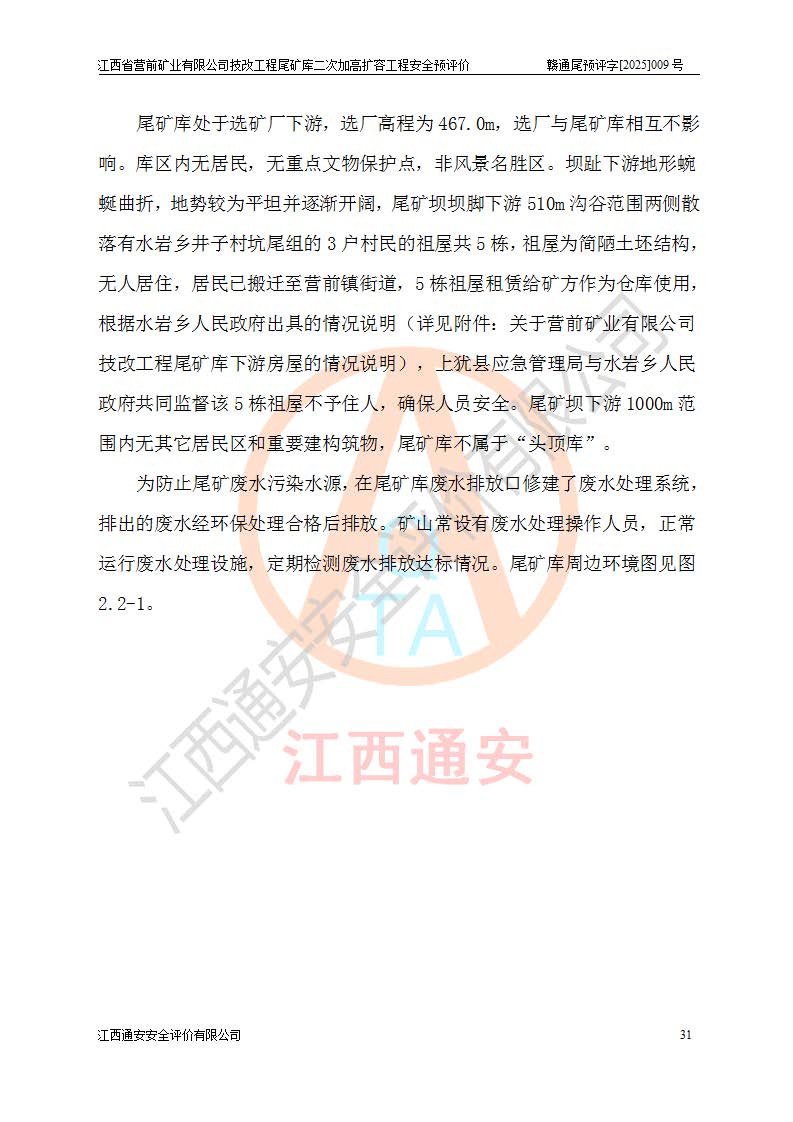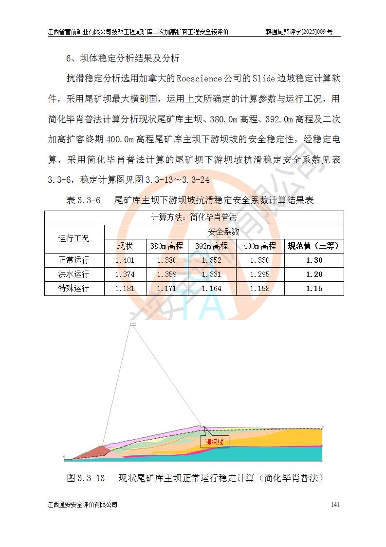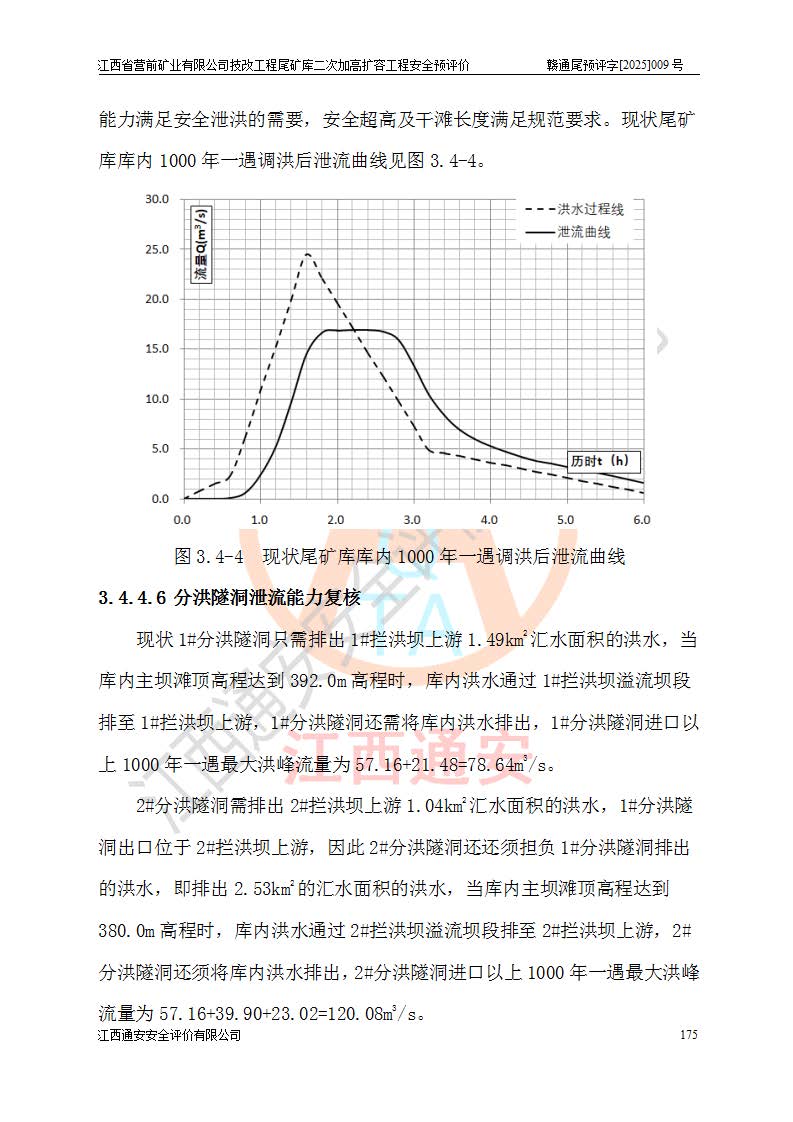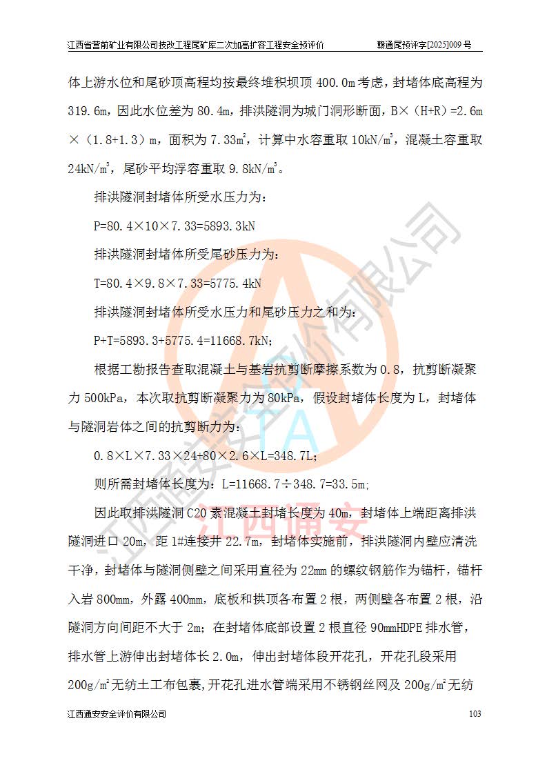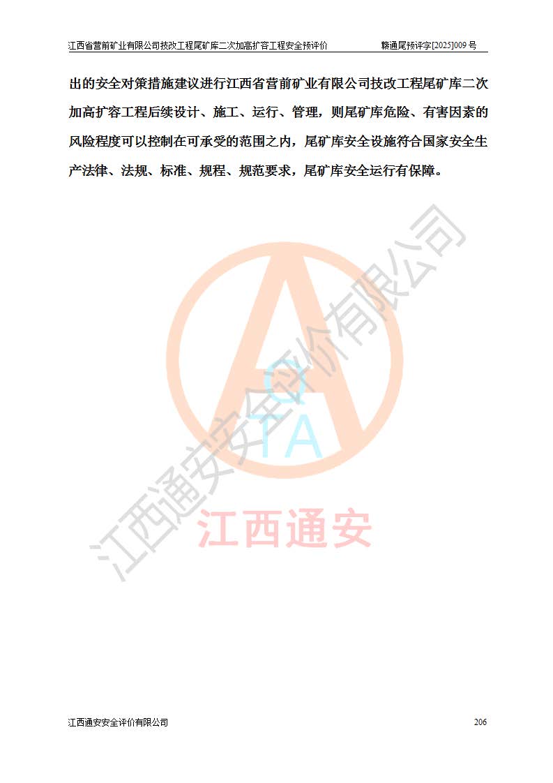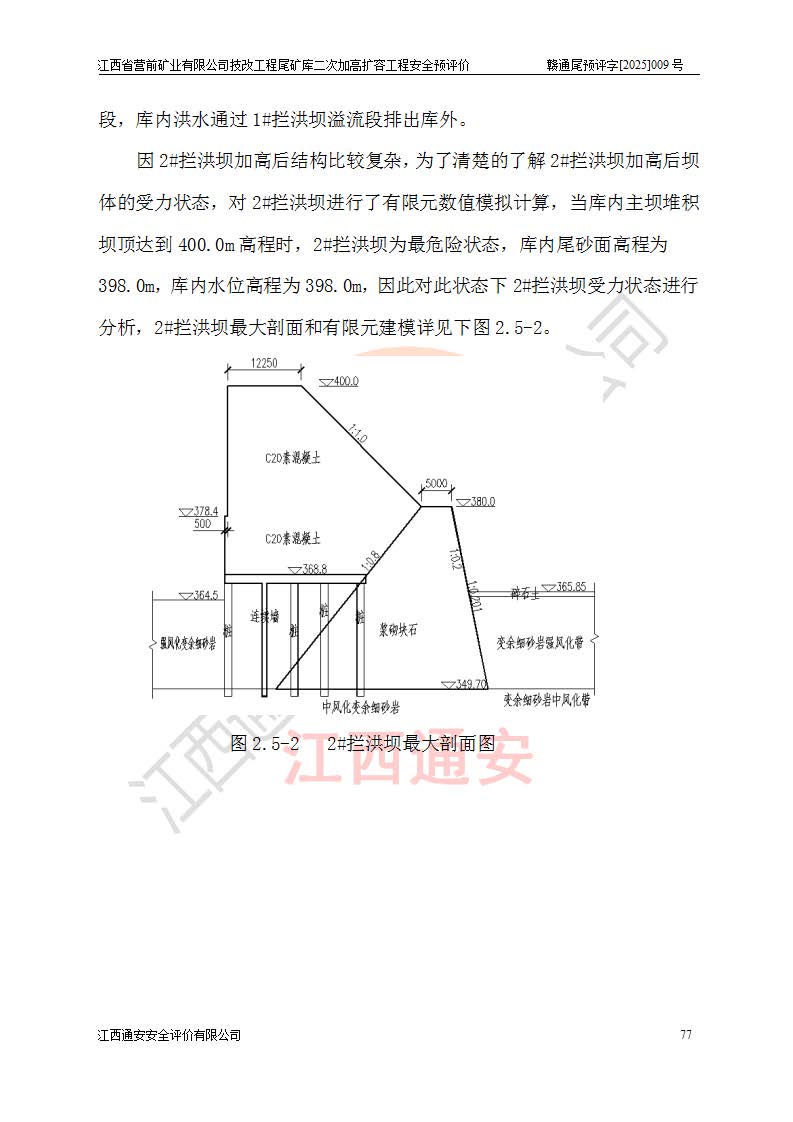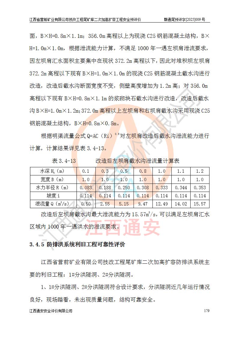 江西省營前礦業(yè)有限公司于2003年12月16日成立,位于贛州市上猶縣營前鎮(zhèn)焦里村境內(nèi),公司注冊資本10000萬元,法定**人陳雅博,礦區(qū)地理坐標(biāo):東經(jīng)114°18′30″~114°19′00″,北緯25°52′35″~25°53′47″。公司經(jīng)營范圍包括:鉛礦、鋅、鎢、銀地下開采、銷售。 江西省營前礦業(yè)有限公司技改工程尾礦庫位于焦里鎢銀鉛鋅礦區(qū),處于上猶縣水巖鄉(xiāng)井子村坑尾自然村境內(nèi),為山谷型尾礦庫。 江西省營前礦業(yè)有限公司技改工程尾礦庫于2013年由福建省冶金工業(yè)設(shè)計院設(shè)計,2014年8月開始施工建設(shè),2015年4月竣工開始試運(yùn)行,2015年11月完成竣工驗收,2016年1月首次取得安全生產(chǎn)許可證,2019年1月完成延期換證,2020年8月委托金建工程設(shè)計有限公司進(jìn)行尾礦庫加高擴(kuò)容工作,2020年10月21日取得了江西省應(yīng)急管理廳下發(fā)的《關(guān)于江西省營前礦業(yè)有限公司技改工程尾礦庫加高擴(kuò)容工程安全設(shè)施設(shè)計的審查意見》(贛應(yīng)急非煤項目設(shè)審〔2020〕46號),之后委托駐馬店市黃淮建設(shè)工程有限公司負(fù)責(zé)施工,云南潤滇工程技術(shù)有限公司負(fù)責(zé)監(jiān)理,2021年12月完成加高擴(kuò)容竣工驗收工作,經(jīng)過延期,現(xiàn)尾礦庫安全生產(chǎn)許可證編號(贛)FM安許證字[2016]M1692號,**期為2025年01月18日至2028年01月17日。 江西省營前礦業(yè)有限公司技改工程尾礦庫為山谷型尾礦庫,初期壩為透水堆石壩,壩頂高程為330.0m,初期壩高25.0m,后期采用上游式尾礦堆積壩,加高擴(kuò)容后*終壩頂高程為380.0m,堆積壩高50.0m,總壩高為75.0m,總庫容為為503.14×104m3,尾礦庫為三等庫。尾礦庫初期壩以上總匯水面積3.53km2,防洪標(biāo)準(zhǔn)取500年一遇。 目前尾礦庫由初期壩、堆積壩、庫內(nèi)排洪系統(tǒng)(雙格排水斜槽+連接井+排水涵洞+排洪隧洞+排水陡槽+消力池)、1#攔洪壩、1#分洪隧洞、2#攔洪壩、2#分洪隧洞和安全監(jiān)測設(shè)施組成。根據(jù)建設(shè)單位提供的尾礦庫平面布置圖,截至2024年12月,現(xiàn)狀尾礦庫堆積壩頂高程為372.2m,現(xiàn)狀總壩高67.2m,灘頂高程為369.8m,現(xiàn)狀全庫容387.51×104m3,現(xiàn)狀尾礦庫為三等庫,原加高擴(kuò)容設(shè)計*終堆積壩頂高程為380.0m,現(xiàn)剩余庫容115.63×104m3,剩余**庫容約92.5×104m3,剩余服務(wù)年限約4.5年;礦山現(xiàn)有儲量較大,剩余庫容及服務(wù)年限不滿足礦山后期生產(chǎn)需要。 技改工程尾礦庫尾礦壩下游1**范圍無居民,不存在工礦企業(yè)等建構(gòu)筑物,不屬于“頭頂庫”;尾礦庫不壓礦;距贛江直線距離60**;不涉及保護(hù)區(qū)及生態(tài)紅線;尾礦庫所在溝谷較長,谷底平均縱坡9%,上游周邊山體地形有利于尾礦庫二次加高擴(kuò)容工程的實施,因此為了增加尾礦庫庫容,延長服務(wù)年限,充分利用尾礦庫所在溝谷地形,江西省營前礦業(yè)有限公司對技改尾礦庫進(jìn)行二次加高擴(kuò)容。 2024年12月,江西省營前礦業(yè)有限公司委托地礦贛西地質(zhì)工程勘察院編制了《江西省營前礦業(yè)有限公司技改工程尾礦庫二次擴(kuò)容工程(水文)地質(zhì)勘察報告》,2025年4月,江西省營前礦業(yè)有限公司委托金建工程設(shè)計有限公司編制了《江西省營前礦業(yè)有限公司技改工程尾礦庫二次加高擴(kuò)容工程可行性研究報告》。 按照非煤礦山建設(shè)項目安全設(shè)施“三同時”的規(guī)定要求,技改工程尾礦庫為二次加高擴(kuò)容工程,**進(jìn)行安全預(yù)評價;江西省營前礦業(yè)有限公司委托我公司承擔(dān)技改工程尾礦庫二次加高擴(kuò)容工程建設(shè)項目的安全預(yù)評價工作。 |