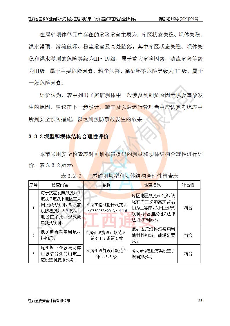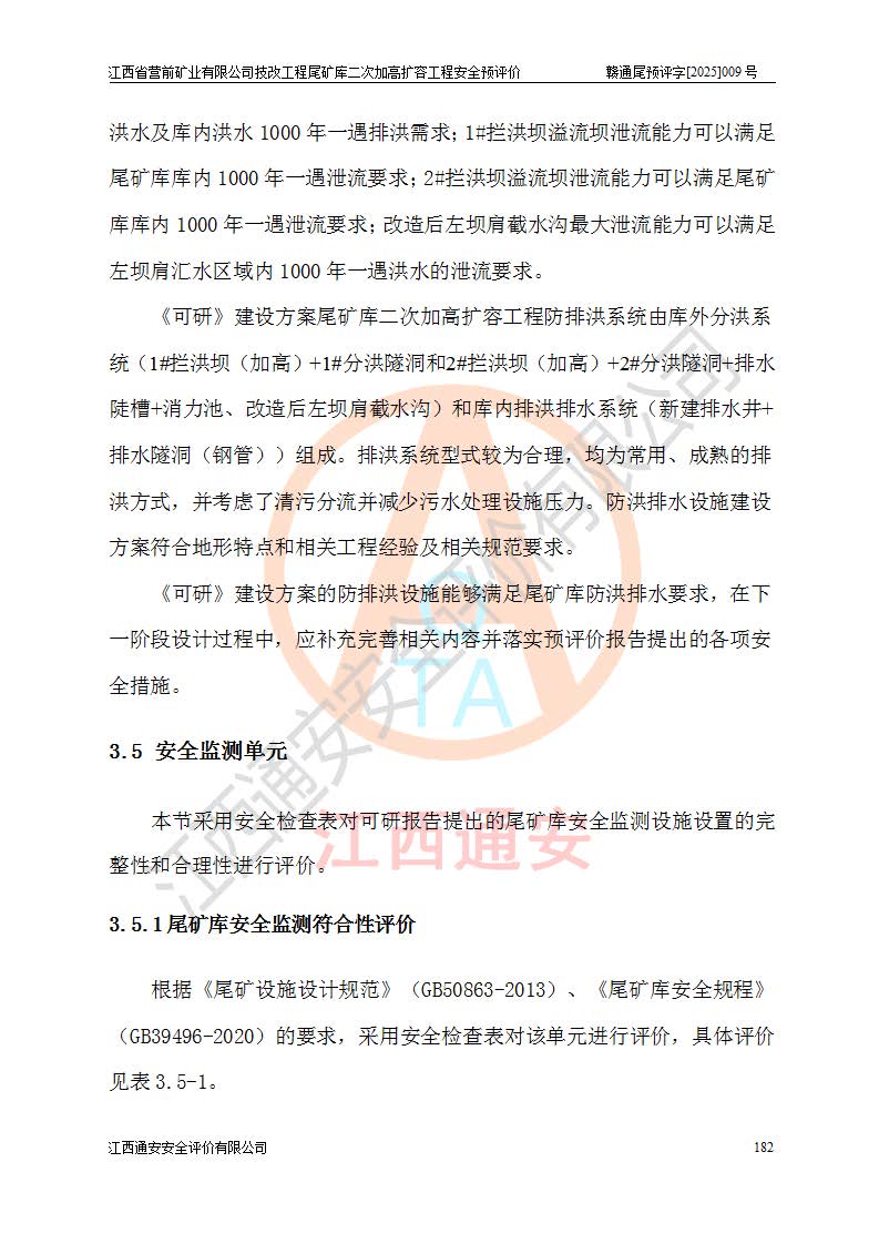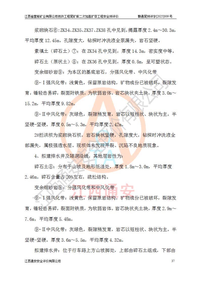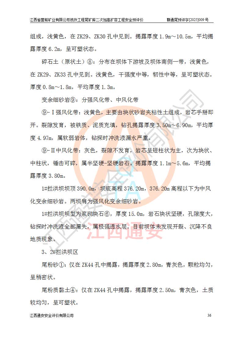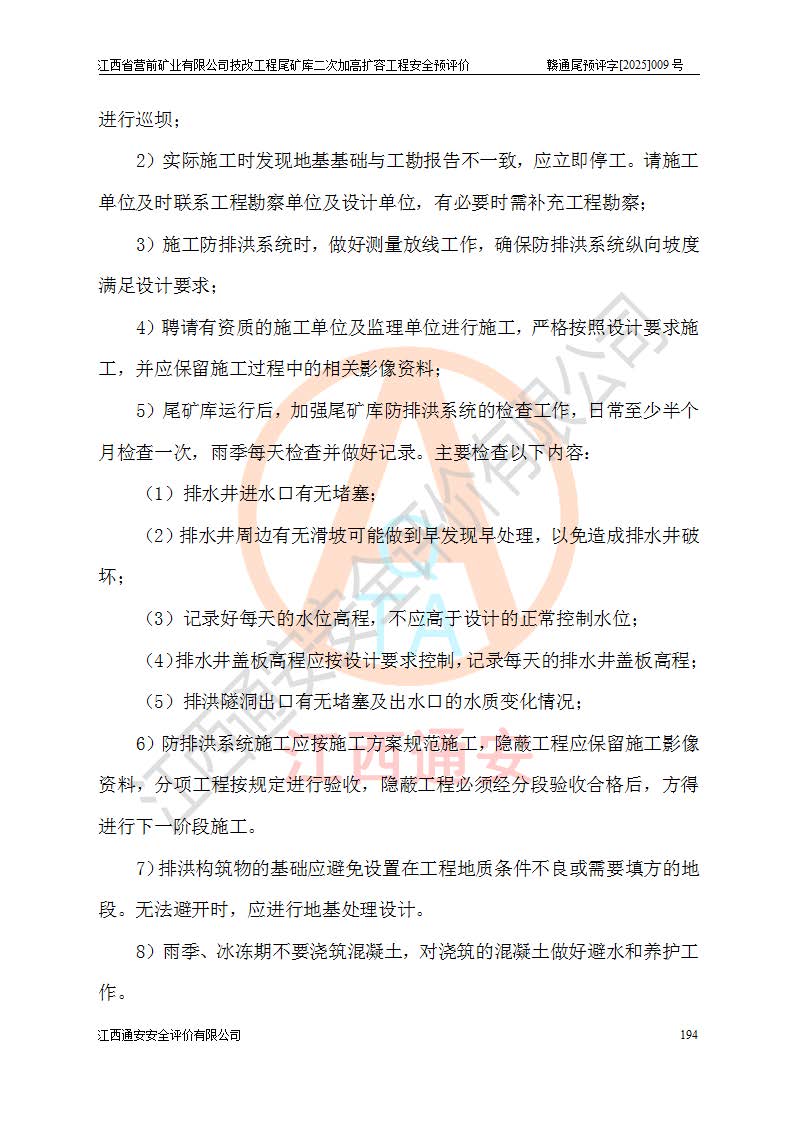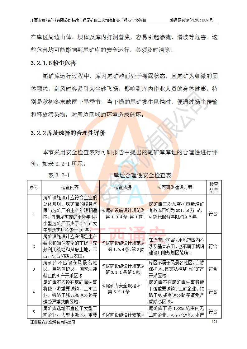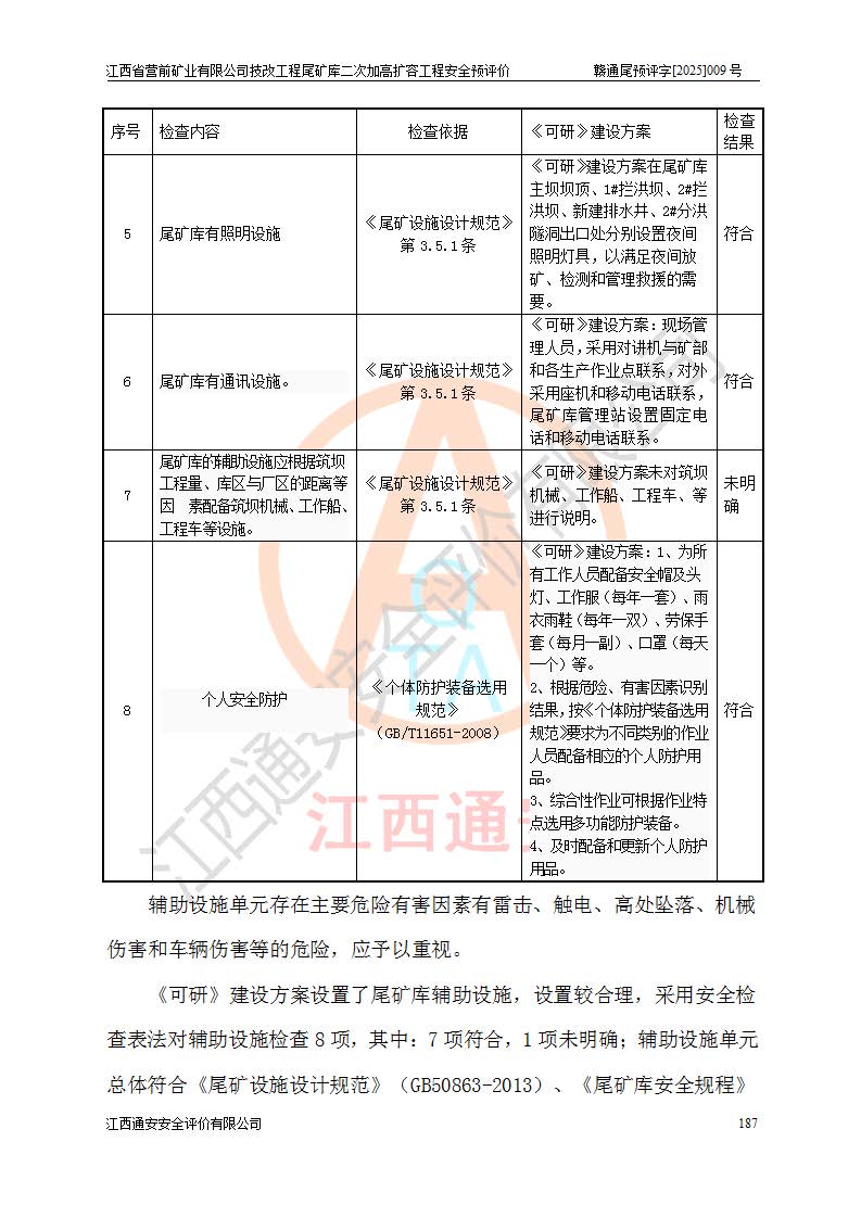江西省營前礦業(yè)有限公司于2003年12月16日成立,位于贛州市上猶縣營前鎮(zhèn)焦里村境內(nèi),公司注冊資本10000萬元,法定**人陳雅博,礦區(qū)地理坐標(biāo):東經(jīng)114°18′30″~114°19′00″,北緯25°52′35″~25°53′47″。公司經(jīng)營范圍包括:鉛礦、鋅、鎢、銀地下開采、銷售。 江西省營前礦業(yè)有限公司技改工程尾礦庫位于焦里鎢銀鉛鋅礦區(qū),處于上猶縣水巖鄉(xiāng)井子村坑尾自然村境內(nèi),為山谷型尾礦庫。 江西省營前礦業(yè)有限公司技改工程尾礦庫于2013年由福建省冶金工業(yè)設(shè)計院設(shè)計,2014年8月開始施工建設(shè),2015年4月竣工開始試運(yùn)行,2015年11月完成竣工驗收,2016年1月首次取得安全生產(chǎn)許可證,2019年1月完成延期換證,2020年8月委托金建工程設(shè)計有限公司進(jìn)行尾礦庫加高擴(kuò)容工作,2020年10月21日取得了江西省應(yīng)急管理廳下發(fā)的《關(guān)于江西省營前礦業(yè)有限公司技改工程尾礦庫加高擴(kuò)容工程安全設(shè)施設(shè)計的審查意見》(贛應(yīng)急非煤項目設(shè)審〔2020〕46號),之后委托駐馬店市黃淮建設(shè)工程有限公司負(fù)責(zé)施工,云南潤滇工程技術(shù)有限公司負(fù)責(zé)監(jiān)理,2021年12月完成加高擴(kuò)容竣工驗收工作,經(jīng)過延期,現(xiàn)尾礦庫安全生產(chǎn)許可證編號(贛)FM安許證字[2016]M1692號,**期為2025年01月18日至2028年01月17日。 江西省營前礦業(yè)有限公司技改工程尾礦庫為山谷型尾礦庫,初期壩為透水堆石壩,壩頂高程為330.0m,初期壩高25.0m,后期采用上游式尾礦堆積壩,加高擴(kuò)容后*終壩頂高程為380.0m,堆積壩高50.0m,總壩高為75.0m,總庫容為為503.14×104m3,尾礦庫為三等庫。尾礦庫初期壩以上總匯水面積3.53km2,防洪標(biāo)準(zhǔn)取500年一遇。 目前尾礦庫由初期壩、堆積壩、庫內(nèi)排洪系統(tǒng)(雙格排水斜槽+連接井+排水涵洞+排洪隧洞+排水陡槽+消力池)、1#攔洪壩、1#分洪隧洞、2#攔洪壩、2#分洪隧洞和安全監(jiān)測設(shè)施組成。根據(jù)建設(shè)單位提供的尾礦庫平面布置圖,截至2024年12月,現(xiàn)狀尾礦庫堆積壩頂高程為372.2m,現(xiàn)狀總壩高67.2m,灘頂高程為369.8m,現(xiàn)狀全庫容387.51×104m3,現(xiàn)狀尾礦庫為三等庫,原加高擴(kuò)容設(shè)計*終堆積壩頂高程為380.0m,現(xiàn)剩余庫容115.63×104m3,剩余**庫容約92.5×104m3,剩余服務(wù)年限約4.5年;礦山現(xiàn)有儲量較大,剩余庫容及服務(wù)年限不滿足礦山后期生產(chǎn)需要。 技改工程尾礦庫尾礦壩下游1**范圍無居民,不存在工礦企業(yè)等建構(gòu)筑物,不屬于“頭頂庫”;尾礦庫不壓礦;距贛江直線距離60**;不涉及保護(hù)區(qū)及生態(tài)紅線;尾礦庫所在溝谷較長,谷底平均縱坡9%,上游周邊山體地形有利于尾礦庫二次加高擴(kuò)容工程的實施,因此為了增加尾礦庫庫容,延長服務(wù)年限,充分利用尾礦庫所在溝谷地形,江西省營前礦業(yè)有限公司對技改尾礦庫進(jìn)行二次加高擴(kuò)容。 2024年12月,江西省營前礦業(yè)有限公司委托地礦贛西地質(zhì)工程勘察院編制了《江西省營前礦業(yè)有限公司技改工程尾礦庫二次擴(kuò)容工程(水文)地質(zhì)勘察報告》,2025年4月,江西省營前礦業(yè)有限公司委托金建工程設(shè)計有限公司編制了《江西省營前礦業(yè)有限公司技改工程尾礦庫二次加高擴(kuò)容工程可行性研究報告》。 按照非煤礦山建設(shè)項目安全設(shè)施“三同時”的規(guī)定要求,技改工程尾礦庫為二次加高擴(kuò)容工程,**進(jìn)行安全預(yù)評價;江西省營前礦業(yè)有限公司委托我公司承擔(dān)技改工程尾礦庫二次加高擴(kuò)容工程建設(shè)項目的安全預(yù)評價工作。 |