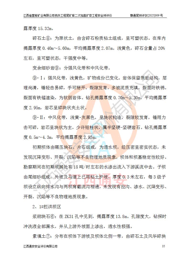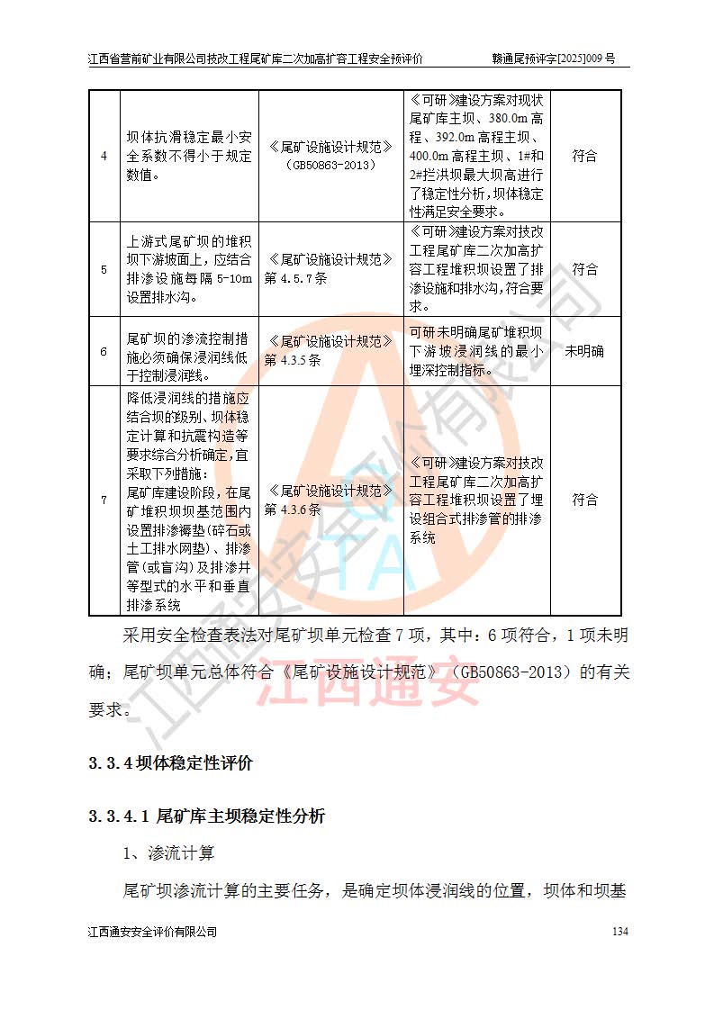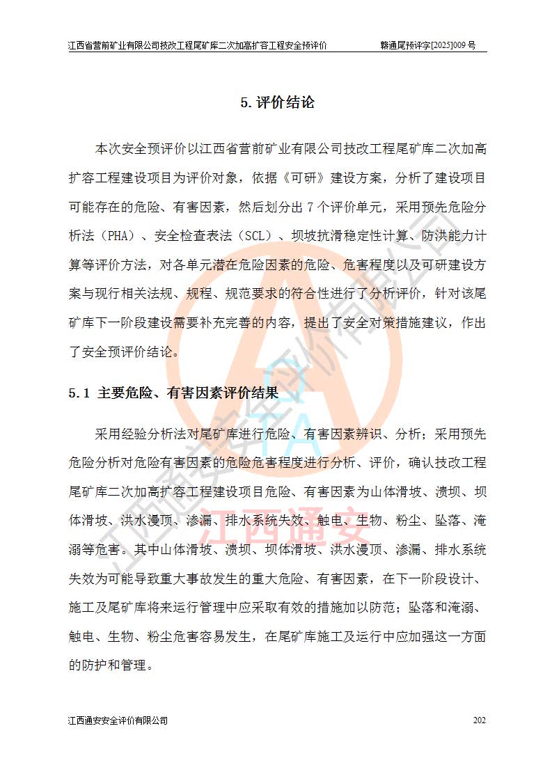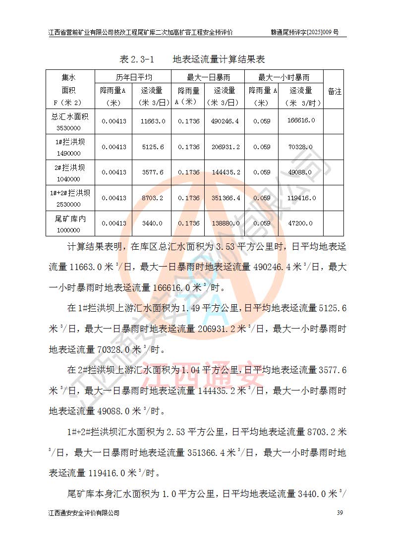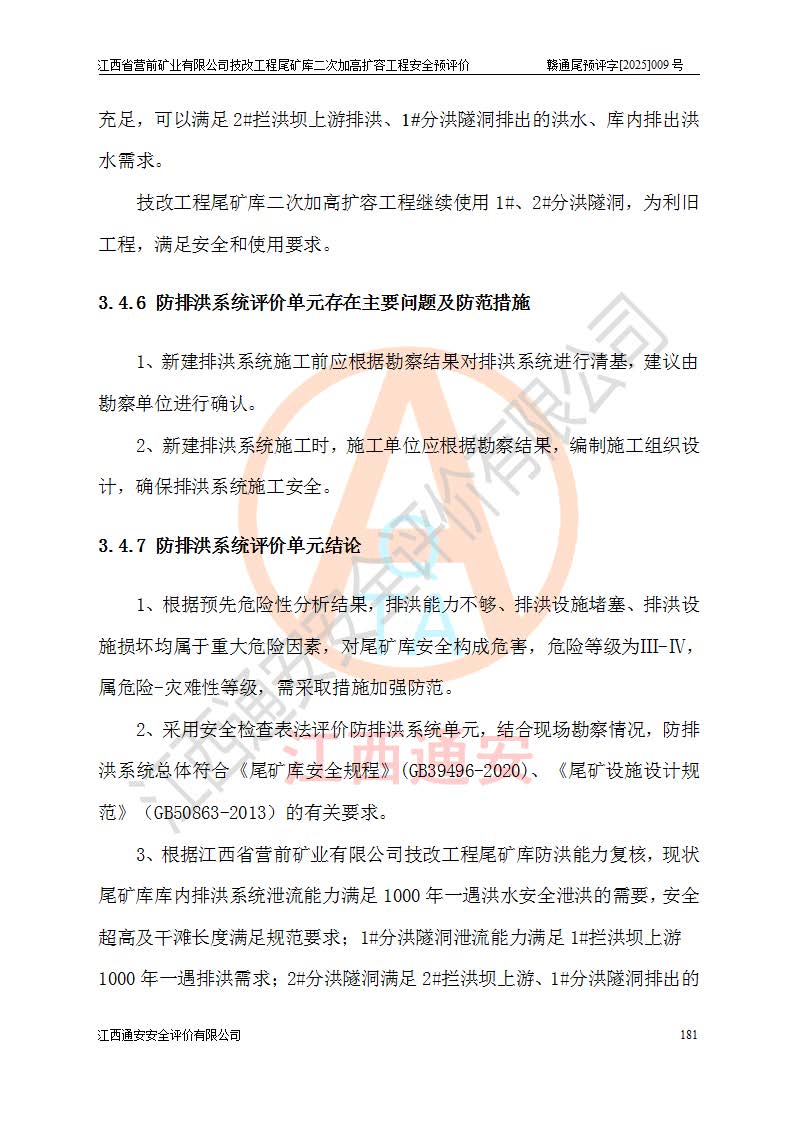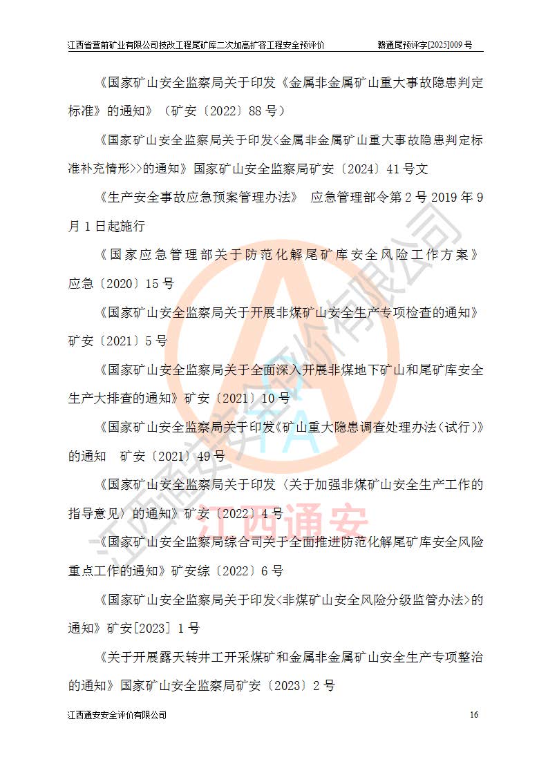 江西省營前礦業(yè)有限公司于2003年12月16日成立,位于贛州市上猶縣營前鎮(zhèn)焦里村境內(nèi),公司注冊資本10000萬元,法定**人陳雅博,礦區(qū)地理坐標(biāo):東經(jīng)114°18′30″~114°19′00″,北緯25°52′35″~25°53′47″。公司經(jīng)營范圍包括:鉛礦、鋅、鎢、銀地下開采、銷售。 江西省營前礦業(yè)有限公司技改工程尾礦庫位于焦里鎢銀鉛鋅礦區(qū),處于上猶縣水巖鄉(xiāng)井子村坑尾自然村境內(nèi),為山谷型尾礦庫。 江西省營前礦業(yè)有限公司技改工程尾礦庫于2013年由福建省冶金工業(yè)設(shè)計院設(shè)計,2014年8月開始施工建設(shè),2015年4月竣工開始試運(yùn)行,2015年11月完成竣工驗收,2016年1月首次取得安全生產(chǎn)許可證,2019年1月完成延期換證,2020年8月委托金建工程設(shè)計有限公司進(jìn)行尾礦庫加高擴(kuò)容工作,2020年10月21日取得了江西省應(yīng)急管理廳下發(fā)的《關(guān)于江西省營前礦業(yè)有限公司技改工程尾礦庫加高擴(kuò)容工程安全設(shè)施設(shè)計的審查意見》(贛應(yīng)急非煤項目設(shè)審〔2020〕46號),之后委托駐馬店市黃淮建設(shè)工程有限公司負(fù)責(zé)施工,云南潤滇工程技術(shù)有限公司負(fù)責(zé)監(jiān)理,2021年12月完成加高擴(kuò)容竣工驗收工作,經(jīng)過延期,現(xiàn)尾礦庫安全生產(chǎn)許可證編號(贛)FM安許證字[2016]M1692號,**期為2025年01月18日至2028年01月17日。 江西省營前礦業(yè)有限公司技改工程尾礦庫為山谷型尾礦庫,初期壩為透水堆石壩,壩頂高程為330.0m,初期壩高25.0m,后期采用上游式尾礦堆積壩,加高擴(kuò)容后*終壩頂高程為380.0m,堆積壩高50.0m,總壩高為75.0m,總庫容為為503.14×104m3,尾礦庫為三等庫。尾礦庫初期壩以上總匯水面積3.53km2,防洪標(biāo)準(zhǔn)取500年一遇。 目前尾礦庫由初期壩、堆積壩、庫內(nèi)排洪系統(tǒng)(雙格排水斜槽+連接井+排水涵洞+排洪隧洞+排水陡槽+消力池)、1#攔洪壩、1#分洪隧洞、2#攔洪壩、2#分洪隧洞和安全監(jiān)測設(shè)施組成。根據(jù)建設(shè)單位提供的尾礦庫平面布置圖,截至2024年12月,現(xiàn)狀尾礦庫堆積壩頂高程為372.2m,現(xiàn)狀總壩高67.2m,灘頂高程為369.8m,現(xiàn)狀全庫容387.51×104m3,現(xiàn)狀尾礦庫為三等庫,原加高擴(kuò)容設(shè)計*終堆積壩頂高程為380.0m,現(xiàn)剩余庫容115.63×104m3,剩余**庫容約92.5×104m3,剩余服務(wù)年限約4.5年;礦山現(xiàn)有儲量較大,剩余庫容及服務(wù)年限不滿足礦山后期生產(chǎn)需要。 技改工程尾礦庫尾礦壩下游1**范圍無居民,不存在工礦企業(yè)等建構(gòu)筑物,不屬于“頭頂庫”;尾礦庫不壓礦;距贛江直線距離60**;不涉及保護(hù)區(qū)及生態(tài)紅線;尾礦庫所在溝谷較長,谷底平均縱坡9%,上游周邊山體地形有利于尾礦庫二次加高擴(kuò)容工程的實施,因此為了增加尾礦庫庫容,延長服務(wù)年限,充分利用尾礦庫所在溝谷地形,江西省營前礦業(yè)有限公司對技改尾礦庫進(jìn)行二次加高擴(kuò)容。 2024年12月,江西省營前礦業(yè)有限公司委托地礦贛西地質(zhì)工程勘察院編制了《江西省營前礦業(yè)有限公司技改工程尾礦庫二次擴(kuò)容工程(水文)地質(zhì)勘察報告》,2025年4月,江西省營前礦業(yè)有限公司委托金建工程設(shè)計有限公司編制了《江西省營前礦業(yè)有限公司技改工程尾礦庫二次加高擴(kuò)容工程可行性研究報告》。 按照非煤礦山建設(shè)項目安全設(shè)施“三同時”的規(guī)定要求,技改工程尾礦庫為二次加高擴(kuò)容工程,**進(jìn)行安全預(yù)評價;江西省營前礦業(yè)有限公司委托我公司承擔(dān)技改工程尾礦庫二次加高擴(kuò)容工程建設(shè)項目的安全預(yù)評價工作。 |