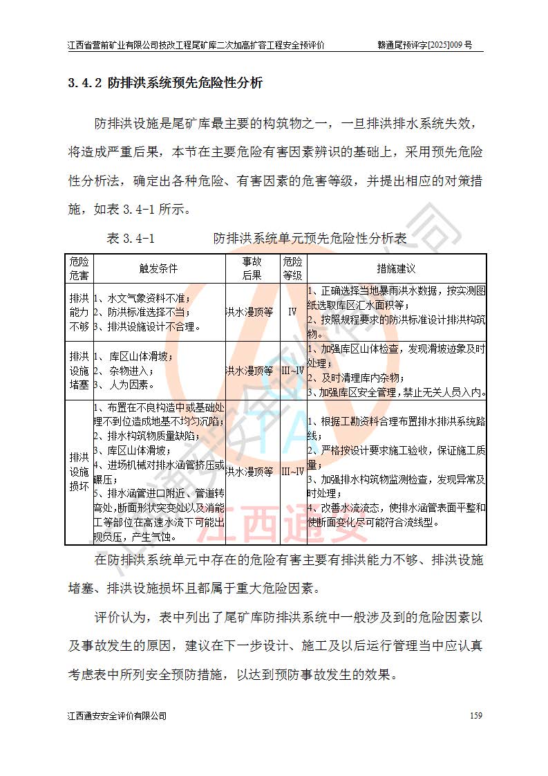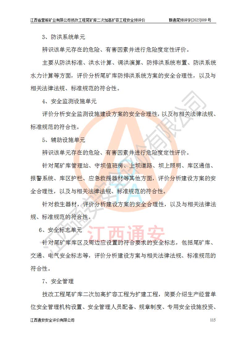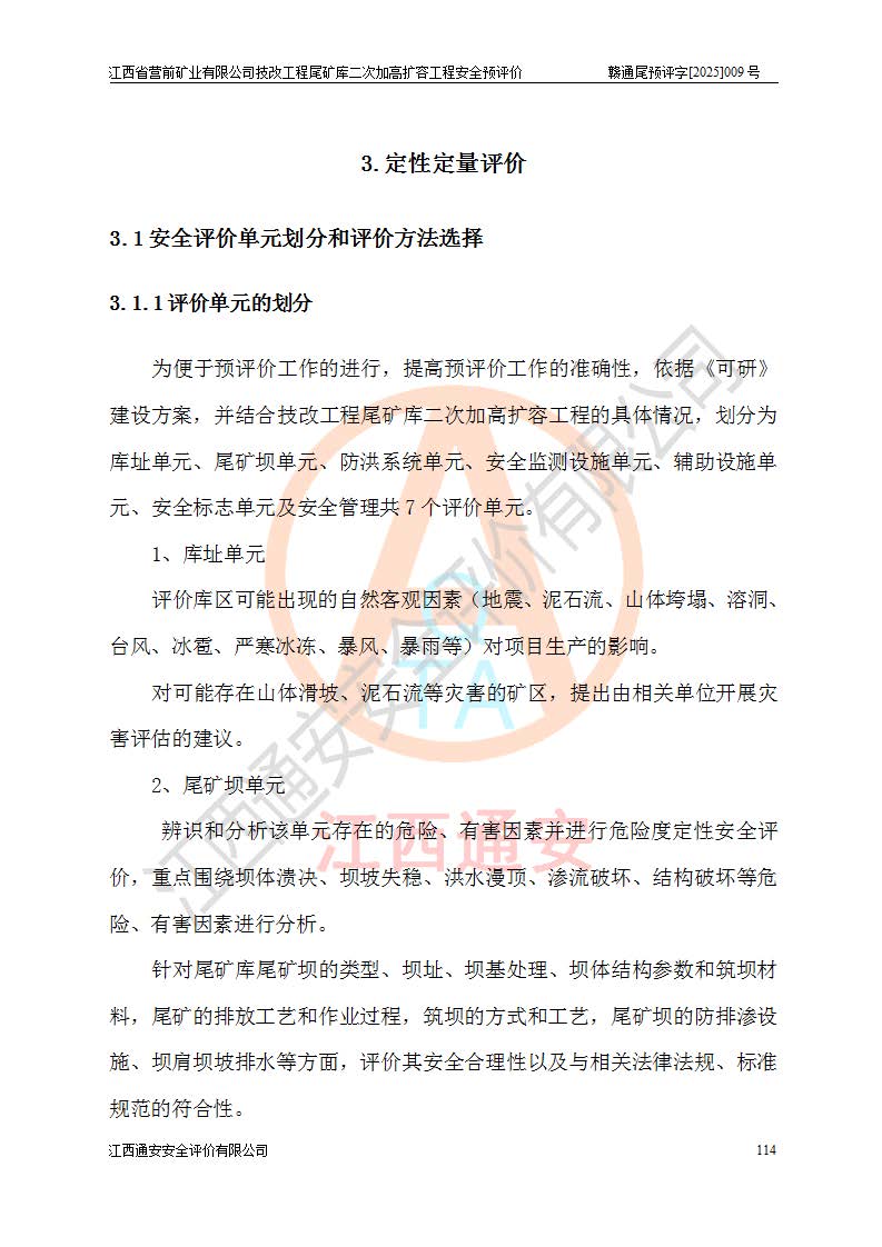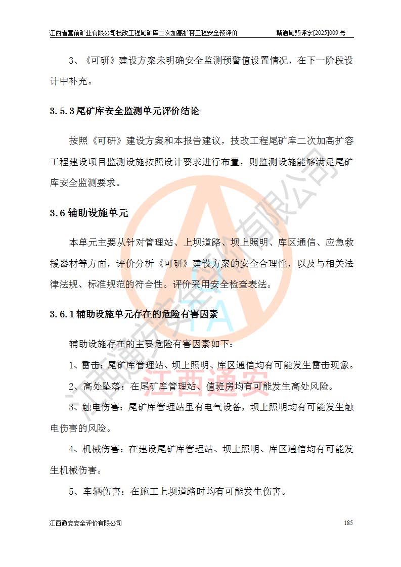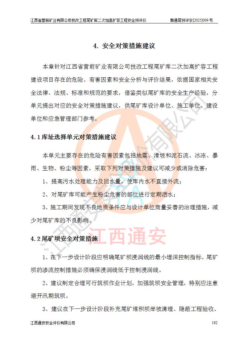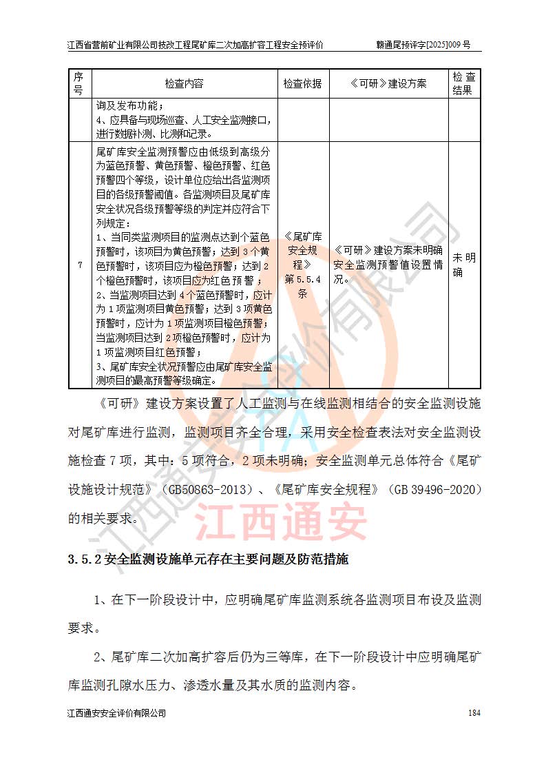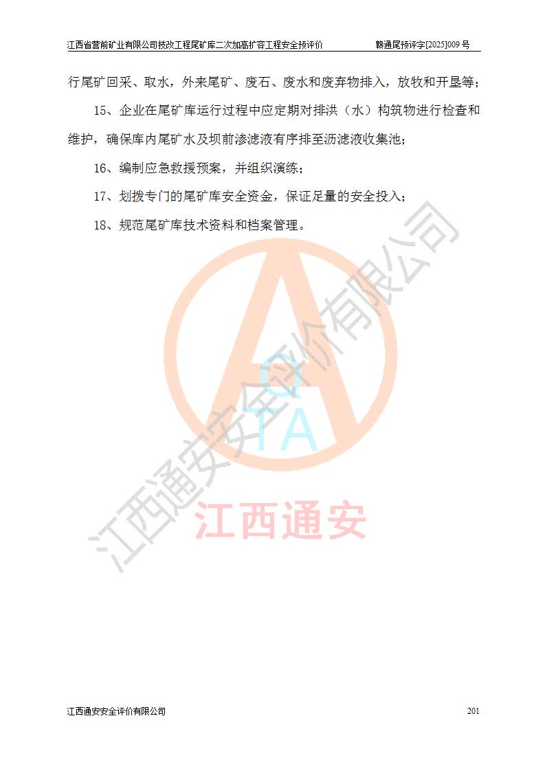 江西省營前礦業(yè)有限公司于2003年12月16日成立,位于贛州市上猶縣營前鎮(zhèn)焦里村境內(nèi),公司注冊資本10000萬元,法定**人陳雅博,礦區(qū)地理坐標(biāo):東經(jīng)114°18′30″~114°19′00″,北緯25°52′35″~25°53′47″。公司經(jīng)營范圍包括:鉛礦、鋅、鎢、銀地下開采、銷售。 江西省營前礦業(yè)有限公司技改工程尾礦庫位于焦里鎢銀鉛鋅礦區(qū),處于上猶縣水巖鄉(xiāng)井子村坑尾自然村境內(nèi),為山谷型尾礦庫。 江西省營前礦業(yè)有限公司技改工程尾礦庫于2013年由福建省冶金工業(yè)設(shè)計院設(shè)計,2014年8月開始施工建設(shè),2015年4月竣工開始試運(yùn)行,2015年11月完成竣工驗收,2016年1月首次取得安全生產(chǎn)許可證,2019年1月完成延期換證,2020年8月委托金建工程設(shè)計有限公司進(jìn)行尾礦庫加高擴(kuò)容工作,2020年10月21日取得了江西省應(yīng)急管理廳下發(fā)的《關(guān)于江西省營前礦業(yè)有限公司技改工程尾礦庫加高擴(kuò)容工程安全設(shè)施設(shè)計的審查意見》(贛應(yīng)急非煤項目設(shè)審〔2020〕46號),之后委托駐馬店市黃淮建設(shè)工程有限公司負(fù)責(zé)施工,云南潤滇工程技術(shù)有限公司負(fù)責(zé)監(jiān)理,2021年12月完成加高擴(kuò)容竣工驗收工作,經(jīng)過延期,現(xiàn)尾礦庫安全生產(chǎn)許可證編號(贛)FM安許證字[2016]M1692號,**期為2025年01月18日至2028年01月17日。 江西省營前礦業(yè)有限公司技改工程尾礦庫為山谷型尾礦庫,初期壩為透水堆石壩,壩頂高程為330.0m,初期壩高25.0m,后期采用上游式尾礦堆積壩,加高擴(kuò)容后*終壩頂高程為380.0m,堆積壩高50.0m,總壩高為75.0m,總庫容為為503.14×104m3,尾礦庫為三等庫。尾礦庫初期壩以上總匯水面積3.53km2,防洪標(biāo)準(zhǔn)取500年一遇。 目前尾礦庫由初期壩、堆積壩、庫內(nèi)排洪系統(tǒng)(雙格排水斜槽+連接井+排水涵洞+排洪隧洞+排水陡槽+消力池)、1#攔洪壩、1#分洪隧洞、2#攔洪壩、2#分洪隧洞和安全監(jiān)測設(shè)施組成。根據(jù)建設(shè)單位提供的尾礦庫平面布置圖,截至2024年12月,現(xiàn)狀尾礦庫堆積壩頂高程為372.2m,現(xiàn)狀總壩高67.2m,灘頂高程為369.8m,現(xiàn)狀全庫容387.51×104m3,現(xiàn)狀尾礦庫為三等庫,原加高擴(kuò)容設(shè)計*終堆積壩頂高程為380.0m,現(xiàn)剩余庫容115.63×104m3,剩余**庫容約92.5×104m3,剩余服務(wù)年限約4.5年;礦山現(xiàn)有儲量較大,剩余庫容及服務(wù)年限不滿足礦山后期生產(chǎn)需要。 技改工程尾礦庫尾礦壩下游1**范圍無居民,不存在工礦企業(yè)等建構(gòu)筑物,不屬于“頭頂庫”;尾礦庫不壓礦;距贛江直線距離60**;不涉及保護(hù)區(qū)及生態(tài)紅線;尾礦庫所在溝谷較長,谷底平均縱坡9%,上游周邊山體地形有利于尾礦庫二次加高擴(kuò)容工程的實施,因此為了增加尾礦庫庫容,延長服務(wù)年限,充分利用尾礦庫所在溝谷地形,江西省營前礦業(yè)有限公司對技改尾礦庫進(jìn)行二次加高擴(kuò)容。 2024年12月,江西省營前礦業(yè)有限公司委托地礦贛西地質(zhì)工程勘察院編制了《江西省營前礦業(yè)有限公司技改工程尾礦庫二次擴(kuò)容工程(水文)地質(zhì)勘察報告》,2025年4月,江西省營前礦業(yè)有限公司委托金建工程設(shè)計有限公司編制了《江西省營前礦業(yè)有限公司技改工程尾礦庫二次加高擴(kuò)容工程可行性研究報告》。 按照非煤礦山建設(shè)項目安全設(shè)施“三同時”的規(guī)定要求,技改工程尾礦庫為二次加高擴(kuò)容工程,**進(jìn)行安全預(yù)評價;江西省營前礦業(yè)有限公司委托我公司承擔(dān)技改工程尾礦庫二次加高擴(kuò)容工程建設(shè)項目的安全預(yù)評價工作。 |
