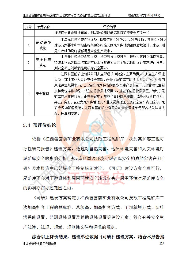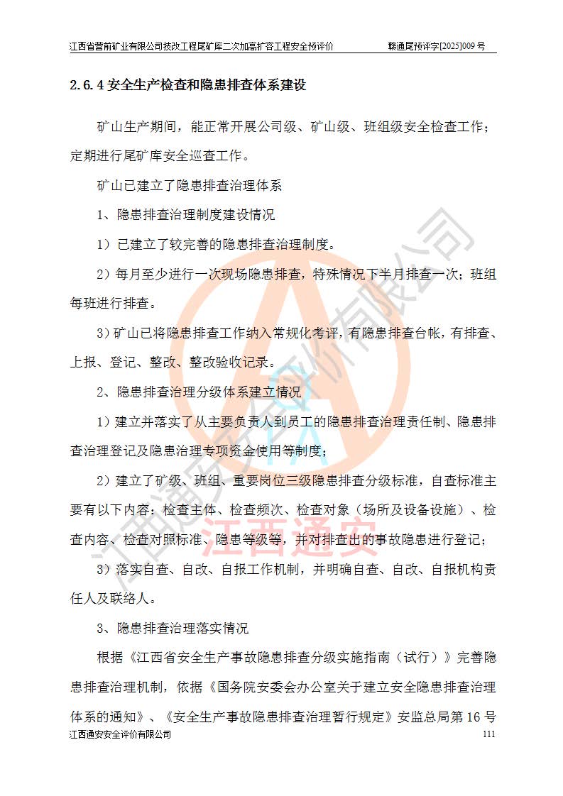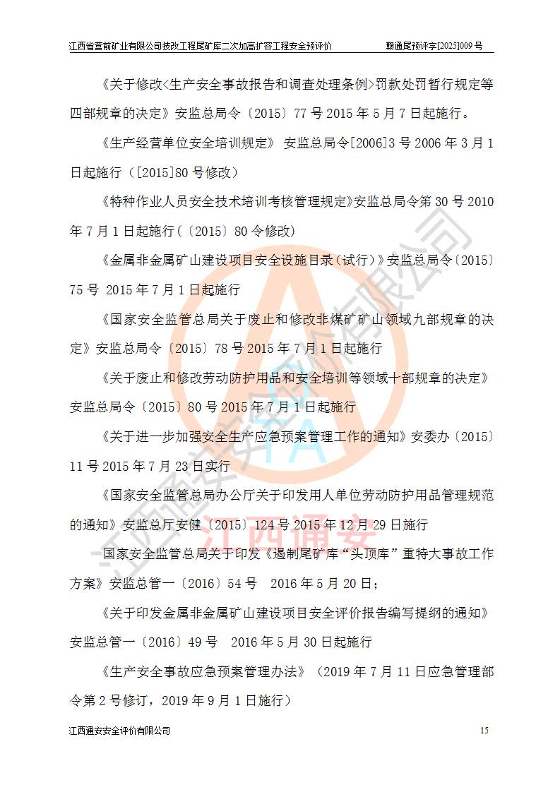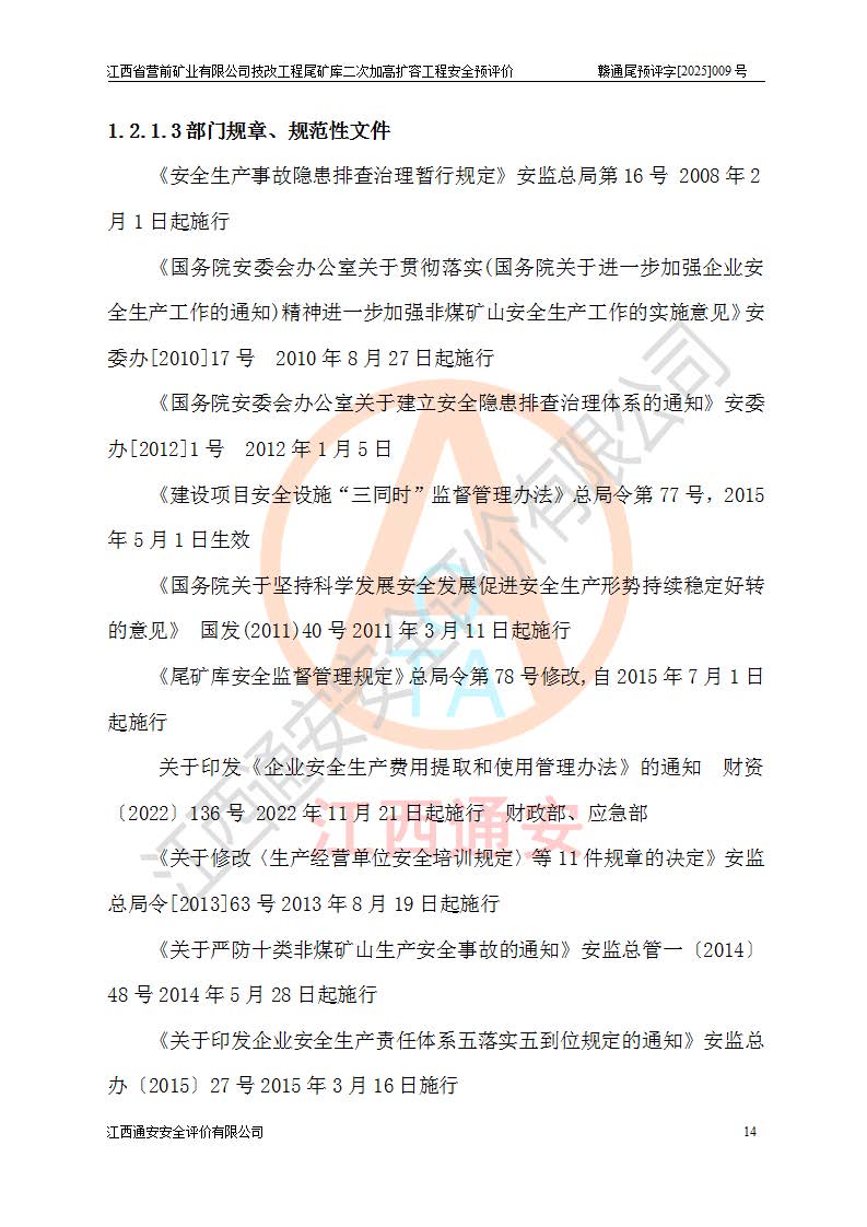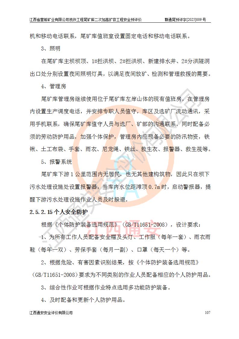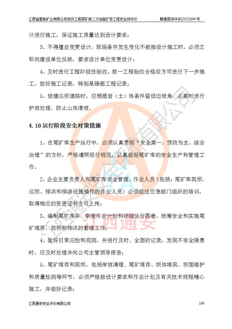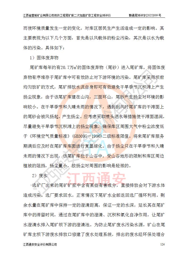 江西省營前礦業(yè)有限公司于2003年12月16日成立,位于贛州市上猶縣營前鎮(zhèn)焦里村境內(nèi),公司注冊資本10000萬元,法定**人陳雅博,礦區(qū)地理坐標(biāo):東經(jīng)114°18′30″~114°19′00″,北緯25°52′35″~25°53′47″。公司經(jīng)營范圍包括:鉛礦、鋅、鎢、銀地下開采、銷售。 江西省營前礦業(yè)有限公司技改工程尾礦庫位于焦里鎢銀鉛鋅礦區(qū),處于上猶縣水巖鄉(xiāng)井子村坑尾自然村境內(nèi),為山谷型尾礦庫。 江西省營前礦業(yè)有限公司技改工程尾礦庫于2013年由福建省冶金工業(yè)設(shè)計院設(shè)計,2014年8月開始施工建設(shè),2015年4月竣工開始試運(yùn)行,2015年11月完成竣工驗收,2016年1月首次取得安全生產(chǎn)許可證,2019年1月完成延期換證,2020年8月委托金建工程設(shè)計有限公司進(jìn)行尾礦庫加高擴(kuò)容工作,2020年10月21日取得了江西省應(yīng)急管理廳下發(fā)的《關(guān)于江西省營前礦業(yè)有限公司技改工程尾礦庫加高擴(kuò)容工程安全設(shè)施設(shè)計的審查意見》(贛應(yīng)急非煤項目設(shè)審〔2020〕46號),之后委托駐馬店市黃淮建設(shè)工程有限公司負(fù)責(zé)施工,云南潤滇工程技術(shù)有限公司負(fù)責(zé)監(jiān)理,2021年12月完成加高擴(kuò)容竣工驗收工作,經(jīng)過延期,現(xiàn)尾礦庫安全生產(chǎn)許可證編號(贛)FM安許證字[2016]M1692號,**期為2025年01月18日至2028年01月17日。 江西省營前礦業(yè)有限公司技改工程尾礦庫為山谷型尾礦庫,初期壩為透水堆石壩,壩頂高程為330.0m,初期壩高25.0m,后期采用上游式尾礦堆積壩,加高擴(kuò)容后*終壩頂高程為380.0m,堆積壩高50.0m,總壩高為75.0m,總庫容為為503.14×104m3,尾礦庫為三等庫。尾礦庫初期壩以上總匯水面積3.53km2,防洪標(biāo)準(zhǔn)取500年一遇。 目前尾礦庫由初期壩、堆積壩、庫內(nèi)排洪系統(tǒng)(雙格排水斜槽+連接井+排水涵洞+排洪隧洞+排水陡槽+消力池)、1#攔洪壩、1#分洪隧洞、2#攔洪壩、2#分洪隧洞和安全監(jiān)測設(shè)施組成。根據(jù)建設(shè)單位提供的尾礦庫平面布置圖,截至2024年12月,現(xiàn)狀尾礦庫堆積壩頂高程為372.2m,現(xiàn)狀總壩高67.2m,灘頂高程為369.8m,現(xiàn)狀全庫容387.51×104m3,現(xiàn)狀尾礦庫為三等庫,原加高擴(kuò)容設(shè)計*終堆積壩頂高程為380.0m,現(xiàn)剩余庫容115.63×104m3,剩余**庫容約92.5×104m3,剩余服務(wù)年限約4.5年;礦山現(xiàn)有儲量較大,剩余庫容及服務(wù)年限不滿足礦山后期生產(chǎn)需要。 技改工程尾礦庫尾礦壩下游1**范圍無居民,不存在工礦企業(yè)等建構(gòu)筑物,不屬于“頭頂庫”;尾礦庫不壓礦;距贛江直線距離60**;不涉及保護(hù)區(qū)及生態(tài)紅線;尾礦庫所在溝谷較長,谷底平均縱坡9%,上游周邊山體地形有利于尾礦庫二次加高擴(kuò)容工程的實施,因此為了增加尾礦庫庫容,延長服務(wù)年限,充分利用尾礦庫所在溝谷地形,江西省營前礦業(yè)有限公司對技改尾礦庫進(jìn)行二次加高擴(kuò)容。 2024年12月,江西省營前礦業(yè)有限公司委托地礦贛西地質(zhì)工程勘察院編制了《江西省營前礦業(yè)有限公司技改工程尾礦庫二次擴(kuò)容工程(水文)地質(zhì)勘察報告》,2025年4月,江西省營前礦業(yè)有限公司委托金建工程設(shè)計有限公司編制了《江西省營前礦業(yè)有限公司技改工程尾礦庫二次加高擴(kuò)容工程可行性研究報告》。 按照非煤礦山建設(shè)項目安全設(shè)施“三同時”的規(guī)定要求,技改工程尾礦庫為二次加高擴(kuò)容工程,**進(jìn)行安全預(yù)評價;江西省營前礦業(yè)有限公司委托我公司承擔(dān)技改工程尾礦庫二次加高擴(kuò)容工程建設(shè)項目的安全預(yù)評價工作。 |