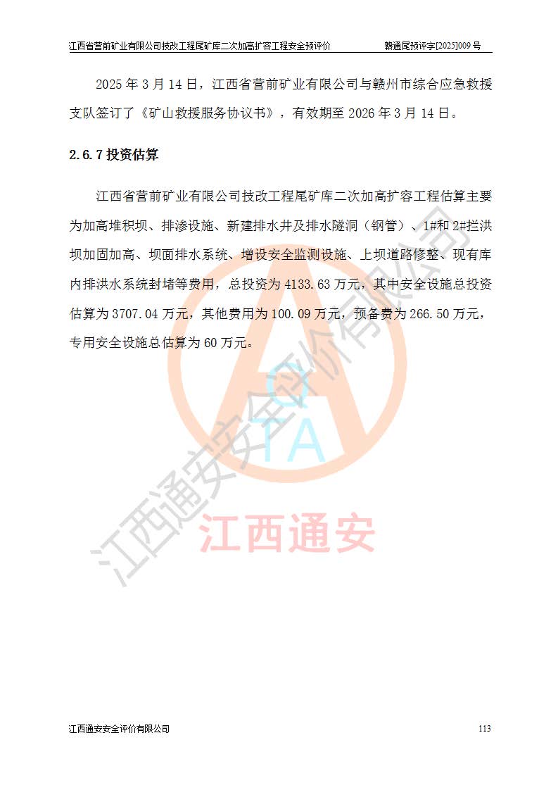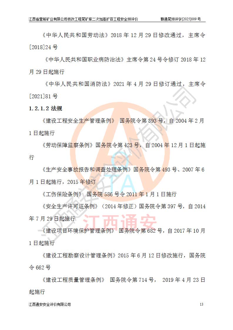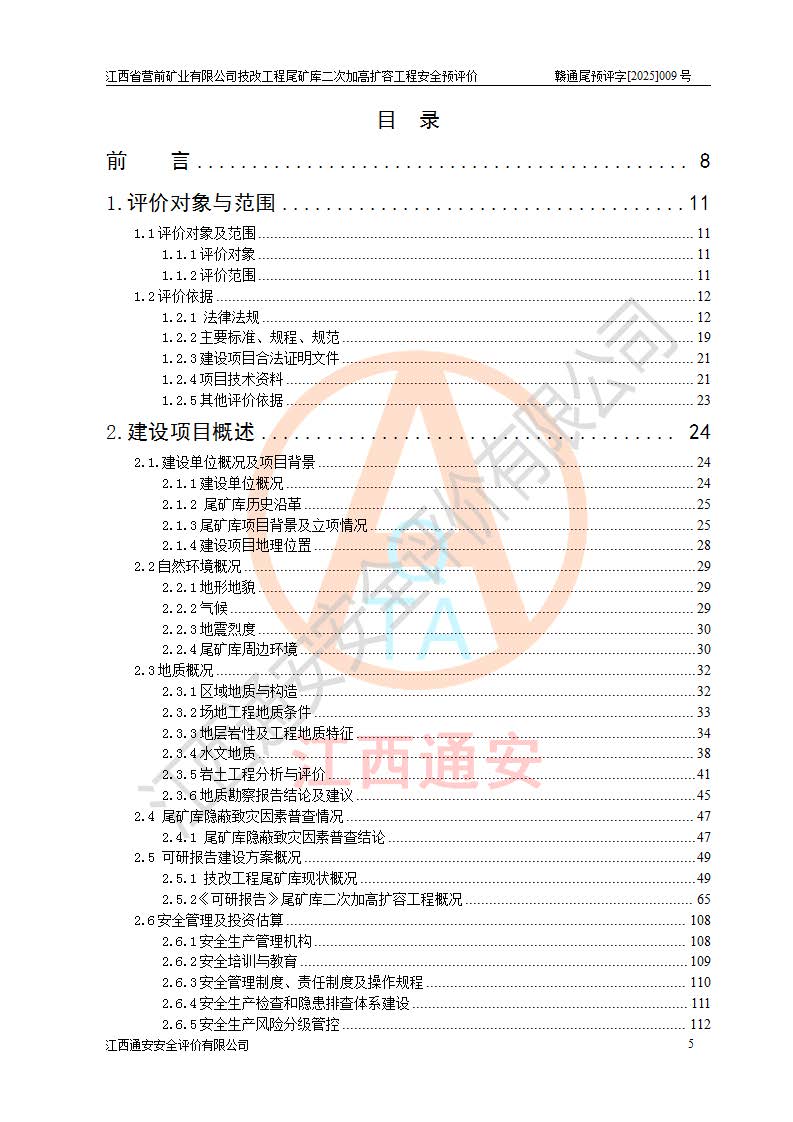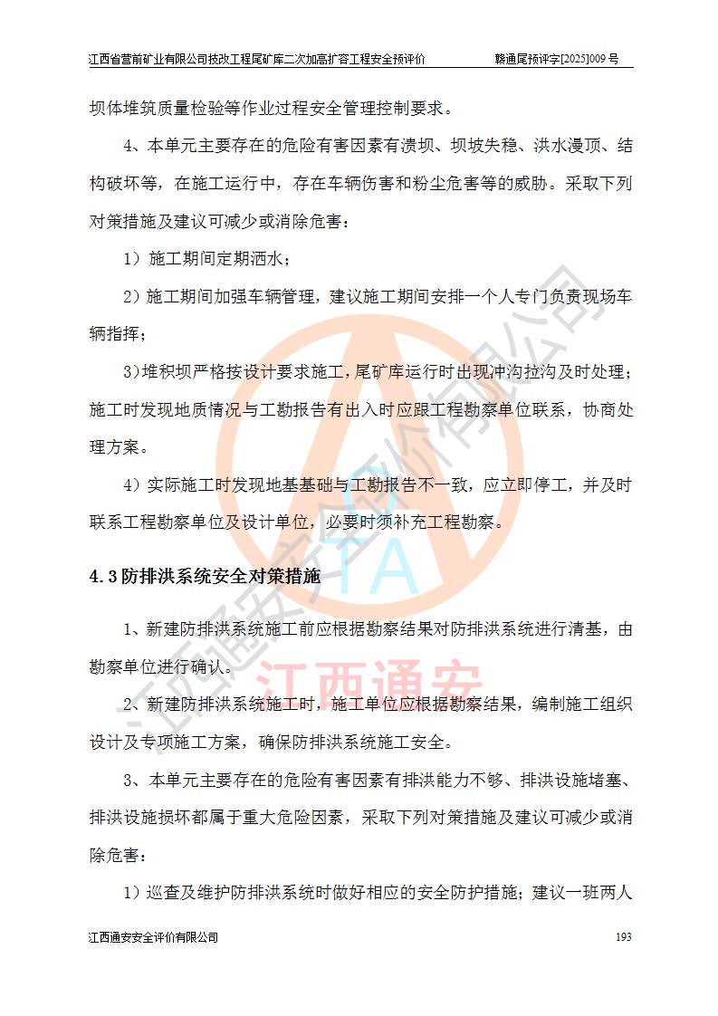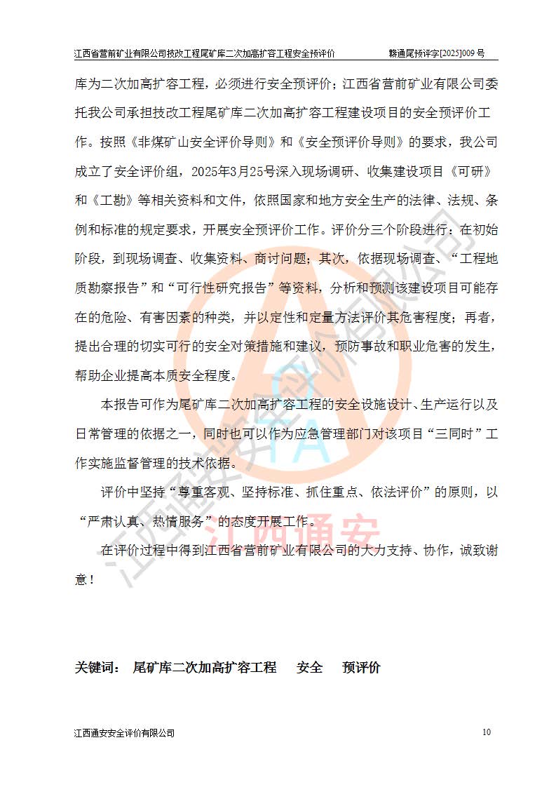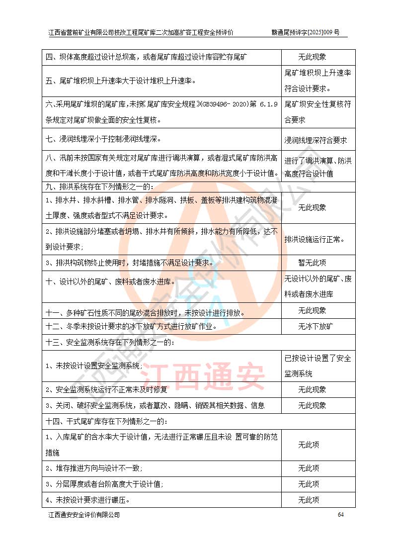 江西省營前礦業(yè)有限公司于2003年12月16日成立,位于贛州市上猶縣營前鎮(zhèn)焦里村境內(nèi),公司注冊資本10000萬元,法定**人陳雅博,礦區(qū)地理坐標(biāo):東經(jīng)114°18′30″~114°19′00″,北緯25°52′35″~25°53′47″。公司經(jīng)營范圍包括:鉛礦、鋅、鎢、銀地下開采、銷售。 江西省營前礦業(yè)有限公司技改工程尾礦庫位于焦里鎢銀鉛鋅礦區(qū),處于上猶縣水巖鄉(xiāng)井子村坑尾自然村境內(nèi),為山谷型尾礦庫。 江西省營前礦業(yè)有限公司技改工程尾礦庫于2013年由福建省冶金工業(yè)設(shè)計院設(shè)計,2014年8月開始施工建設(shè),2015年4月竣工開始試運(yùn)行,2015年11月完成竣工驗收,2016年1月首次取得安全生產(chǎn)許可證,2019年1月完成延期換證,2020年8月委托金建工程設(shè)計有限公司進(jìn)行尾礦庫加高擴(kuò)容工作,2020年10月21日取得了江西省應(yīng)急管理廳下發(fā)的《關(guān)于江西省營前礦業(yè)有限公司技改工程尾礦庫加高擴(kuò)容工程安全設(shè)施設(shè)計的審查意見》(贛應(yīng)急非煤項目設(shè)審〔2020〕46號),之后委托駐馬店市黃淮建設(shè)工程有限公司負(fù)責(zé)施工,云南潤滇工程技術(shù)有限公司負(fù)責(zé)監(jiān)理,2021年12月完成加高擴(kuò)容竣工驗收工作,經(jīng)過延期,現(xiàn)尾礦庫安全生產(chǎn)許可證編號(贛)FM安許證字[2016]M1692號,**期為2025年01月18日至2028年01月17日。 江西省營前礦業(yè)有限公司技改工程尾礦庫為山谷型尾礦庫,初期壩為透水堆石壩,壩頂高程為330.0m,初期壩高25.0m,后期采用上游式尾礦堆積壩,加高擴(kuò)容后*終壩頂高程為380.0m,堆積壩高50.0m,總壩高為75.0m,總庫容為為503.14×104m3,尾礦庫為三等庫。尾礦庫初期壩以上總匯水面積3.53km2,防洪標(biāo)準(zhǔn)取500年一遇。 目前尾礦庫由初期壩、堆積壩、庫內(nèi)排洪系統(tǒng)(雙格排水斜槽+連接井+排水涵洞+排洪隧洞+排水陡槽+消力池)、1#攔洪壩、1#分洪隧洞、2#攔洪壩、2#分洪隧洞和安全監(jiān)測設(shè)施組成。根據(jù)建設(shè)單位提供的尾礦庫平面布置圖,截至2024年12月,現(xiàn)狀尾礦庫堆積壩頂高程為372.2m,現(xiàn)狀總壩高67.2m,灘頂高程為369.8m,現(xiàn)狀全庫容387.51×104m3,現(xiàn)狀尾礦庫為三等庫,原加高擴(kuò)容設(shè)計*終堆積壩頂高程為380.0m,現(xiàn)剩余庫容115.63×104m3,剩余**庫容約92.5×104m3,剩余服務(wù)年限約4.5年;礦山現(xiàn)有儲量較大,剩余庫容及服務(wù)年限不滿足礦山后期生產(chǎn)需要。 技改工程尾礦庫尾礦壩下游1**范圍無居民,不存在工礦企業(yè)等建構(gòu)筑物,不屬于“頭頂庫”;尾礦庫不壓礦;距贛江直線距離60**;不涉及保護(hù)區(qū)及生態(tài)紅線;尾礦庫所在溝谷較長,谷底平均縱坡9%,上游周邊山體地形有利于尾礦庫二次加高擴(kuò)容工程的實施,因此為了增加尾礦庫庫容,延長服務(wù)年限,充分利用尾礦庫所在溝谷地形,江西省營前礦業(yè)有限公司對技改尾礦庫進(jìn)行二次加高擴(kuò)容。 2024年12月,江西省營前礦業(yè)有限公司委托地礦贛西地質(zhì)工程勘察院編制了《江西省營前礦業(yè)有限公司技改工程尾礦庫二次擴(kuò)容工程(水文)地質(zhì)勘察報告》,2025年4月,江西省營前礦業(yè)有限公司委托金建工程設(shè)計有限公司編制了《江西省營前礦業(yè)有限公司技改工程尾礦庫二次加高擴(kuò)容工程可行性研究報告》。 按照非煤礦山建設(shè)項目安全設(shè)施“三同時”的規(guī)定要求,技改工程尾礦庫為二次加高擴(kuò)容工程,**進(jìn)行安全預(yù)評價;江西省營前礦業(yè)有限公司委托我公司承擔(dān)技改工程尾礦庫二次加高擴(kuò)容工程建設(shè)項目的安全預(yù)評價工作。 |
