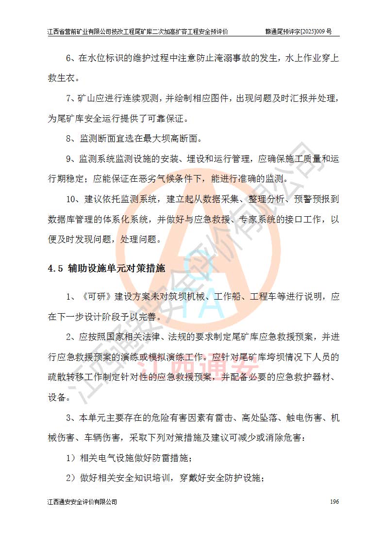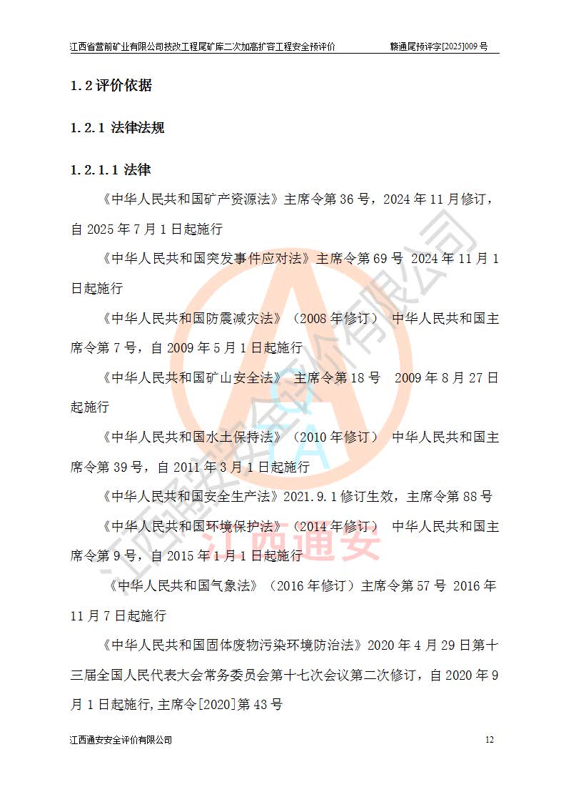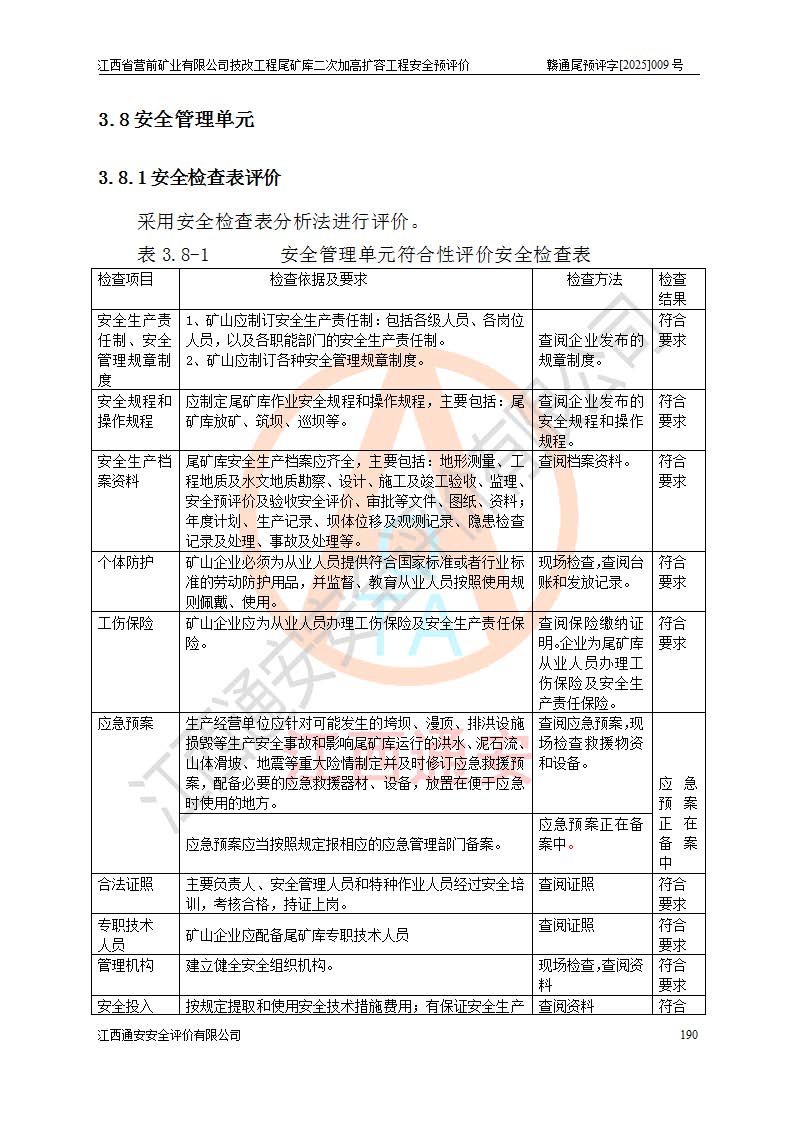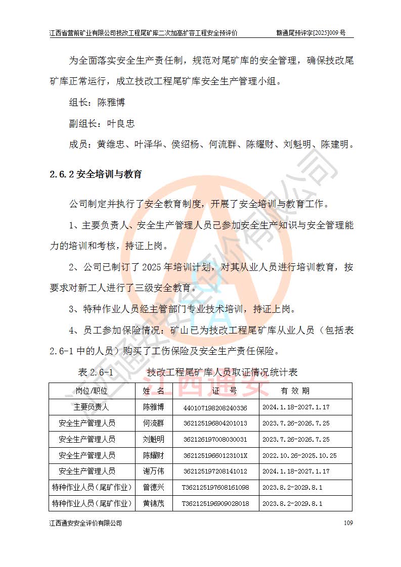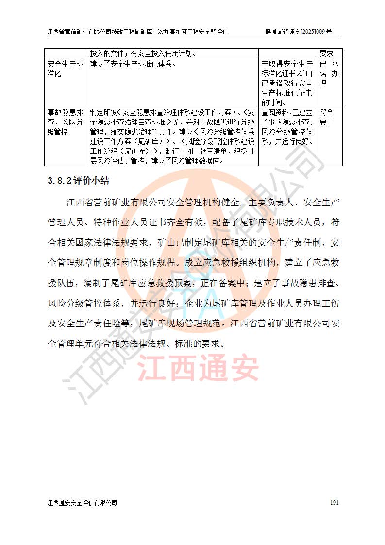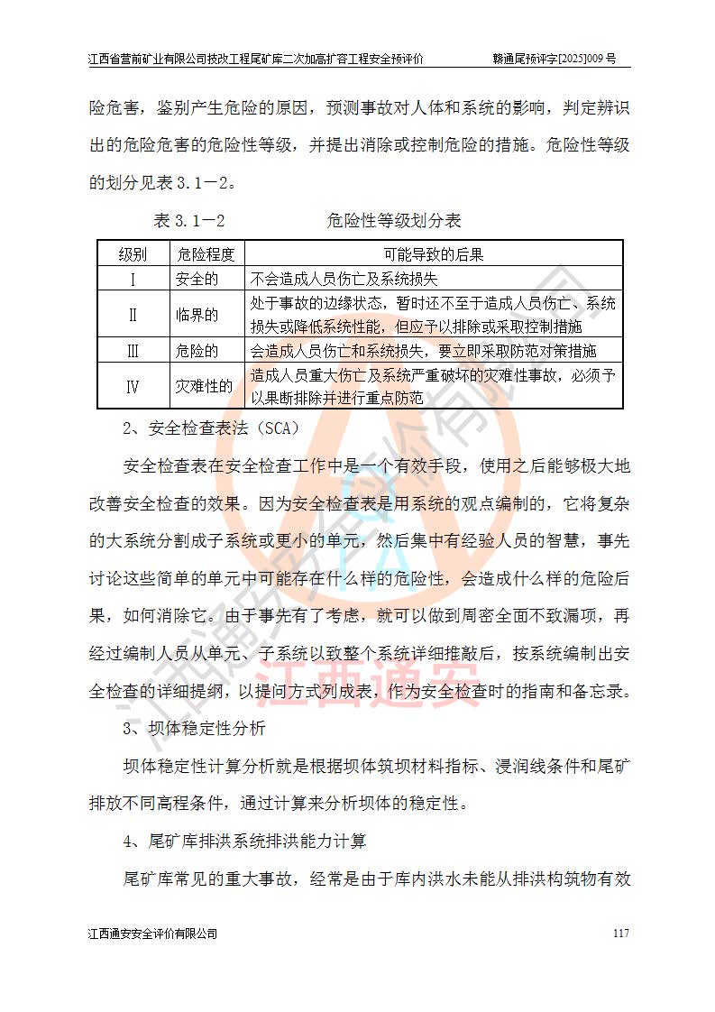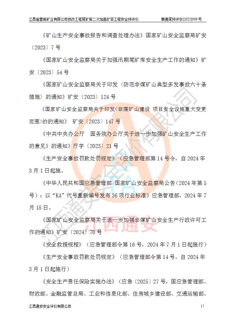江西省營前礦業(yè)有限公司于2003年12月16日成立,位于贛州市上猶縣營前鎮(zhèn)焦里村境內(nèi),公司注冊資本10000萬元,法定**人陳雅博,礦區(qū)地理坐標(biāo):東經(jīng)114°18′30″~114°19′00″,北緯25°52′35″~25°53′47″。公司經(jīng)營范圍包括:鉛礦、鋅、鎢、銀地下開采、銷售。 江西省營前礦業(yè)有限公司技改工程尾礦庫位于焦里鎢銀鉛鋅礦區(qū),處于上猶縣水巖鄉(xiāng)井子村坑尾自然村境內(nèi),為山谷型尾礦庫。 江西省營前礦業(yè)有限公司技改工程尾礦庫于2013年由福建省冶金工業(yè)設(shè)計院設(shè)計,2014年8月開始施工建設(shè),2015年4月竣工開始試運(yùn)行,2015年11月完成竣工驗收,2016年1月首次取得安全生產(chǎn)許可證,2019年1月完成延期換證,2020年8月委托金建工程設(shè)計有限公司進(jìn)行尾礦庫加高擴(kuò)容工作,2020年10月21日取得了江西省應(yīng)急管理廳下發(fā)的《關(guān)于江西省營前礦業(yè)有限公司技改工程尾礦庫加高擴(kuò)容工程安全設(shè)施設(shè)計的審查意見》(贛應(yīng)急非煤項目設(shè)審〔2020〕46號),之后委托駐馬店市黃淮建設(shè)工程有限公司負(fù)責(zé)施工,云南潤滇工程技術(shù)有限公司負(fù)責(zé)監(jiān)理,2021年12月完成加高擴(kuò)容竣工驗收工作,經(jīng)過延期,現(xiàn)尾礦庫安全生產(chǎn)許可證編號(贛)FM安許證字[2016]M1692號,**期為2025年01月18日至2028年01月17日。 江西省營前礦業(yè)有限公司技改工程尾礦庫為山谷型尾礦庫,初期壩為透水堆石壩,壩頂高程為330.0m,初期壩高25.0m,后期采用上游式尾礦堆積壩,加高擴(kuò)容后*終壩頂高程為380.0m,堆積壩高50.0m,總壩高為75.0m,總庫容為為503.14×104m3,尾礦庫為三等庫。尾礦庫初期壩以上總匯水面積3.53km2,防洪標(biāo)準(zhǔn)取500年一遇。 目前尾礦庫由初期壩、堆積壩、庫內(nèi)排洪系統(tǒng)(雙格排水斜槽+連接井+排水涵洞+排洪隧洞+排水陡槽+消力池)、1#攔洪壩、1#分洪隧洞、2#攔洪壩、2#分洪隧洞和安全監(jiān)測設(shè)施組成。根據(jù)建設(shè)單位提供的尾礦庫平面布置圖,截至2024年12月,現(xiàn)狀尾礦庫堆積壩頂高程為372.2m,現(xiàn)狀總壩高67.2m,灘頂高程為369.8m,現(xiàn)狀全庫容387.51×104m3,現(xiàn)狀尾礦庫為三等庫,原加高擴(kuò)容設(shè)計*終堆積壩頂高程為380.0m,現(xiàn)剩余庫容115.63×104m3,剩余**庫容約92.5×104m3,剩余服務(wù)年限約4.5年;礦山現(xiàn)有儲量較大,剩余庫容及服務(wù)年限不滿足礦山后期生產(chǎn)需要。 技改工程尾礦庫尾礦壩下游1**范圍無居民,不存在工礦企業(yè)等建構(gòu)筑物,不屬于“頭頂庫”;尾礦庫不壓礦;距贛江直線距離60**;不涉及保護(hù)區(qū)及生態(tài)紅線;尾礦庫所在溝谷較長,谷底平均縱坡9%,上游周邊山體地形有利于尾礦庫二次加高擴(kuò)容工程的實施,因此為了增加尾礦庫庫容,延長服務(wù)年限,充分利用尾礦庫所在溝谷地形,江西省營前礦業(yè)有限公司對技改尾礦庫進(jìn)行二次加高擴(kuò)容。 2024年12月,江西省營前礦業(yè)有限公司委托地礦贛西地質(zhì)工程勘察院編制了《江西省營前礦業(yè)有限公司技改工程尾礦庫二次擴(kuò)容工程(水文)地質(zhì)勘察報告》,2025年4月,江西省營前礦業(yè)有限公司委托金建工程設(shè)計有限公司編制了《江西省營前礦業(yè)有限公司技改工程尾礦庫二次加高擴(kuò)容工程可行性研究報告》。 按照非煤礦山建設(shè)項目安全設(shè)施“三同時”的規(guī)定要求,技改工程尾礦庫為二次加高擴(kuò)容工程,**進(jìn)行安全預(yù)評價;江西省營前礦業(yè)有限公司委托我公司承擔(dān)技改工程尾礦庫二次加高擴(kuò)容工程建設(shè)項目的安全預(yù)評價工作。 |