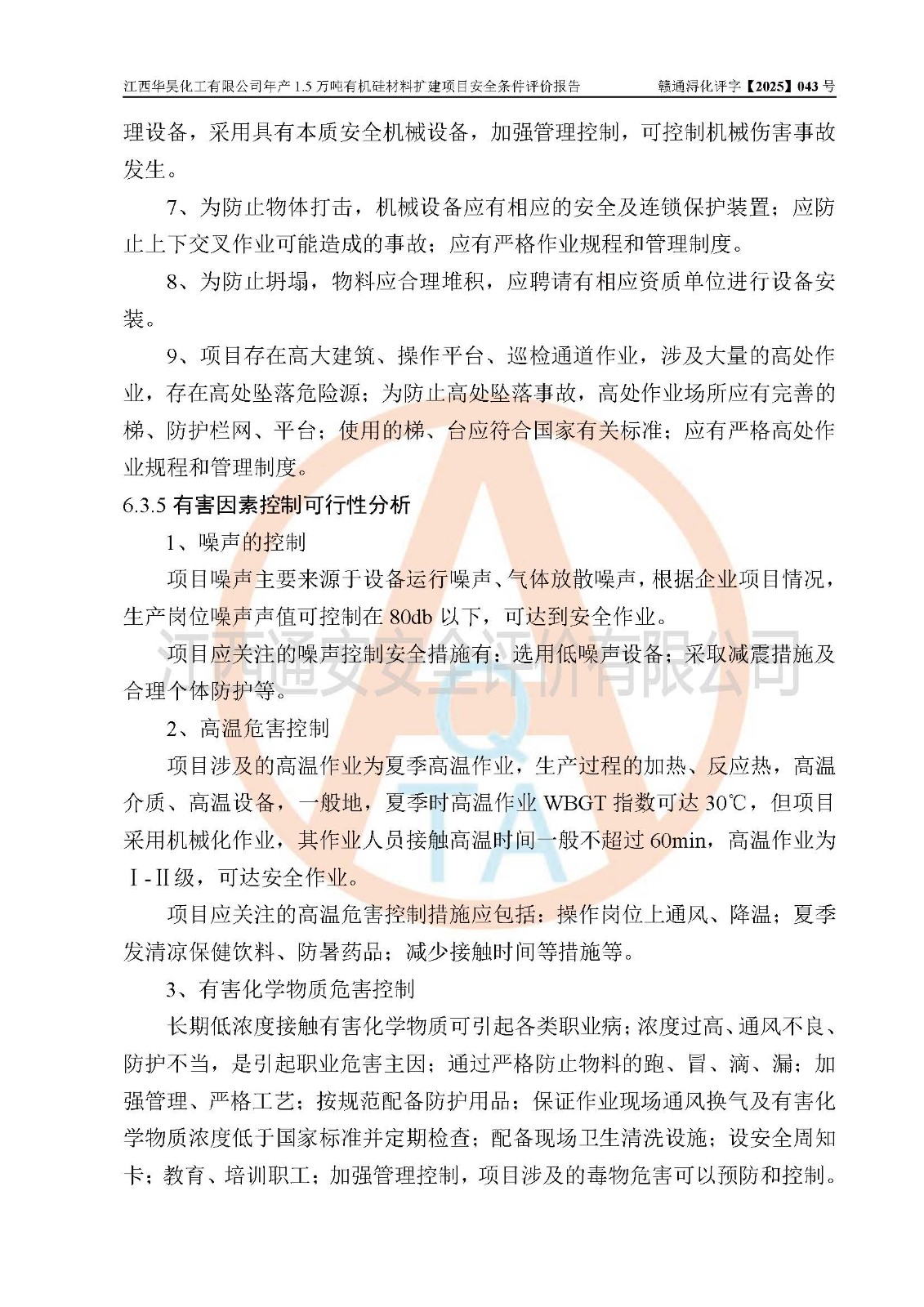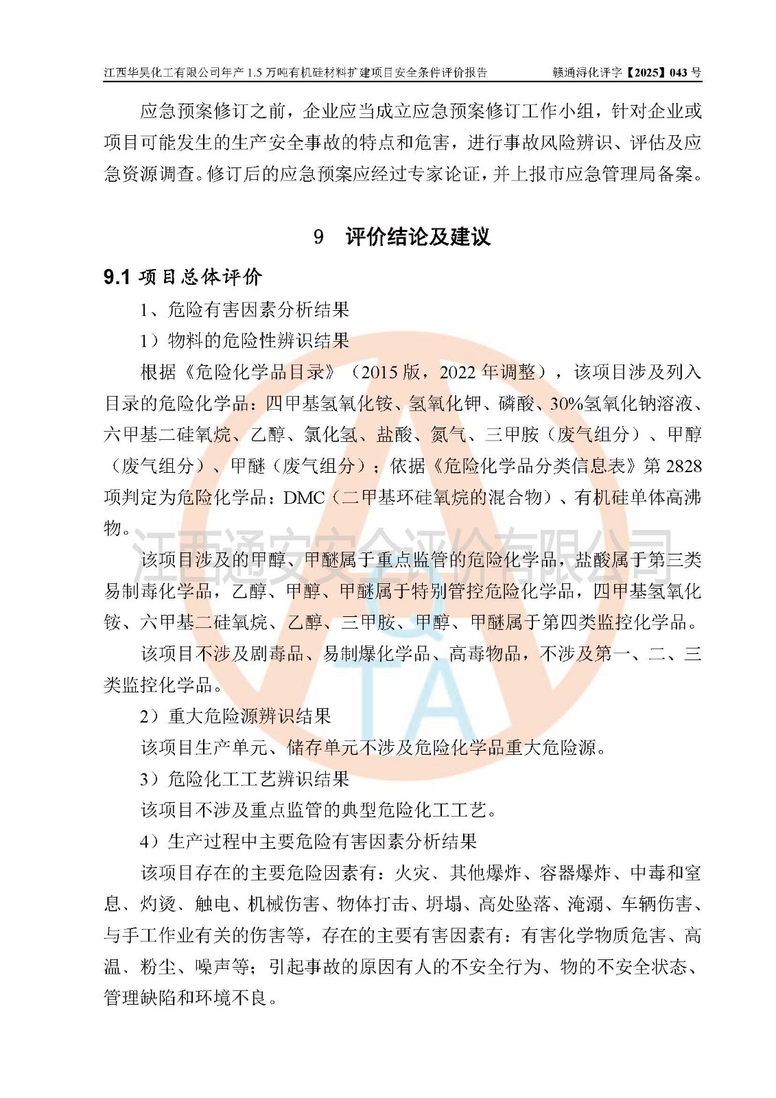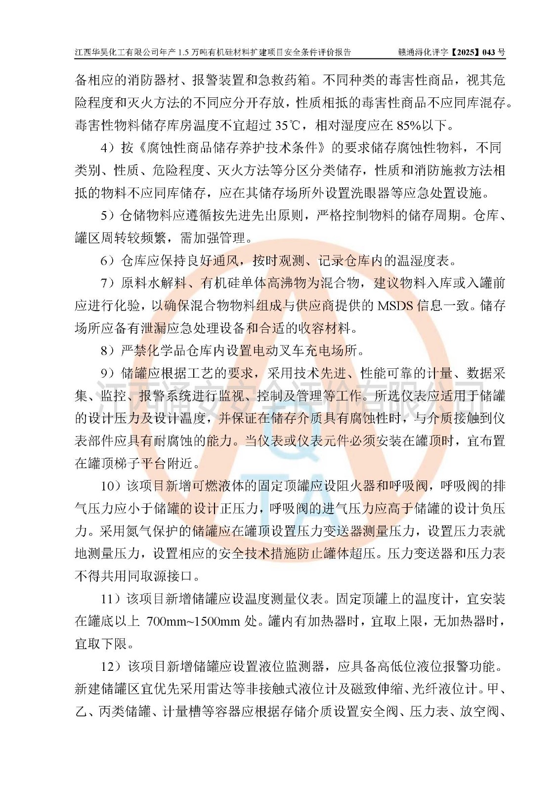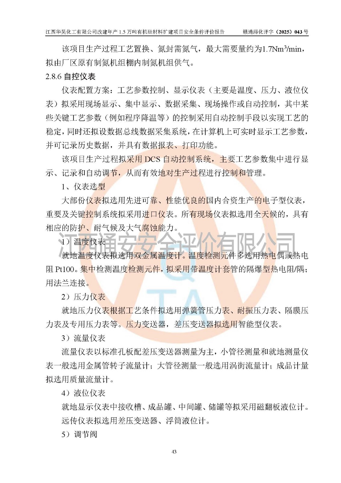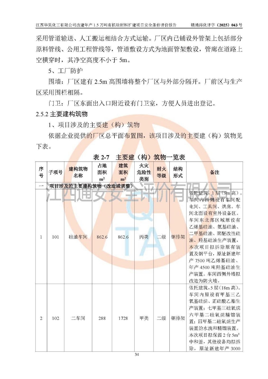 江西華昊化工有限公司是一家于2011年11月注冊成立的有限責任公司(自然人投資或控股),注冊地址位于永修縣云山經(jīng)濟開發(fā)區(qū)星火工業(yè)園星云大道旁,法定**人柴利兵,注冊資本1542萬元,經(jīng)營范圍包括許可項目和一般項目,許可項目為危險化學品生產(chǎn)、危險化學品經(jīng)營、貨物進出口、第二類醫(yī)療器械生產(chǎn),一般項目為合成材料制造(不含危險化學品)、合成材料銷售、第二類醫(yī)療器械銷售。 為滿足更大市場需求,同時解決企業(yè)原料及配套生產(chǎn)的需求,江西華昊化工有限公司擬投資5000萬元將廠區(qū)101硅油車間、102二車間原有項目改建為年產(chǎn)1.5萬噸有機硅材料擴建項目(以下簡稱“該項目”)。 該項目生產(chǎn)過程涉及的化學反應包括聚合(常壓)、水解、中和,涉及蒸餾、壓濾、流體輸送、熱交換、產(chǎn)品包裝等化工單元操作過程。該項目涉及的危險化學品包括四甲基氫氧化銨、氫氧化鉀、磷酸、30%氫氧化鈉溶液、六甲基二硅氧烷、乙醇、氯化氫、鹽酸、氮氣、DMC(二甲基環(huán)硅氧烷的混合物)、有機硅單體高沸物、**胺(廢氣組分)、甲醇(廢氣組分)、甲醚(廢氣組分),其中甲醇、甲醚屬于重點監(jiān)管的危險化學品,鹽酸屬于第三類易制毒化學品,乙醇、甲醇、甲醚屬于特別管控危險化學品,四甲基氫氧化銨、乙醇、**胺、甲醇、甲醚屬于第四類監(jiān)控化學品。該項目不涉及劇毒品、易制爆化學品、高毒物品,不涉及**、二、三類監(jiān)控化學品。 該項目不涉及重點監(jiān)管的典型危險化工工藝,生產(chǎn)單元、儲存單元不構成危險化學品重大危險源。 該項目副產(chǎn)品鹽酸、中間產(chǎn)品低粘度封頭劑(六甲基二硅氧烷)屬于危險化學品,該項目屬于危險化學品生產(chǎn)項目,依據(jù)《危險化學品生產(chǎn)企業(yè)安全生產(chǎn)許可證實施辦法》(**安全生產(chǎn)監(jiān)督管理總局令第41號,第79號、89號修改),項目需要辦理危險化學品安全生產(chǎn)許可證。 |