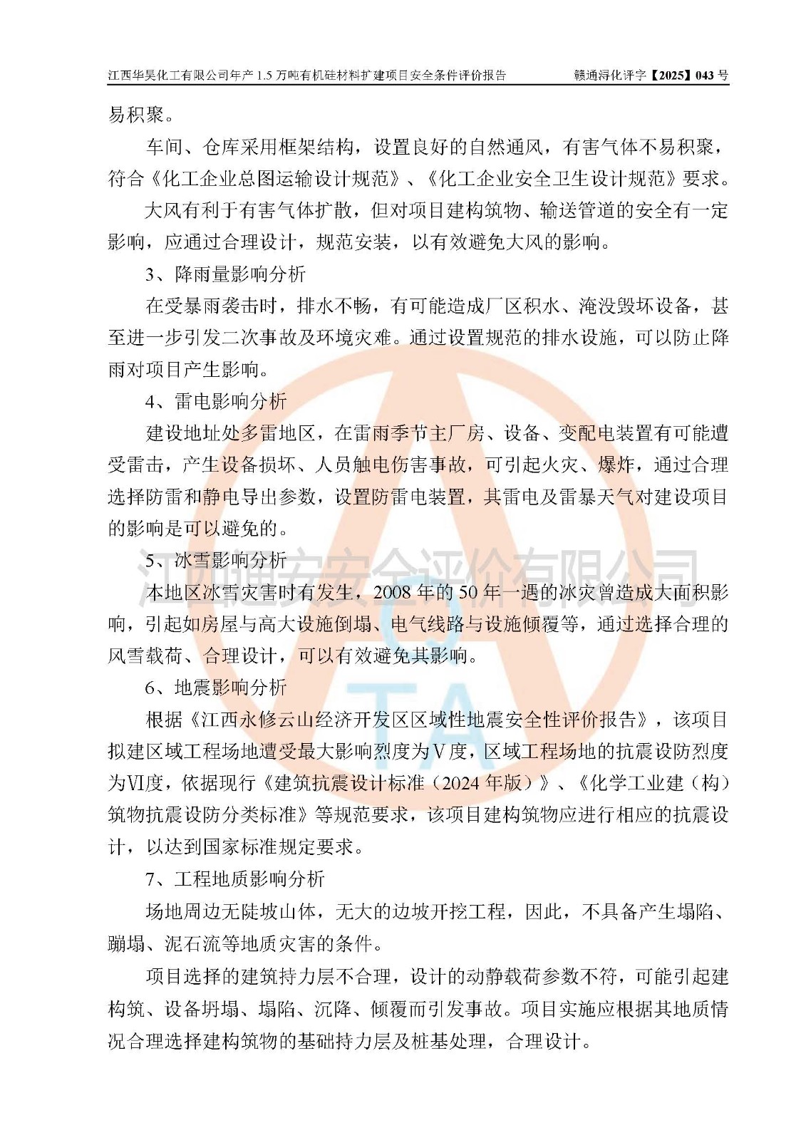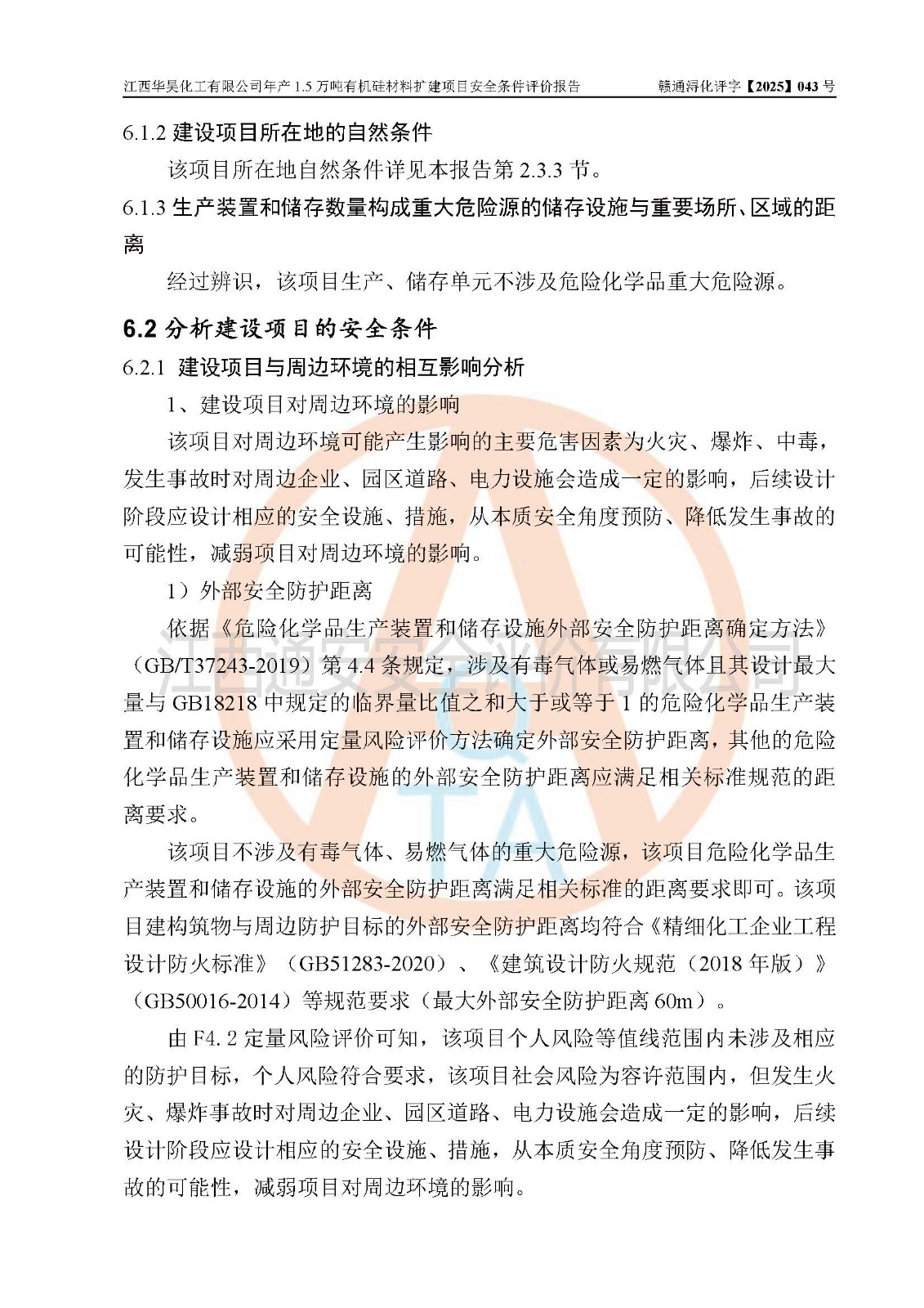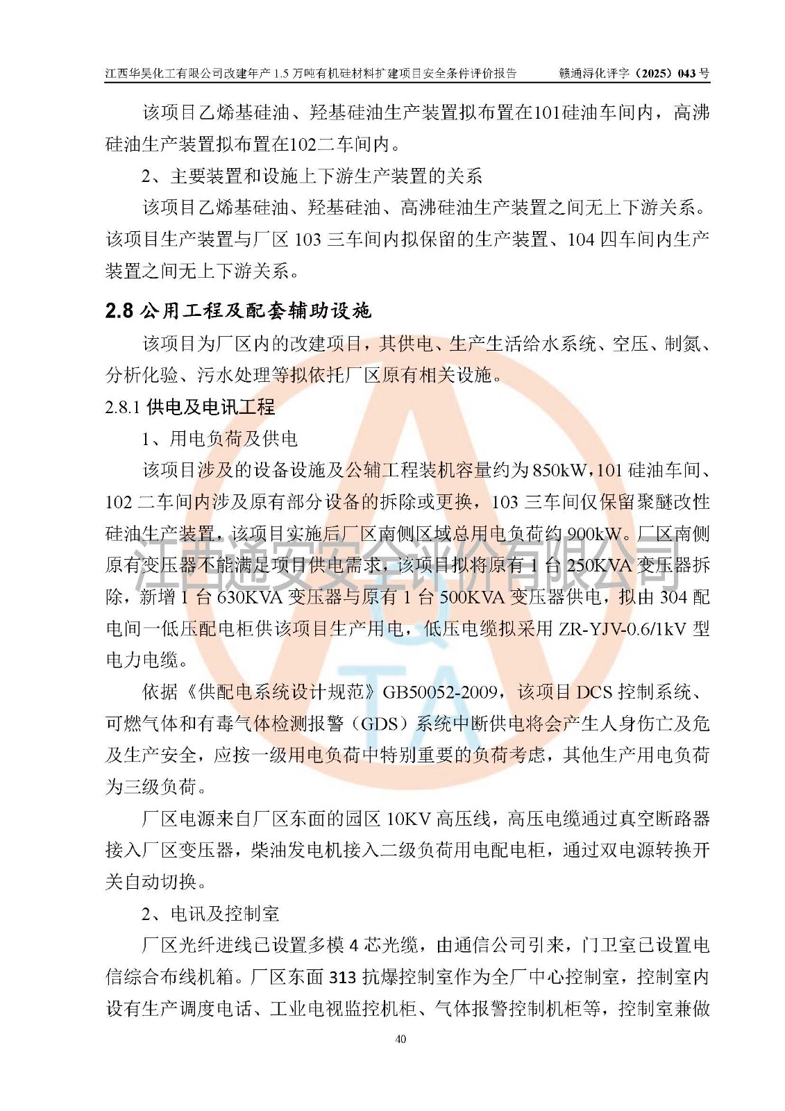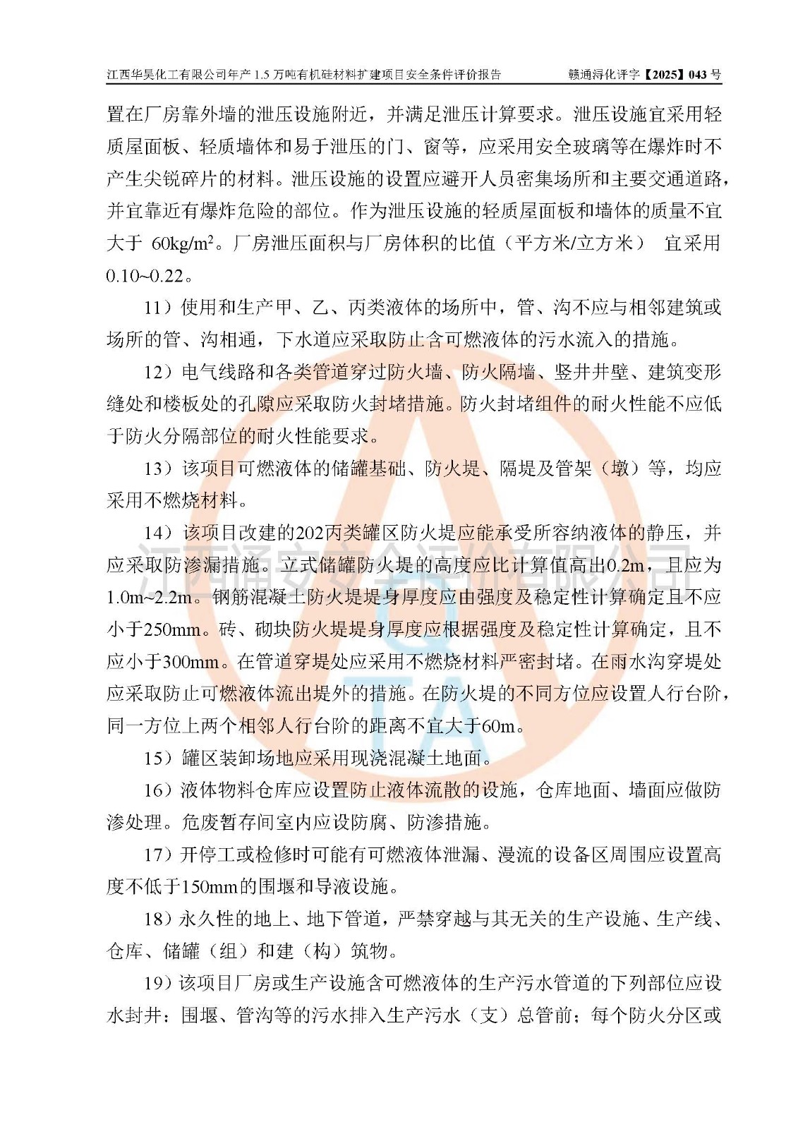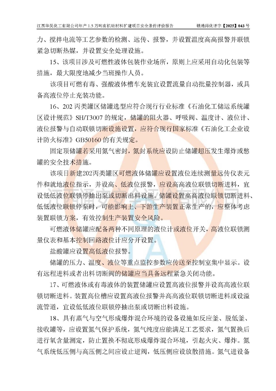 江西華昊化工有限公司是一家于2011年11月注冊成立的有限責任公司(自然人投資或控股),注冊地址位于永修縣云山經(jīng)濟開發(fā)區(qū)星火工業(yè)園星云大道旁,法定**人柴利兵,注冊資本1542萬元,經(jīng)營范圍包括許可項目和一般項目,許可項目為危險化學品生產(chǎn)、危險化學品經(jīng)營、貨物進出口、第二類醫(yī)療器械生產(chǎn),一般項目為合成材料制造(不含危險化學品)、合成材料銷售、第二類醫(yī)療器械銷售。 為滿足更大市場需求,同時解決企業(yè)原料及配套生產(chǎn)的需求,江西華昊化工有限公司擬投資5000萬元將廠區(qū)101硅油車間、102二車間原有項目改建為年產(chǎn)1.5萬噸有機硅材料擴建項目(以下簡稱“該項目”)。 該項目生產(chǎn)過程涉及的化學反應包括聚合(常壓)、水解、中和,涉及蒸餾、壓濾、流體輸送、熱交換、產(chǎn)品包裝等化工單元操作過程。該項目涉及的危險化學品包括四甲基氫氧化銨、氫氧化鉀、磷酸、30%氫氧化鈉溶液、六甲基二硅氧烷、乙醇、氯化氫、鹽酸、氮氣、DMC(二甲基環(huán)硅氧烷的混合物)、有機硅單體高沸物、**胺(廢氣組分)、甲醇(廢氣組分)、甲醚(廢氣組分),其中甲醇、甲醚屬于重點監(jiān)管的危險化學品,鹽酸屬于第三類易制毒化學品,乙醇、甲醇、甲醚屬于特別管控危險化學品,四甲基氫氧化銨、乙醇、**胺、甲醇、甲醚屬于第四類監(jiān)控化學品。該項目不涉及劇毒品、易制爆化學品、高毒物品,不涉及**、二、三類監(jiān)控化學品。 該項目不涉及重點監(jiān)管的典型危險化工工藝,生產(chǎn)單元、儲存單元不構成危險化學品重大危險源。 該項目副產(chǎn)品鹽酸、中間產(chǎn)品低粘度封頭劑(六甲基二硅氧烷)屬于危險化學品,該項目屬于危險化學品生產(chǎn)項目,依據(jù)《危險化學品生產(chǎn)企業(yè)安全生產(chǎn)許可證實施辦法》(**安全生產(chǎn)監(jiān)督管理總局令第41號,第79號、89號修改),項目需要辦理危險化學品安全生產(chǎn)許可證。 |