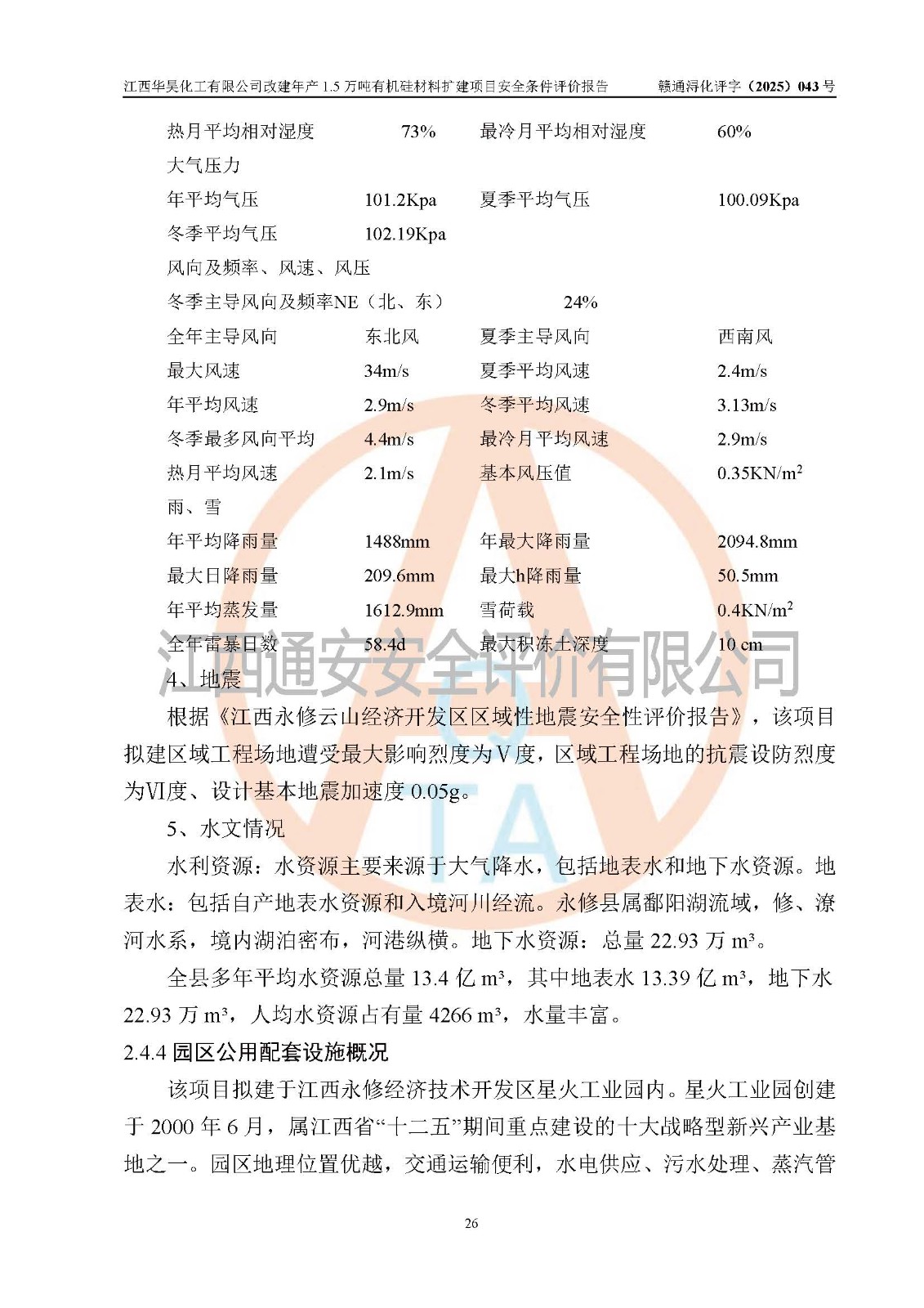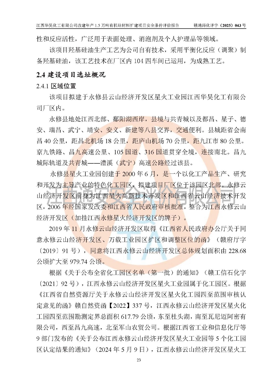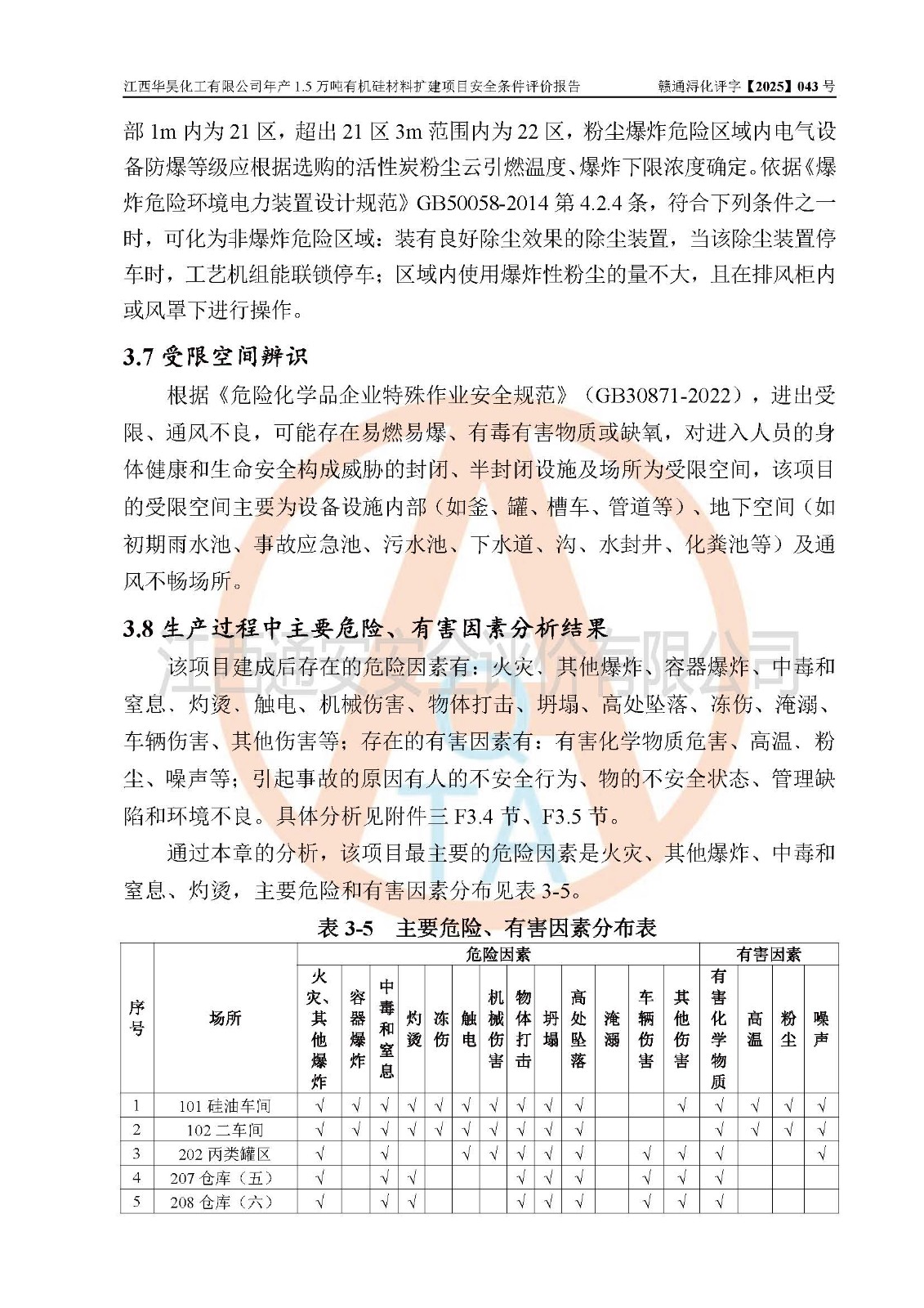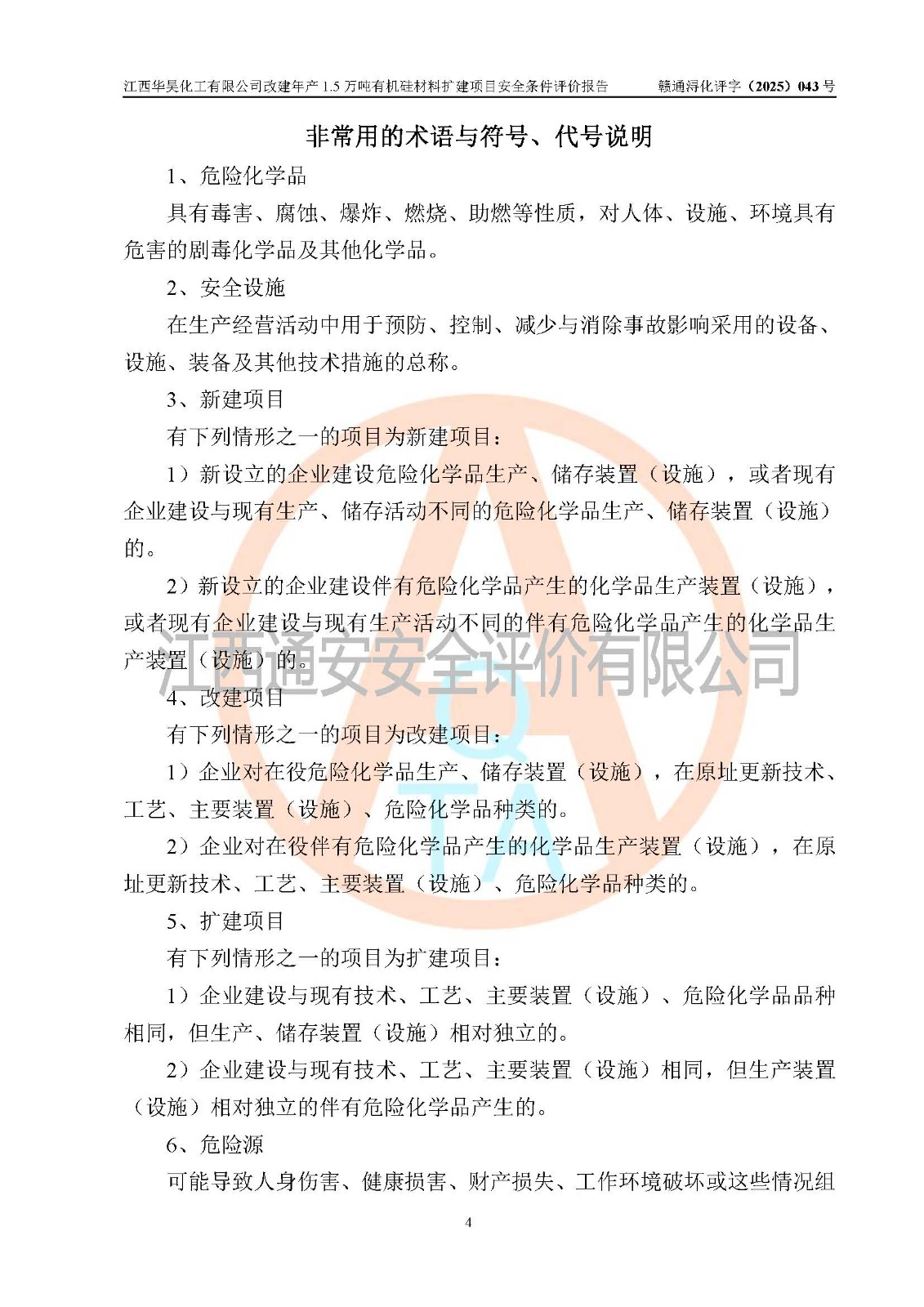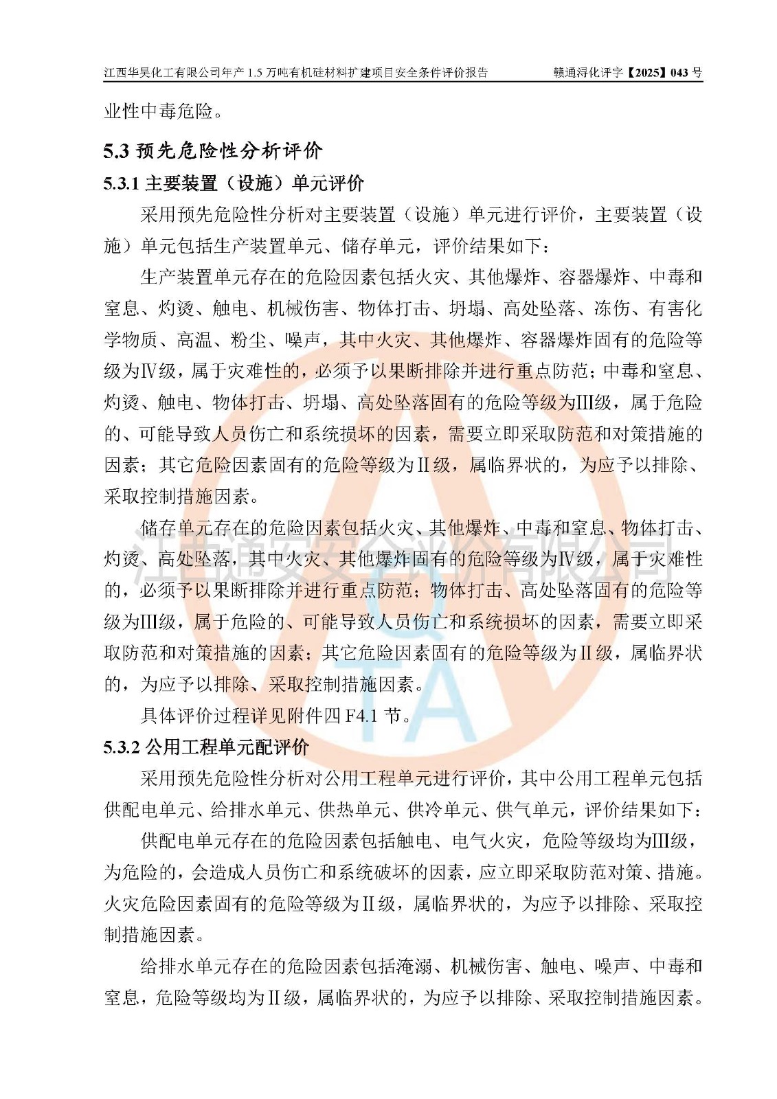 江西華昊化工有限公司是一家于2011年11月注冊成立的有限責任公司(自然人投資或控股),注冊地址位于永修縣云山經(jīng)濟開發(fā)區(qū)星火工業(yè)園星云大道旁,法定**人柴利兵,注冊資本1542萬元,經(jīng)營范圍包括許可項目和一般項目,許可項目為危險化學品生產(chǎn)、危險化學品經(jīng)營、貨物進出口、第二類醫(yī)療器械生產(chǎn),一般項目為合成材料制造(不含危險化學品)、合成材料銷售、第二類醫(yī)療器械銷售。 為滿足更大市場需求,同時解決企業(yè)原料及配套生產(chǎn)的需求,江西華昊化工有限公司擬投資5000萬元將廠區(qū)101硅油車間、102二車間原有項目改建為年產(chǎn)1.5萬噸有機硅材料擴建項目(以下簡稱“該項目”)。 該項目生產(chǎn)過程涉及的化學反應包括聚合(常壓)、水解、中和,涉及蒸餾、壓濾、流體輸送、熱交換、產(chǎn)品包裝等化工單元操作過程。該項目涉及的危險化學品包括四甲基氫氧化銨、氫氧化鉀、磷酸、30%氫氧化鈉溶液、六甲基二硅氧烷、乙醇、氯化氫、鹽酸、氮氣、DMC(二甲基環(huán)硅氧烷的混合物)、有機硅單體高沸物、**胺(廢氣組分)、甲醇(廢氣組分)、甲醚(廢氣組分),其中甲醇、甲醚屬于重點監(jiān)管的危險化學品,鹽酸屬于第三類易制毒化學品,乙醇、甲醇、甲醚屬于特別管控危險化學品,四甲基氫氧化銨、乙醇、**胺、甲醇、甲醚屬于第四類監(jiān)控化學品。該項目不涉及劇毒品、易制爆化學品、高毒物品,不涉及**、二、三類監(jiān)控化學品。 該項目不涉及重點監(jiān)管的典型危險化工工藝,生產(chǎn)單元、儲存單元不構成危險化學品重大危險源。 該項目副產(chǎn)品鹽酸、中間產(chǎn)品低粘度封頭劑(六甲基二硅氧烷)屬于危險化學品,該項目屬于危險化學品生產(chǎn)項目,依據(jù)《危險化學品生產(chǎn)企業(yè)安全生產(chǎn)許可證實施辦法》(**安全生產(chǎn)監(jiān)督管理總局令第41號,第79號、89號修改),項目需要辦理危險化學品安全生產(chǎn)許可證。 |