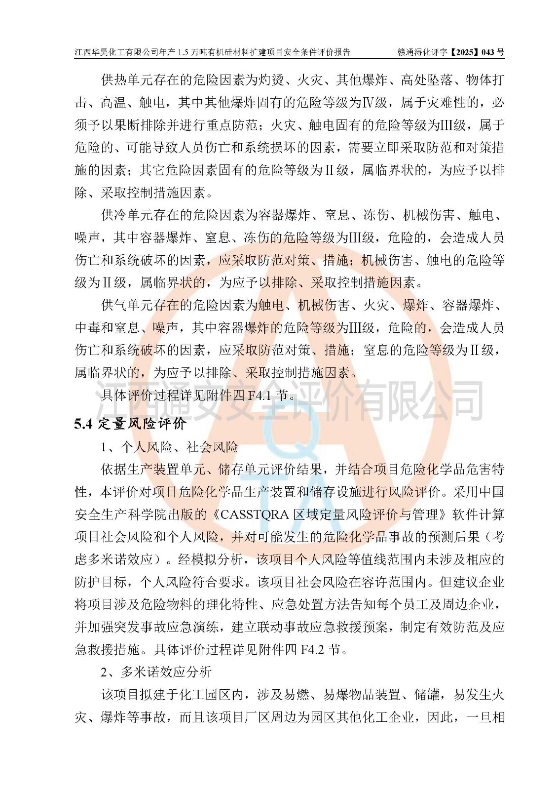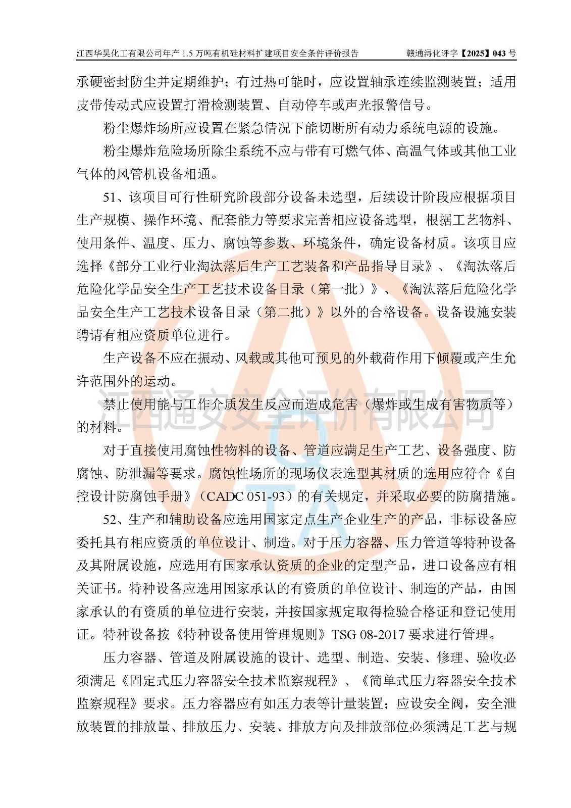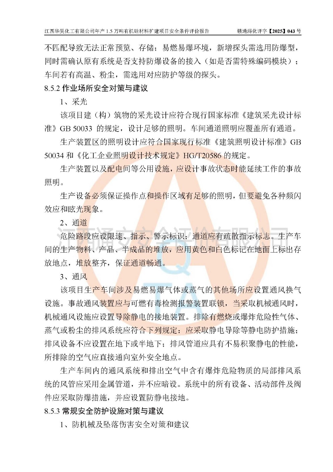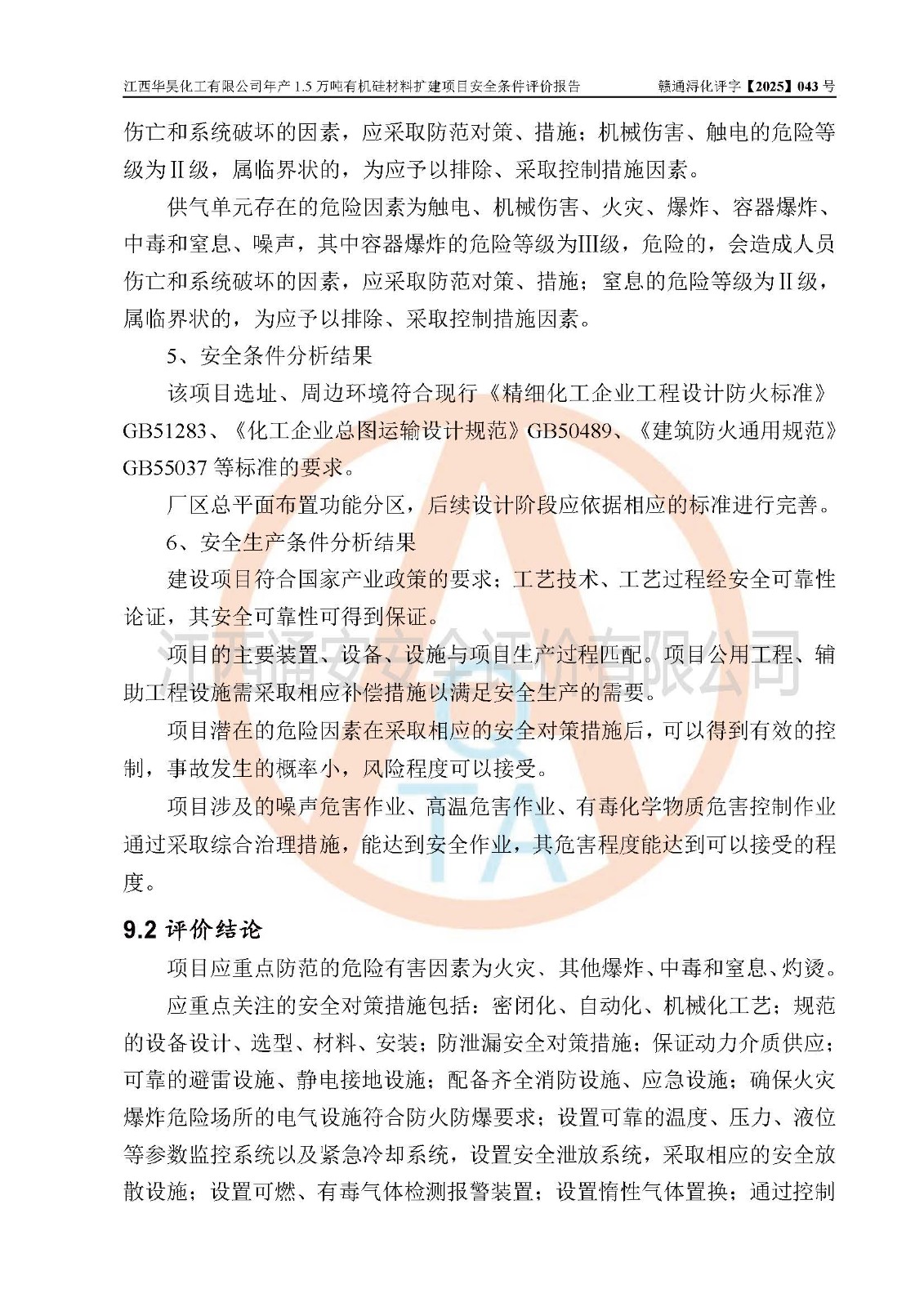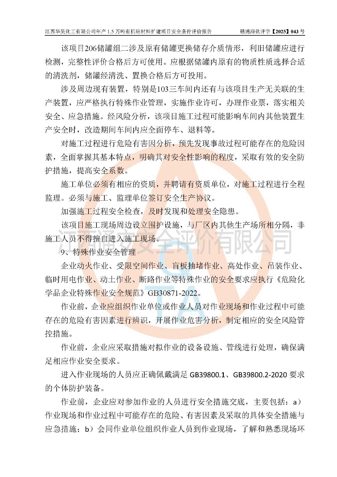 江西華昊化工有限公司是一家于2011年11月注冊成立的有限責任公司(自然人投資或控股),注冊地址位于永修縣云山經(jīng)濟開發(fā)區(qū)星火工業(yè)園星云大道旁,法定**人柴利兵,注冊資本1542萬元,經(jīng)營范圍包括許可項目和一般項目,許可項目為危險化學品生產(chǎn)、危險化學品經(jīng)營、貨物進出口、第二類醫(yī)療器械生產(chǎn),一般項目為合成材料制造(不含危險化學品)、合成材料銷售、第二類醫(yī)療器械銷售。 為滿足更大市場需求,同時解決企業(yè)原料及配套生產(chǎn)的需求,江西華昊化工有限公司擬投資5000萬元將廠區(qū)101硅油車間、102二車間原有項目改建為年產(chǎn)1.5萬噸有機硅材料擴建項目(以下簡稱“該項目”)。 該項目生產(chǎn)過程涉及的化學反應包括聚合(常壓)、水解、中和,涉及蒸餾、壓濾、流體輸送、熱交換、產(chǎn)品包裝等化工單元操作過程。該項目涉及的危險化學品包括四甲基氫氧化銨、氫氧化鉀、磷酸、30%氫氧化鈉溶液、六甲基二硅氧烷、乙醇、氯化氫、鹽酸、氮氣、DMC(二甲基環(huán)硅氧烷的混合物)、有機硅單體高沸物、**胺(廢氣組分)、甲醇(廢氣組分)、甲醚(廢氣組分),其中甲醇、甲醚屬于重點監(jiān)管的危險化學品,鹽酸屬于第三類易制毒化學品,乙醇、甲醇、甲醚屬于特別管控危險化學品,四甲基氫氧化銨、乙醇、**胺、甲醇、甲醚屬于第四類監(jiān)控化學品。該項目不涉及劇毒品、易制爆化學品、高毒物品,不涉及**、二、三類監(jiān)控化學品。 該項目不涉及重點監(jiān)管的典型危險化工工藝,生產(chǎn)單元、儲存單元不構成危險化學品重大危險源。 該項目副產(chǎn)品鹽酸、中間產(chǎn)品低粘度封頭劑(六甲基二硅氧烷)屬于危險化學品,該項目屬于危險化學品生產(chǎn)項目,依據(jù)《危險化學品生產(chǎn)企業(yè)安全生產(chǎn)許可證實施辦法》(**安全生產(chǎn)監(jiān)督管理總局令第41號,第79號、89號修改),項目需要辦理危險化學品安全生產(chǎn)許可證。 |