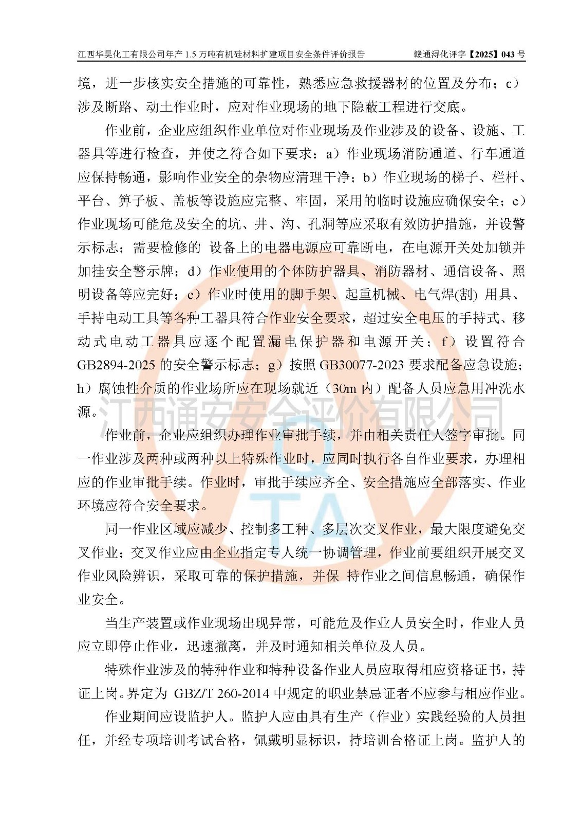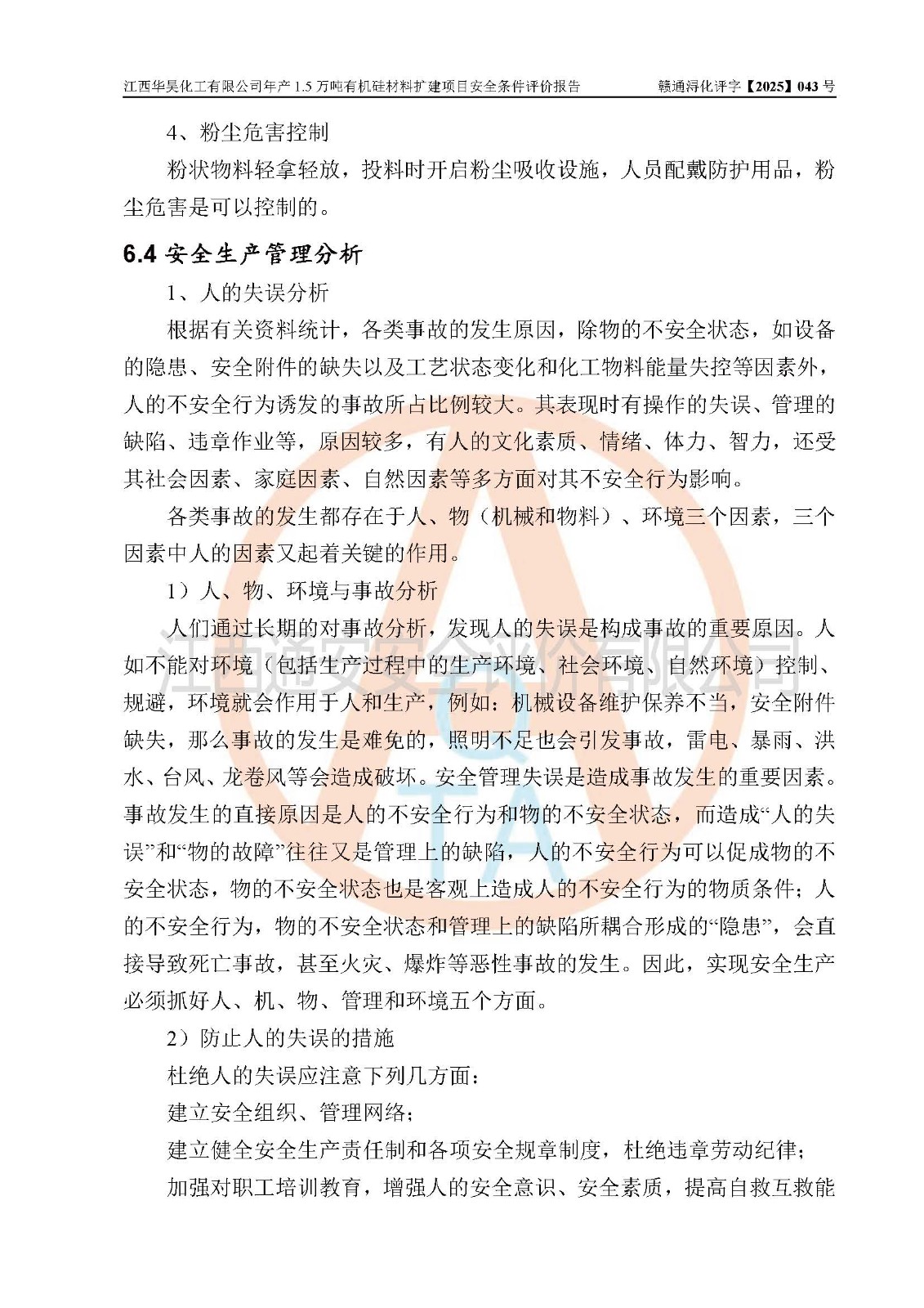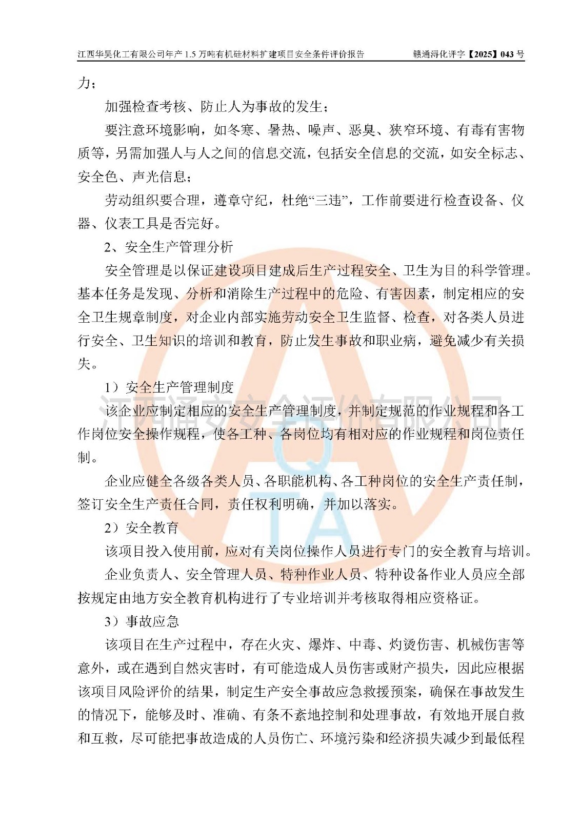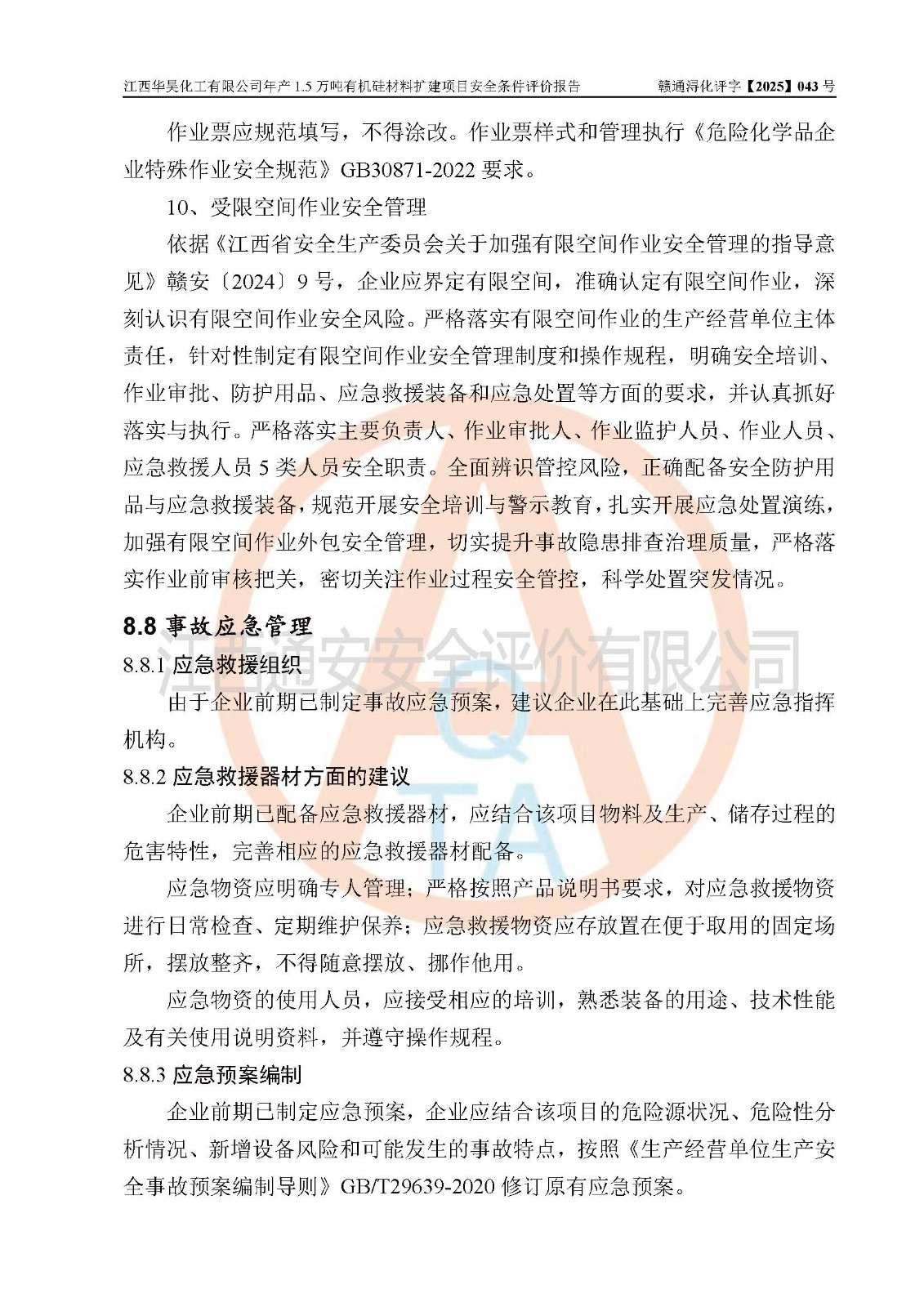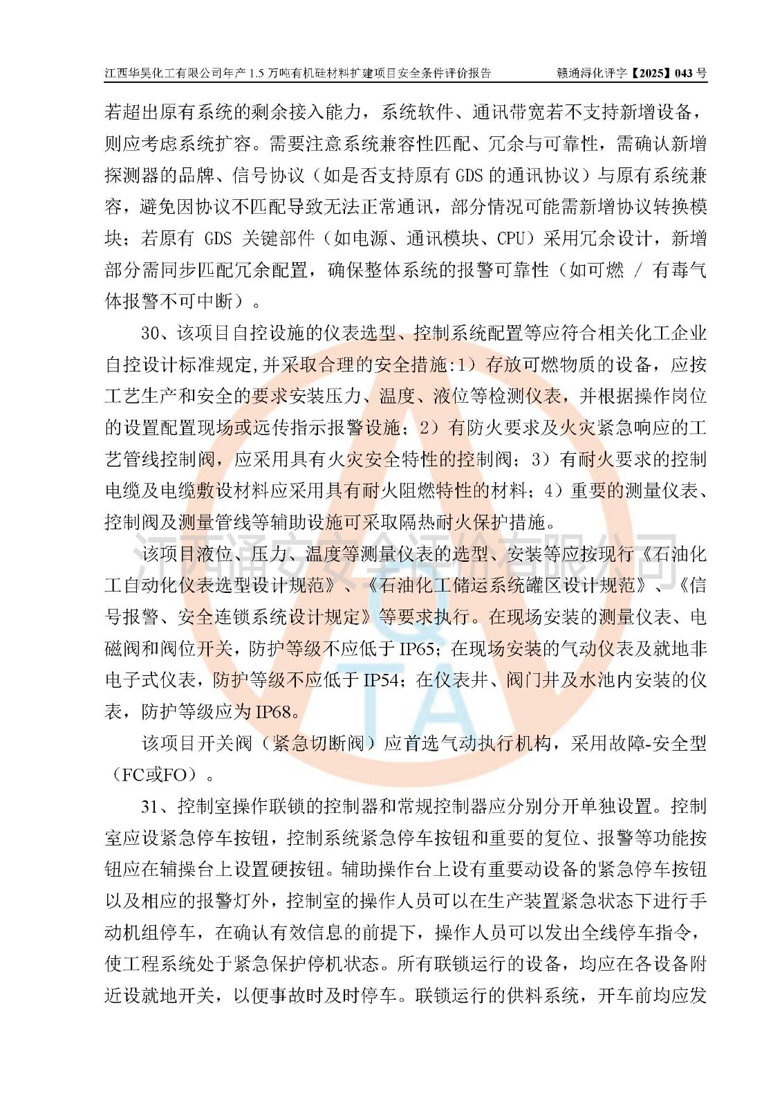 江西華昊化工有限公司是一家于2011年11月注冊成立的有限責任公司(自然人投資或控股),注冊地址位于永修縣云山經(jīng)濟開發(fā)區(qū)星火工業(yè)園星云大道旁,法定**人柴利兵,注冊資本1542萬元,經(jīng)營范圍包括許可項目和一般項目,許可項目為危險化學品生產(chǎn)、危險化學品經(jīng)營、貨物進出口、第二類醫(yī)療器械生產(chǎn),一般項目為合成材料制造(不含危險化學品)、合成材料銷售、第二類醫(yī)療器械銷售。 為滿足更大市場需求,同時解決企業(yè)原料及配套生產(chǎn)的需求,江西華昊化工有限公司擬投資5000萬元將廠區(qū)101硅油車間、102二車間原有項目改建為年產(chǎn)1.5萬噸有機硅材料擴建項目(以下簡稱“該項目”)。 該項目生產(chǎn)過程涉及的化學反應包括聚合(常壓)、水解、中和,涉及蒸餾、壓濾、流體輸送、熱交換、產(chǎn)品包裝等化工單元操作過程。該項目涉及的危險化學品包括四甲基氫氧化銨、氫氧化鉀、磷酸、30%氫氧化鈉溶液、六甲基二硅氧烷、乙醇、氯化氫、鹽酸、氮氣、DMC(二甲基環(huán)硅氧烷的混合物)、有機硅單體高沸物、**胺(廢氣組分)、甲醇(廢氣組分)、甲醚(廢氣組分),其中甲醇、甲醚屬于重點監(jiān)管的危險化學品,鹽酸屬于第三類易制毒化學品,乙醇、甲醇、甲醚屬于特別管控危險化學品,四甲基氫氧化銨、乙醇、**胺、甲醇、甲醚屬于第四類監(jiān)控化學品。該項目不涉及劇毒品、易制爆化學品、高毒物品,不涉及**、二、三類監(jiān)控化學品。 該項目不涉及重點監(jiān)管的典型危險化工工藝,生產(chǎn)單元、儲存單元不構成危險化學品重大危險源。 該項目副產(chǎn)品鹽酸、中間產(chǎn)品低粘度封頭劑(六甲基二硅氧烷)屬于危險化學品,該項目屬于危險化學品生產(chǎn)項目,依據(jù)《危險化學品生產(chǎn)企業(yè)安全生產(chǎn)許可證實施辦法》(**安全生產(chǎn)監(jiān)督管理總局令第41號,第79號、89號修改),項目需要辦理危險化學品安全生產(chǎn)許可證。 |
