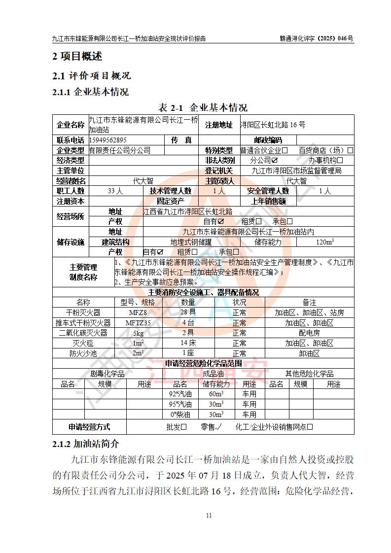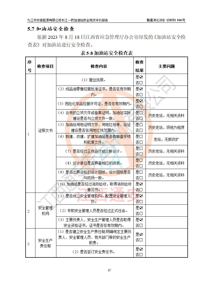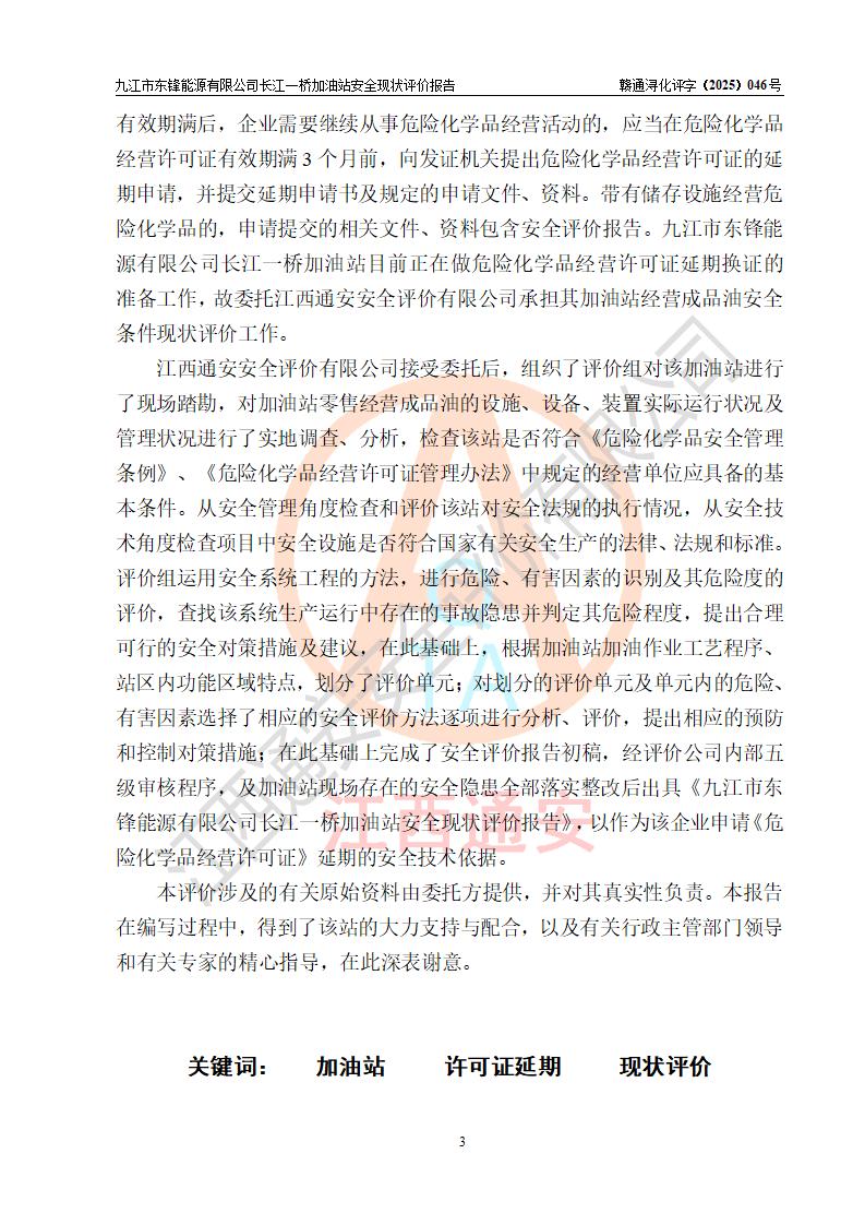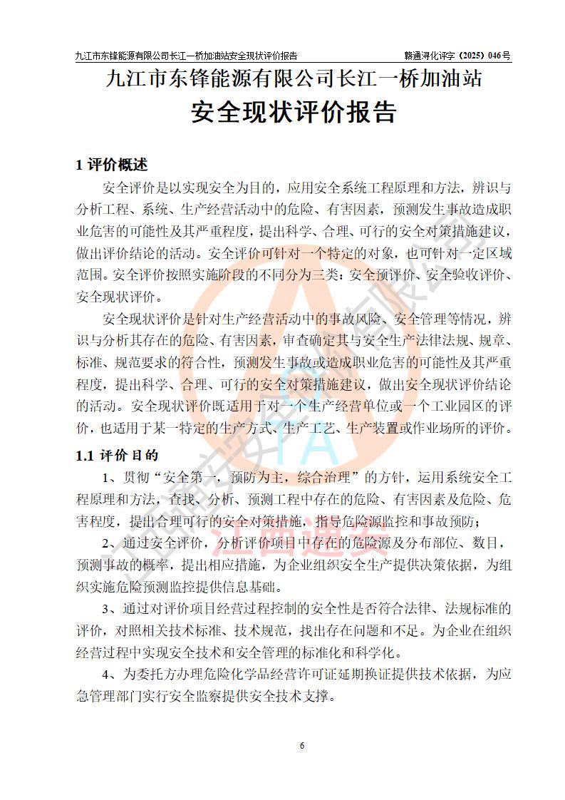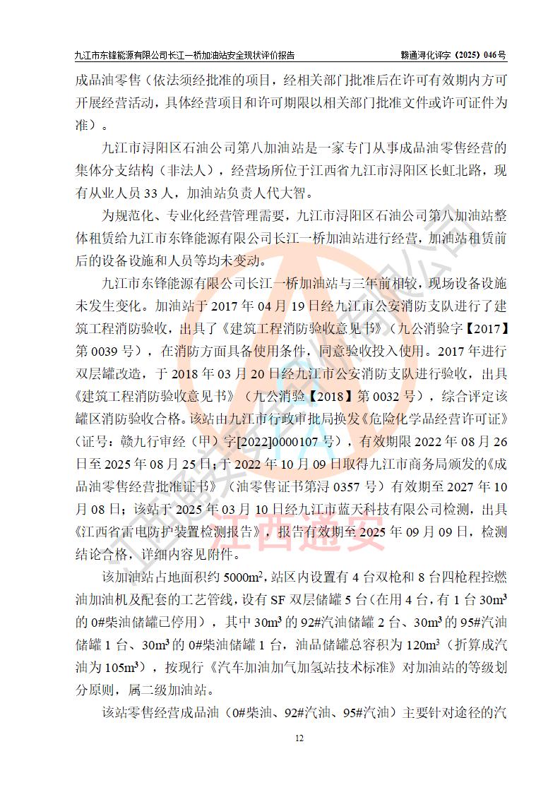 評價(jià)報(bào)告名稱 | 九江市東鋒能源有限公司長江一橋加油站安全現(xiàn)狀評價(jià)報(bào)告 | |||