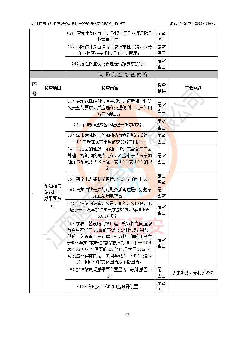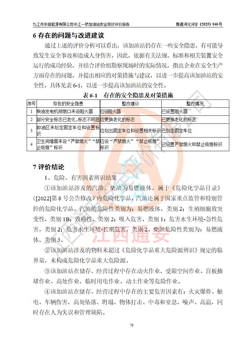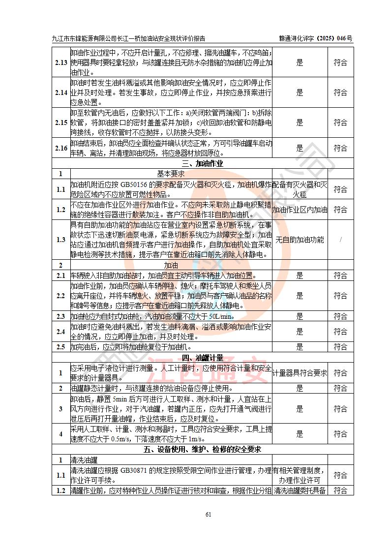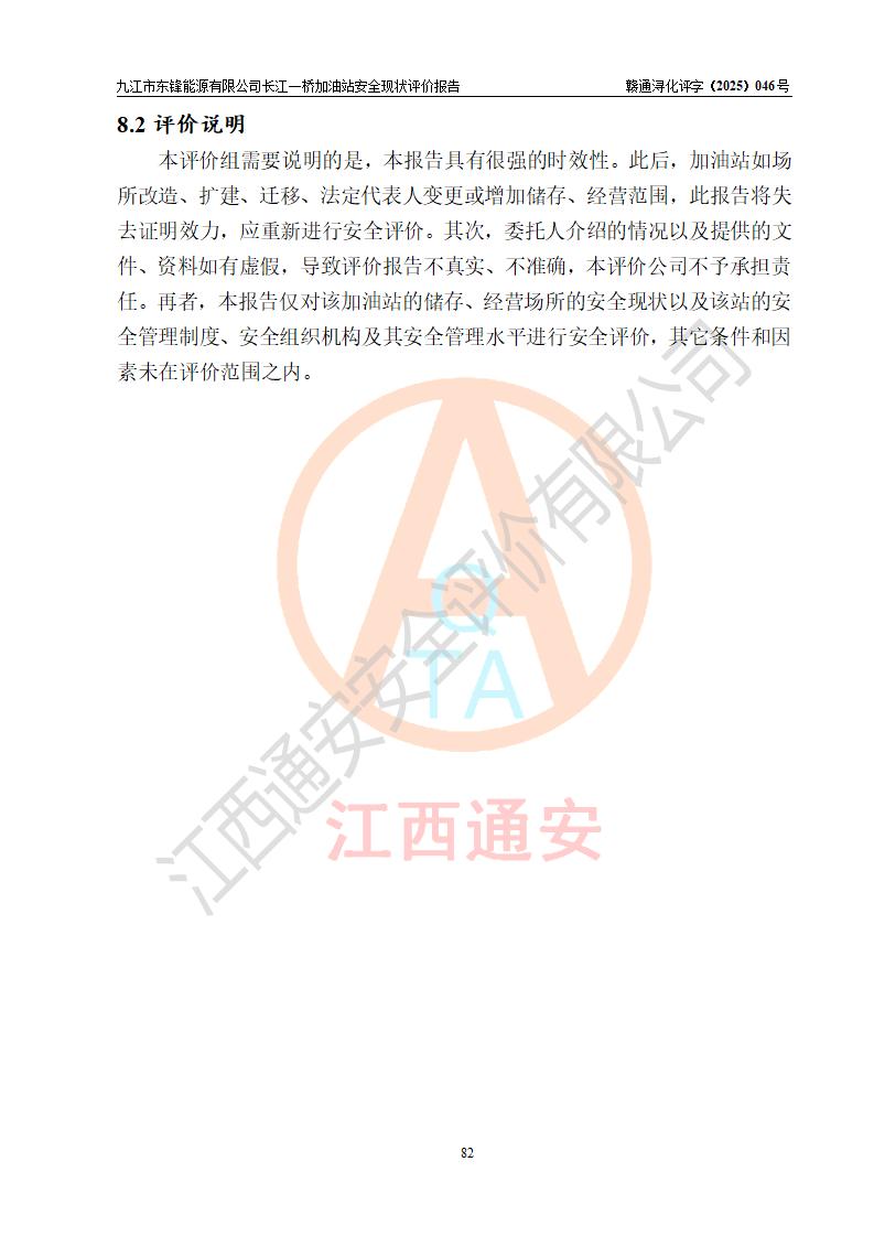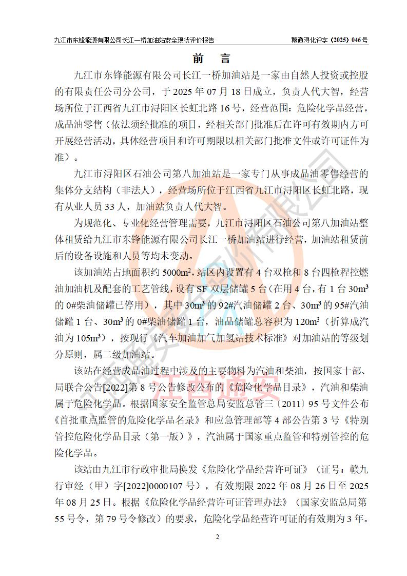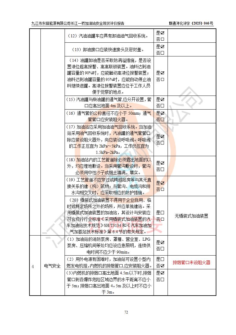 評價(jià)報(bào)告名稱 | 九江市東鋒能源有限公司長江一橋加油站安全現(xiàn)狀評價(jià)報(bào)告 | |||