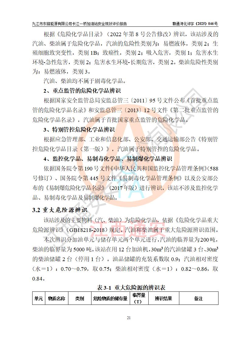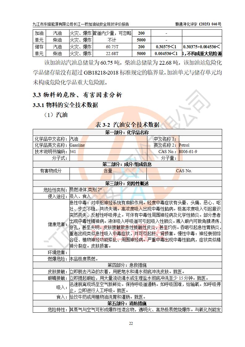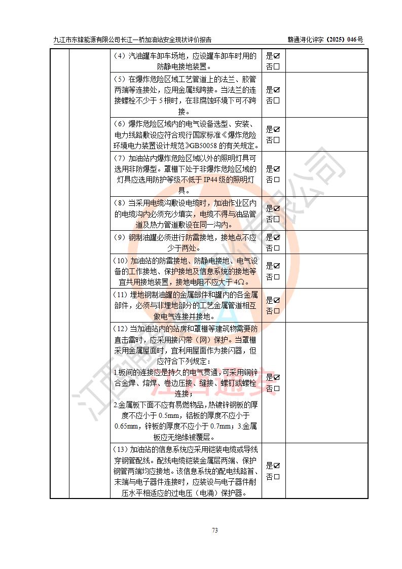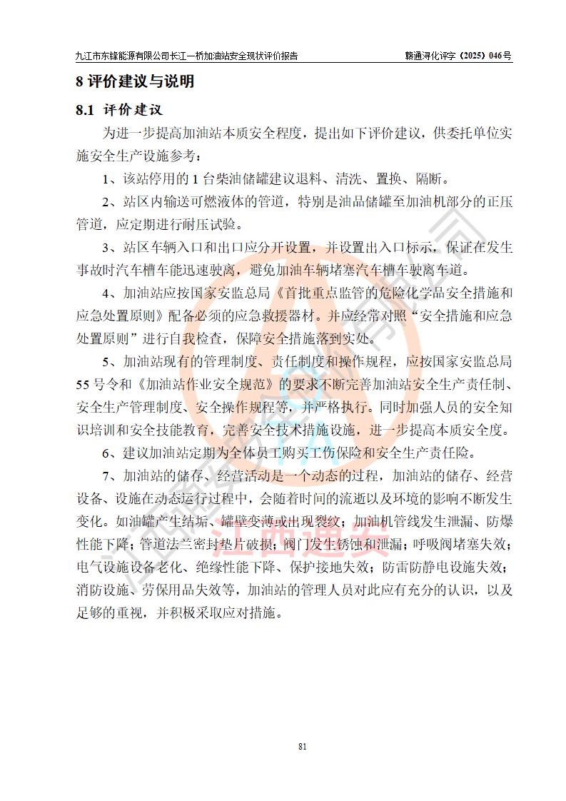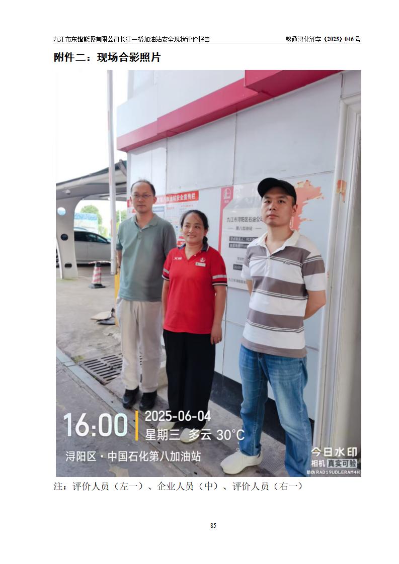 評價(jià)報(bào)告名稱 | 九江市東鋒能源有限公司長江一橋加油站安全現(xiàn)狀評價(jià)報(bào)告 | |||