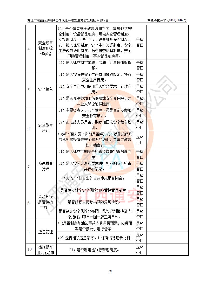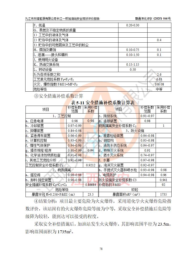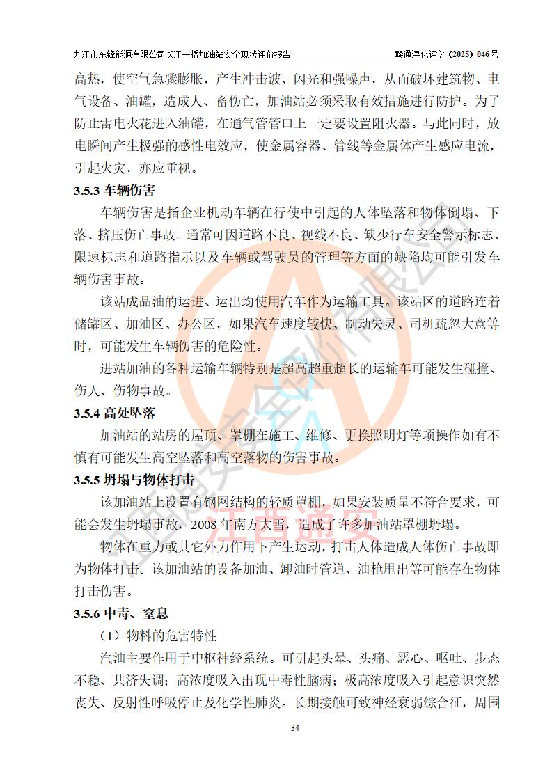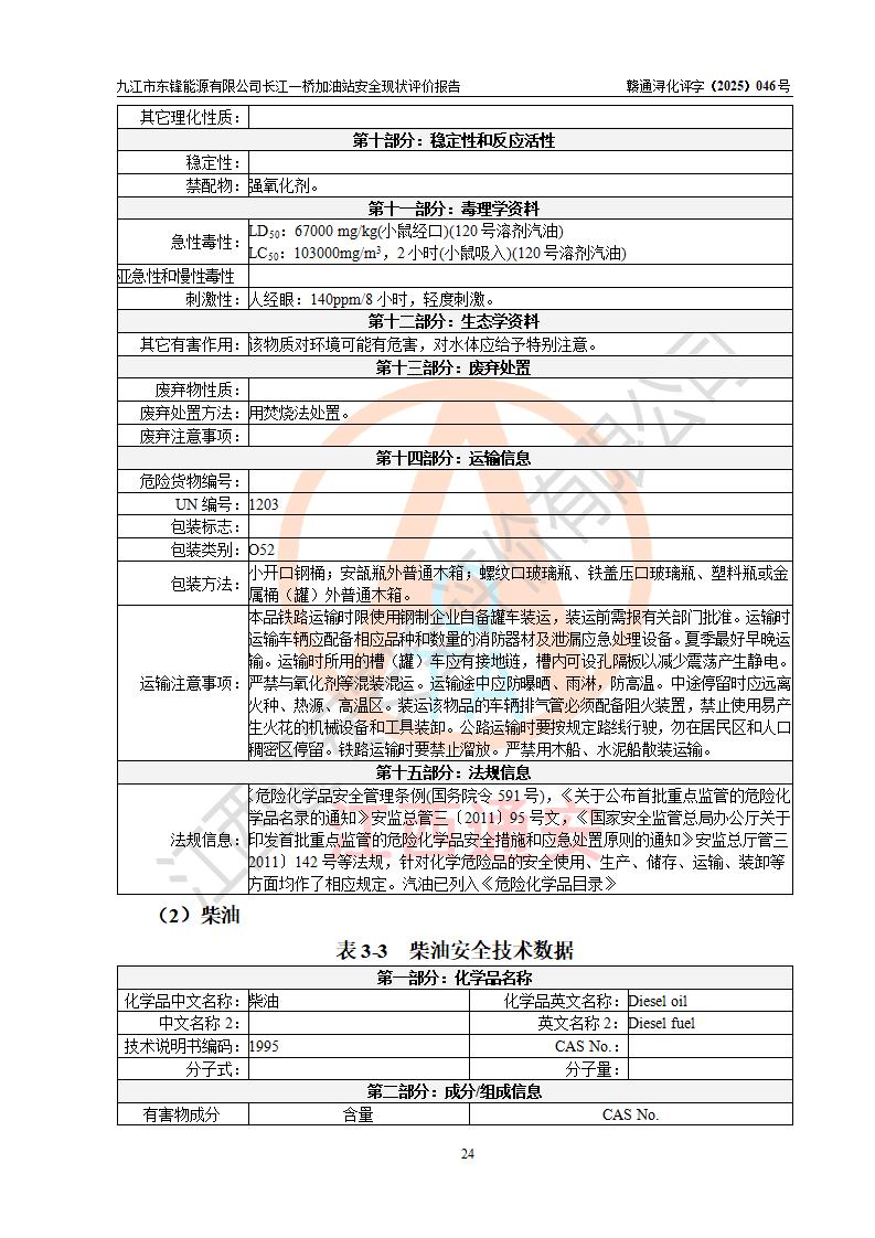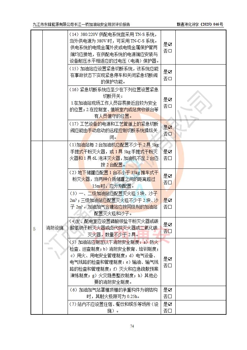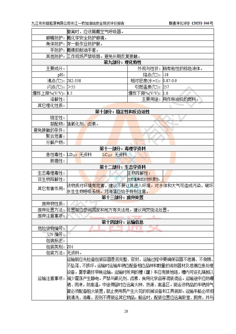 評價(jià)結(jié)論 | 九江市東鋒能源有限公司長江一橋加油站涉及的安全條件、安全經(jīng)營條件、安全生產(chǎn)管理符合《危險(xiǎn)化學(xué)品經(jīng)營許可證管理辦法》、《汽車加油加氣加氫站技術(shù)標(biāo)準(zhǔn)》等**有關(guān)法規(guī)、標(biāo)準(zhǔn)、規(guī)范要求,能滿足危險(xiǎn)化學(xué)品經(jīng)營安全條件。 | |||