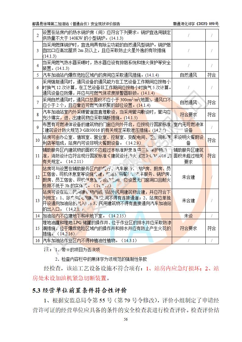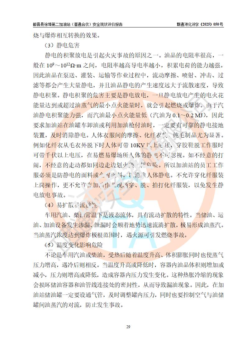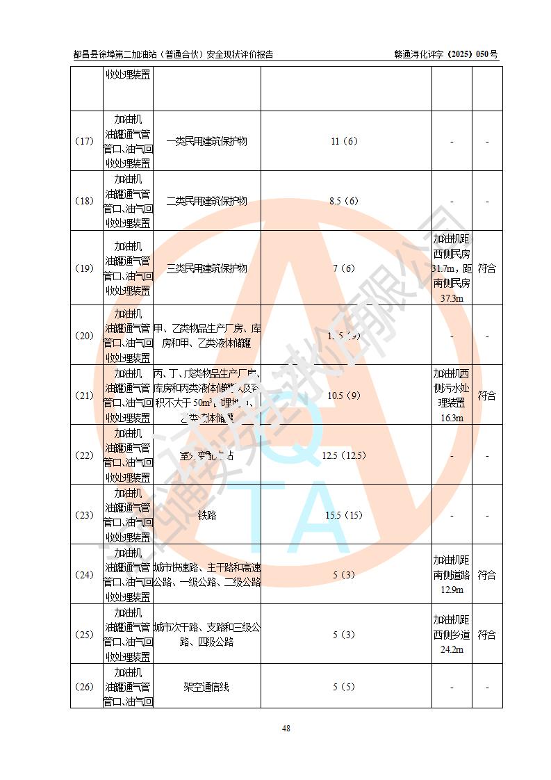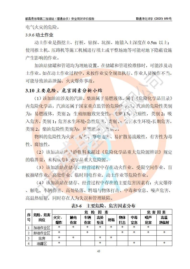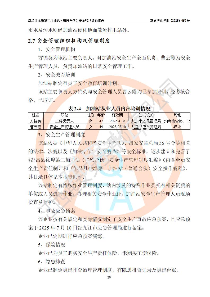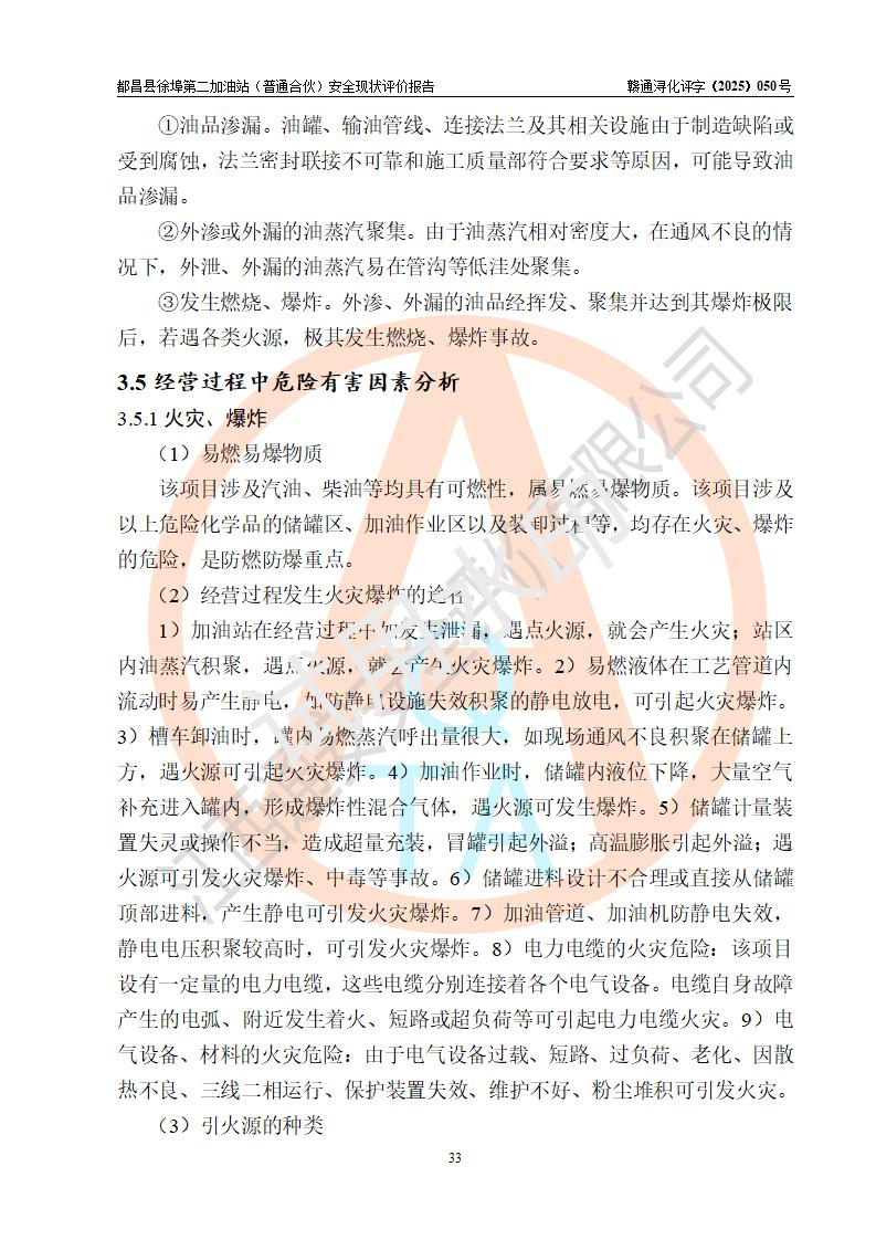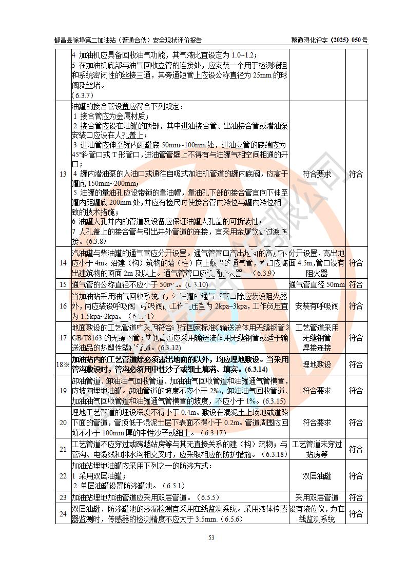 都昌縣徐埠第二加油站(普通合伙)是一家專門從事成品油零售經(jīng)營的普通合伙企業(yè),執(zhí)行事務(wù)合伙人:曹建平,經(jīng)營場所位于江西省九江市都昌縣徐埠鎮(zhèn)徐埠村委會上街七組。該加油站現(xiàn)有從業(yè)人員6人,其中安全管理人員1人,主要負(fù)責(zé)人方錦英。 該加油站站區(qū)占地面積2100m2,站區(qū)內(nèi)設(shè)置有3臺雙槍程控燃油加油機(jī)、1臺單槍程控燃油加油機(jī)及配套的工藝管線、30m3雙層0#柴油儲罐1臺、30m3雙層92#汽油儲罐2臺、30m3雙層95#汽油儲罐1臺,油品儲罐總?cè)莘e為120m3(折算成汽油為105m3)。按現(xiàn)行《汽車加油加氣加氫站技術(shù)標(biāo)準(zhǔn)》對加油站的等級劃分原則,該站屬于二級加油站。 該站由九江市行政審批局換發(fā)《危險化學(xué)品經(jīng)營許可證》(證號:贛九行審經(jīng)(甲)字[2022]000171號),**期限2022年10月18日至2025年10月17日。 |