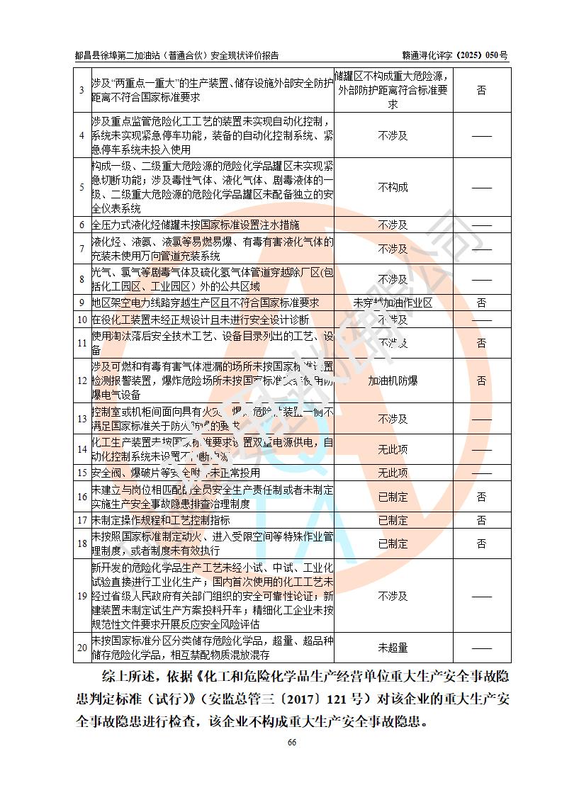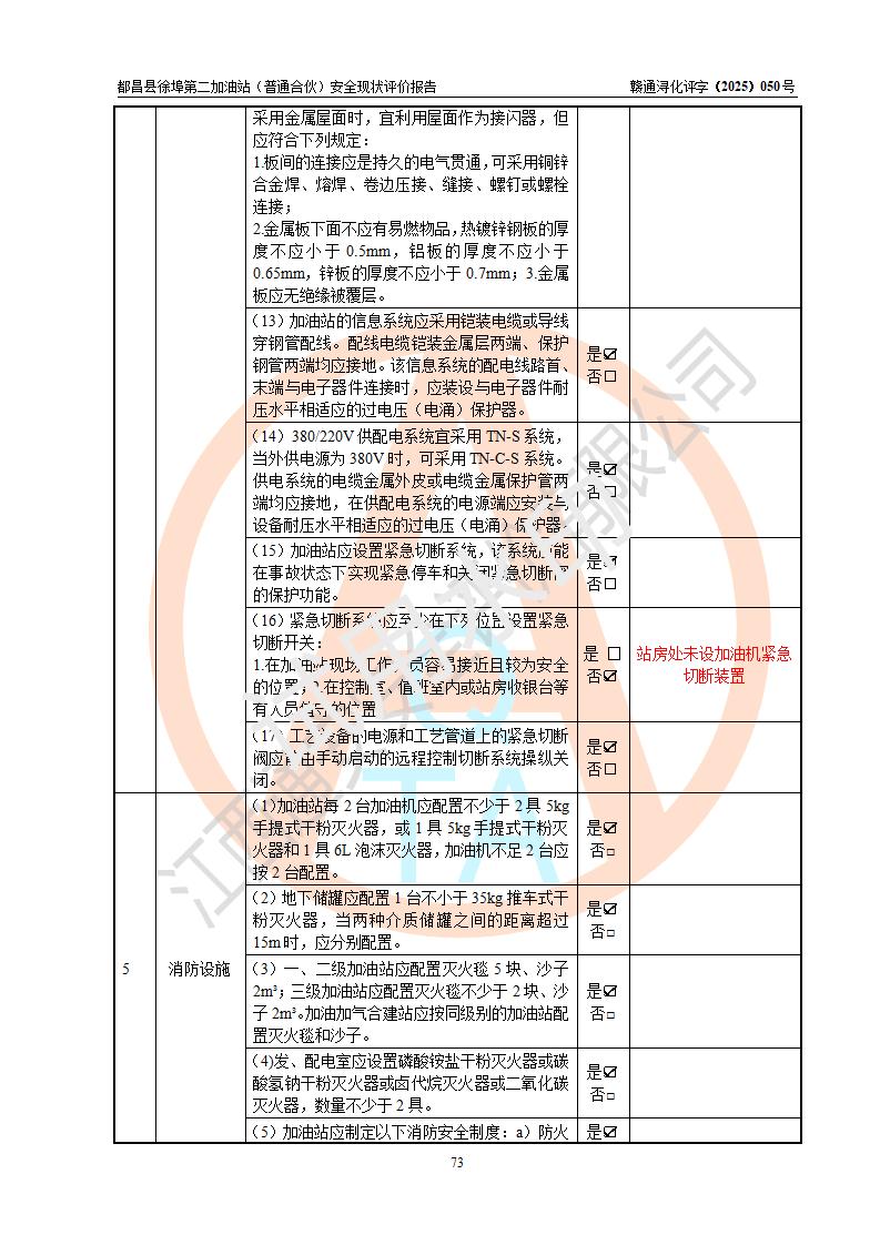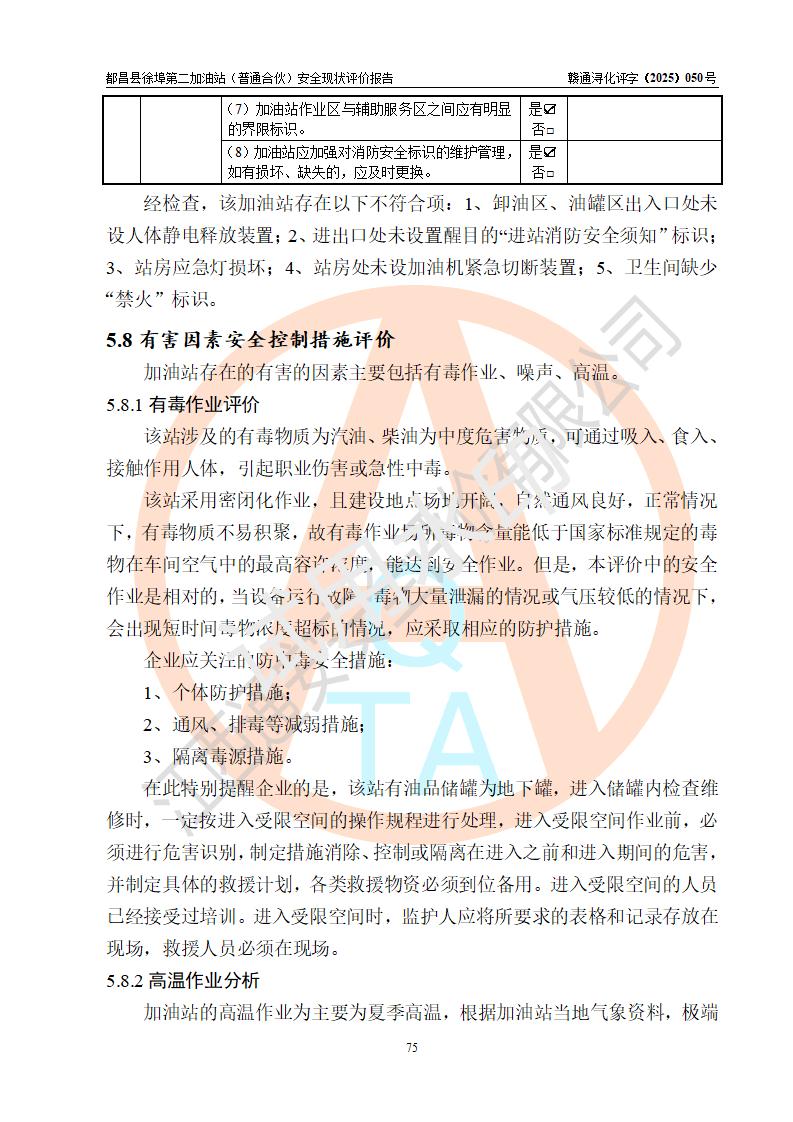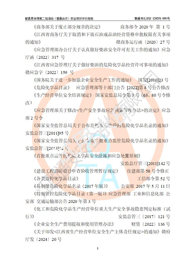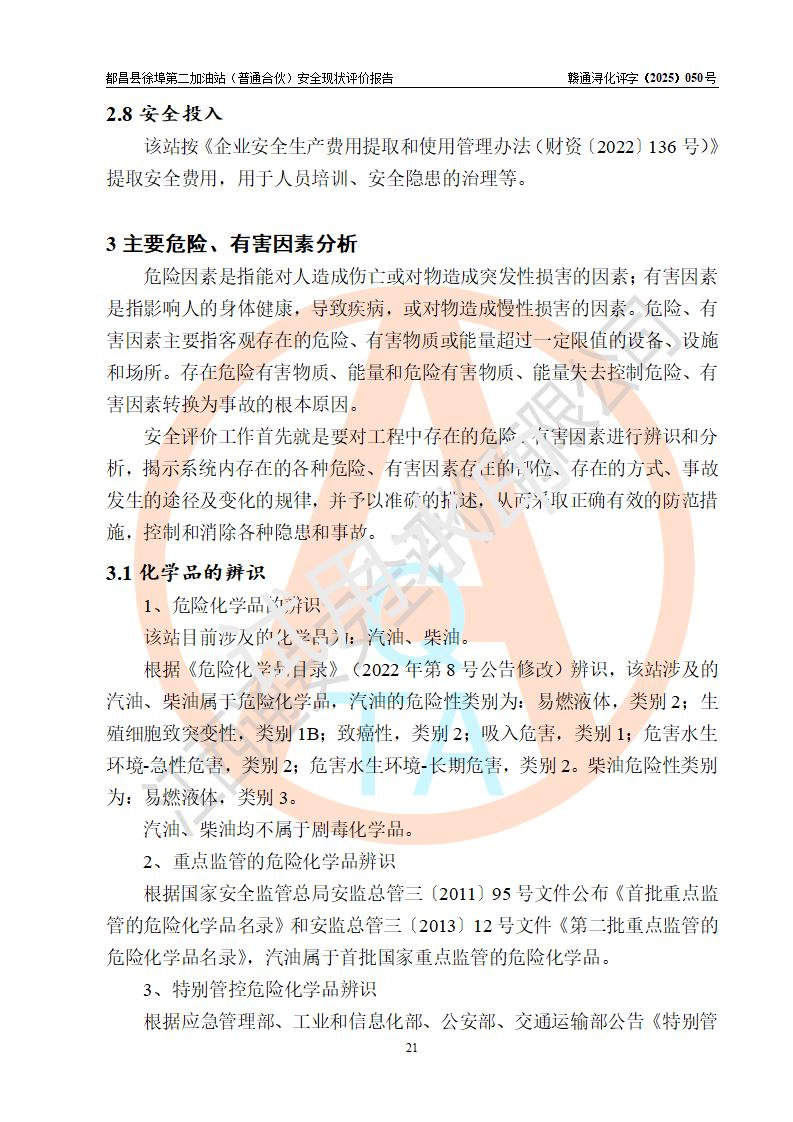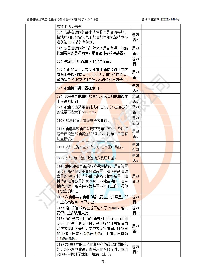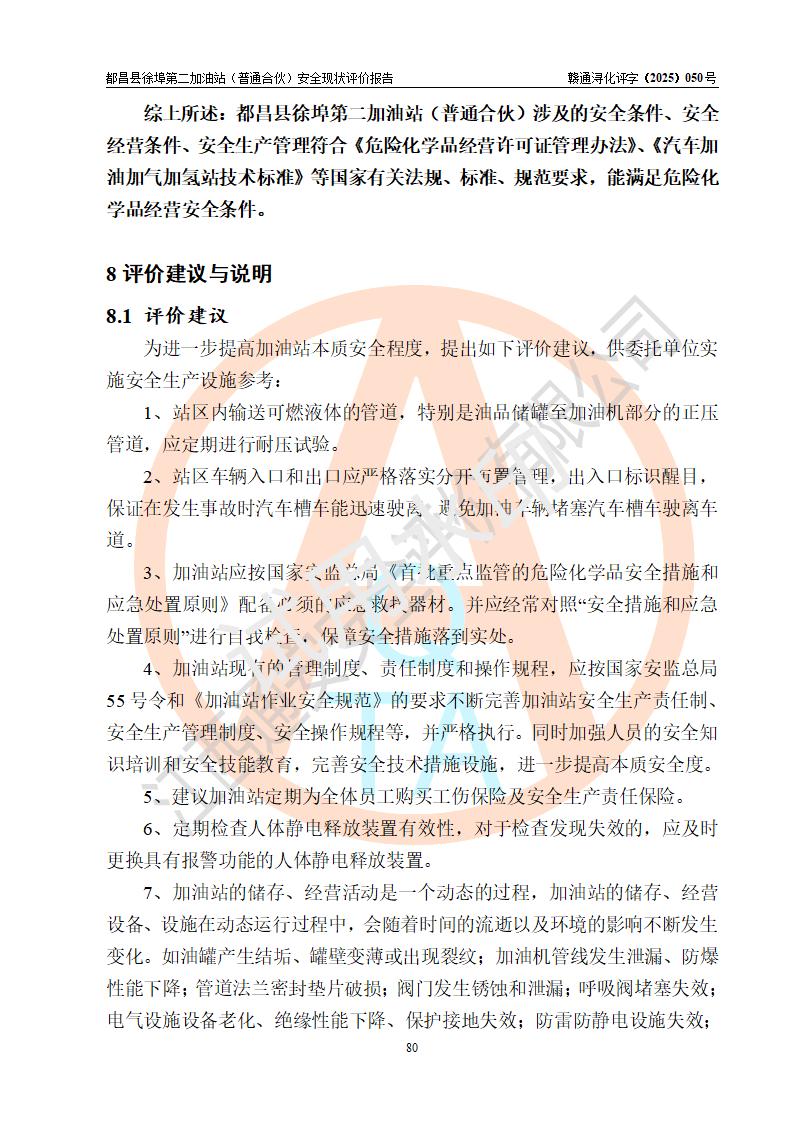 都昌縣徐埠第二加油站(普通合伙)是一家專門從事成品油零售經(jīng)營的普通合伙企業(yè),執(zhí)行事務(wù)合伙人:曹建平,經(jīng)營場所位于江西省九江市都昌縣徐埠鎮(zhèn)徐埠村委會上街七組。該加油站現(xiàn)有從業(yè)人員6人,其中安全管理人員1人,主要負(fù)責(zé)人方錦英。 該加油站站區(qū)占地面積2100m2,站區(qū)內(nèi)設(shè)置有3臺雙槍程控燃油加油機(jī)、1臺單槍程控燃油加油機(jī)及配套的工藝管線、30m3雙層0#柴油儲罐1臺、30m3雙層92#汽油儲罐2臺、30m3雙層95#汽油儲罐1臺,油品儲罐總?cè)莘e為120m3(折算成汽油為105m3)。按現(xiàn)行《汽車加油加氣加氫站技術(shù)標(biāo)準(zhǔn)》對加油站的等級劃分原則,該站屬于二級加油站。 該站由九江市行政審批局換發(fā)《危險化學(xué)品經(jīng)營許可證》(證號:贛九行審經(jīng)(甲)字[2022]000171號),**期限2022年10月18日至2025年10月17日。 |