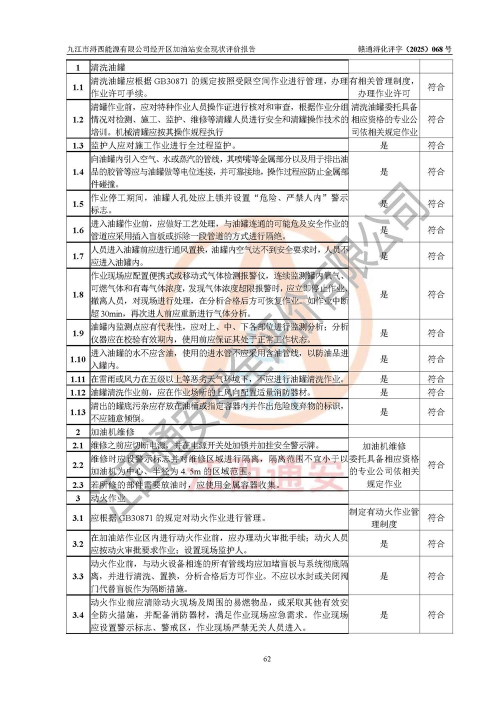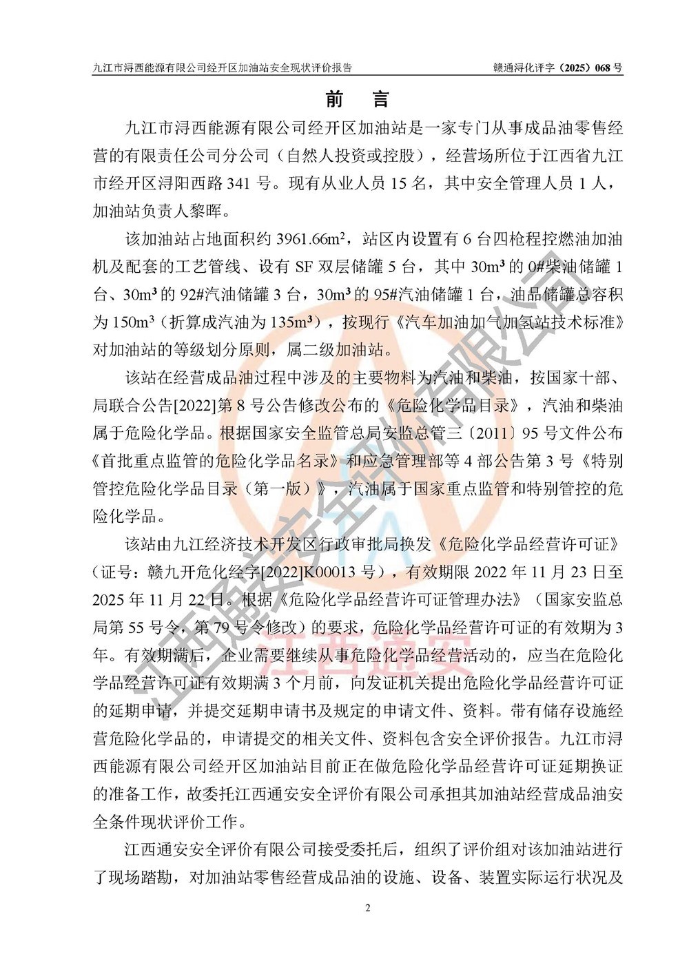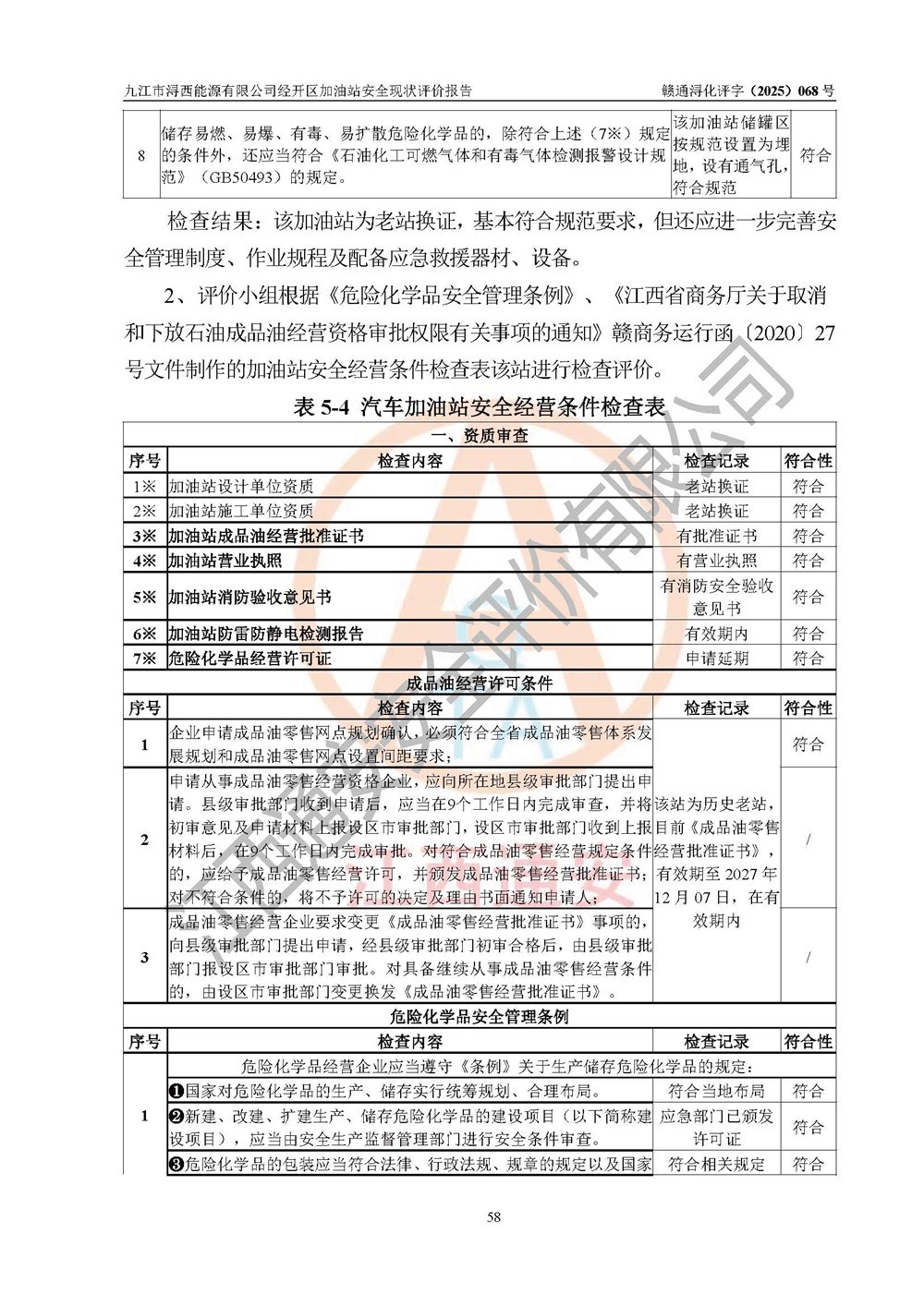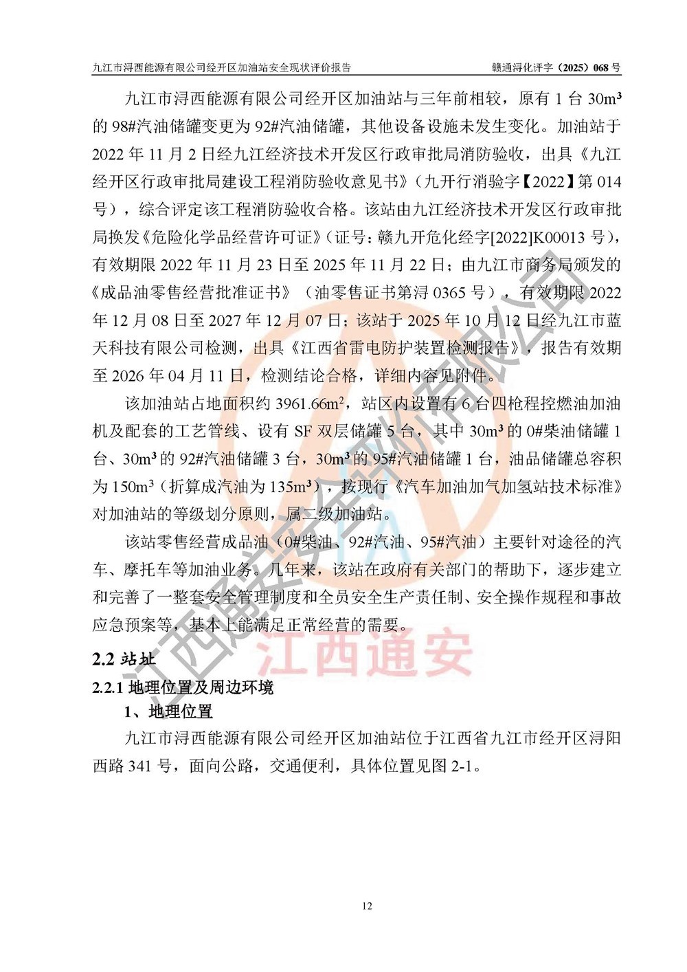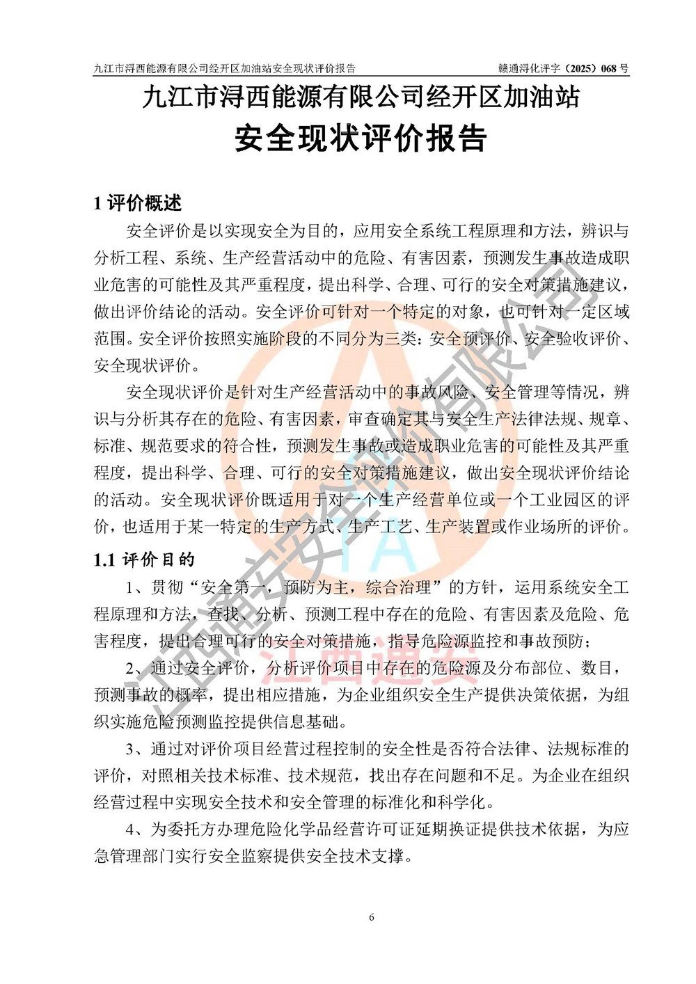 評價報告名稱 | 九江市潯西能源有限公司經(jīng)開區(qū)加油站安全現(xiàn)狀評價報告 | |||