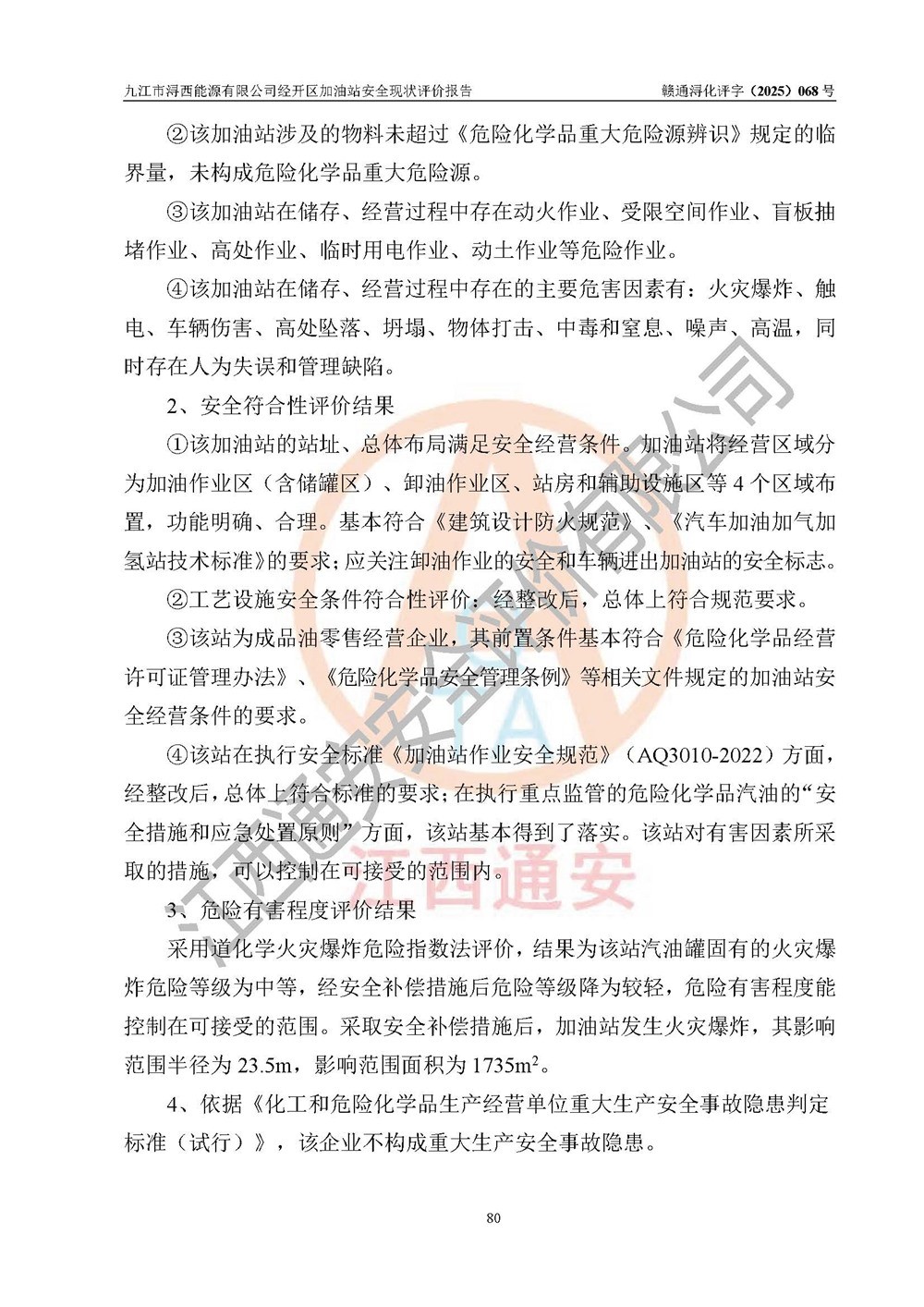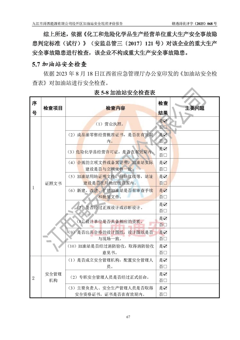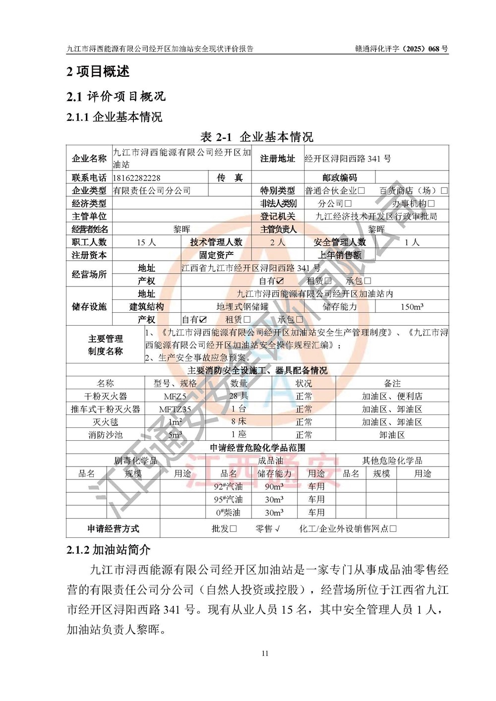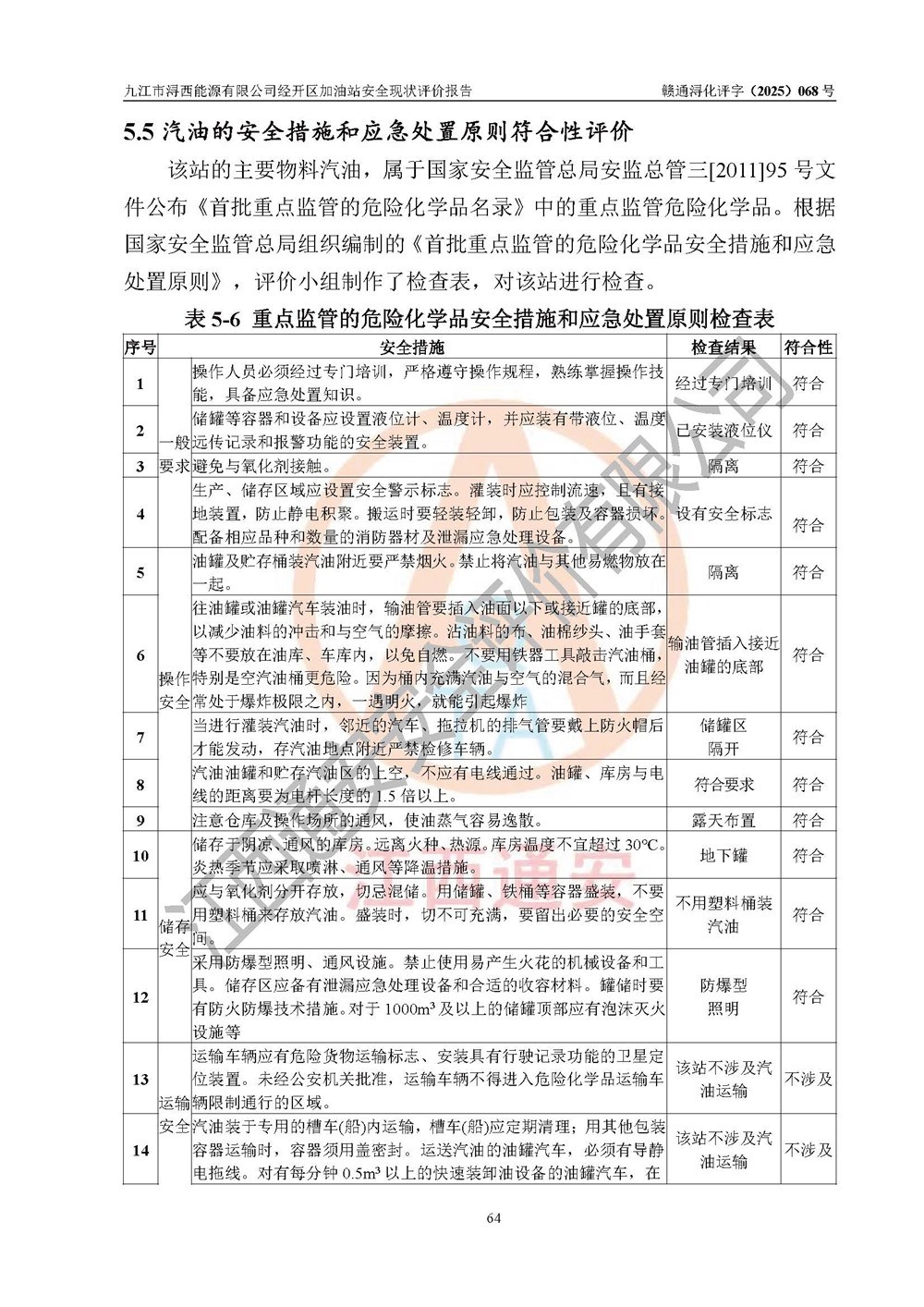 評價報告名稱 | 九江市潯西能源有限公司經(jīng)開區(qū)加油站安全現(xiàn)狀評價報告 | |||