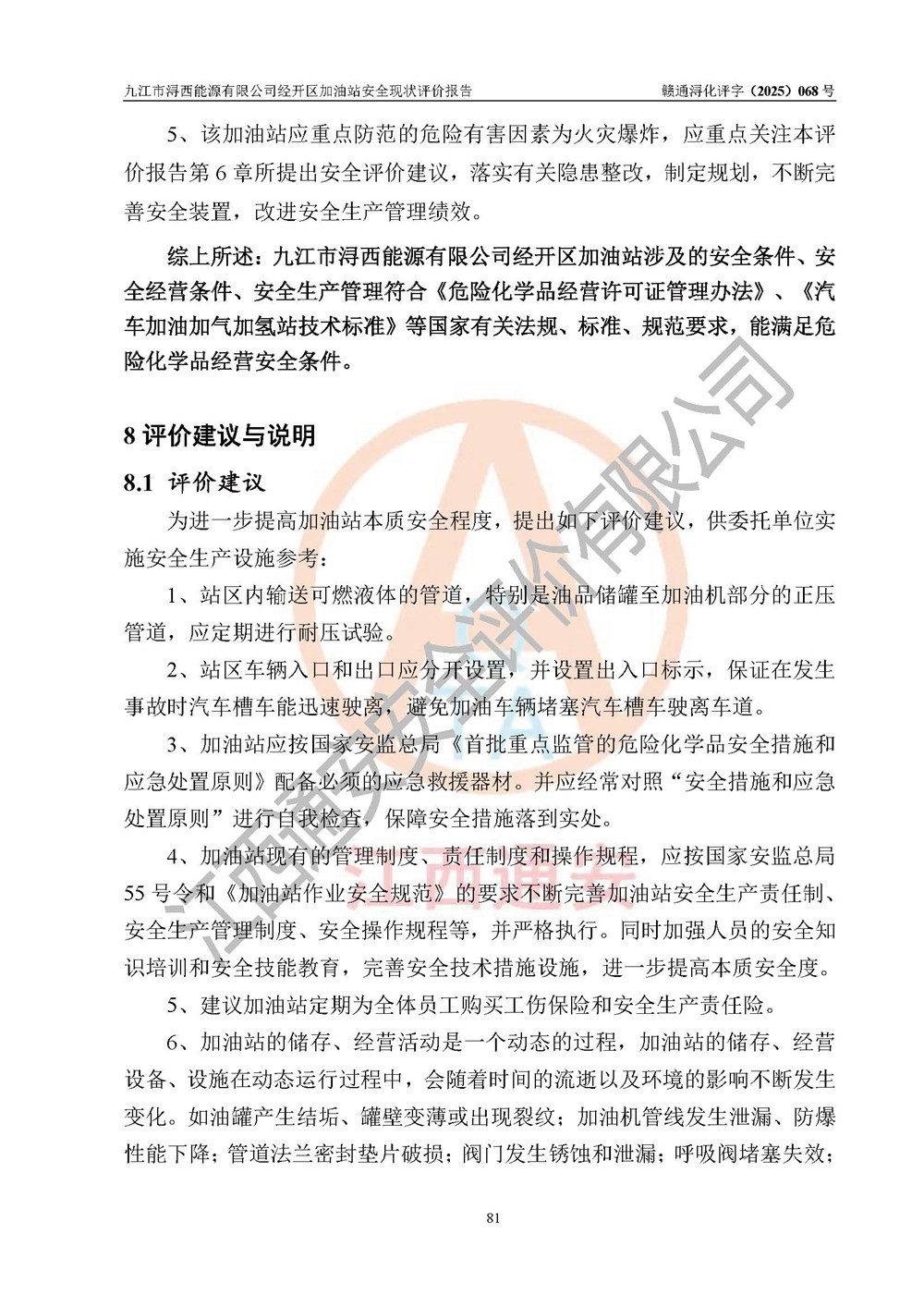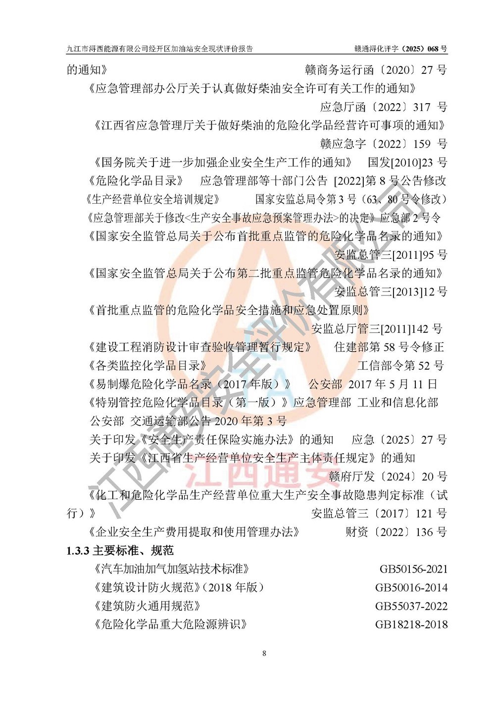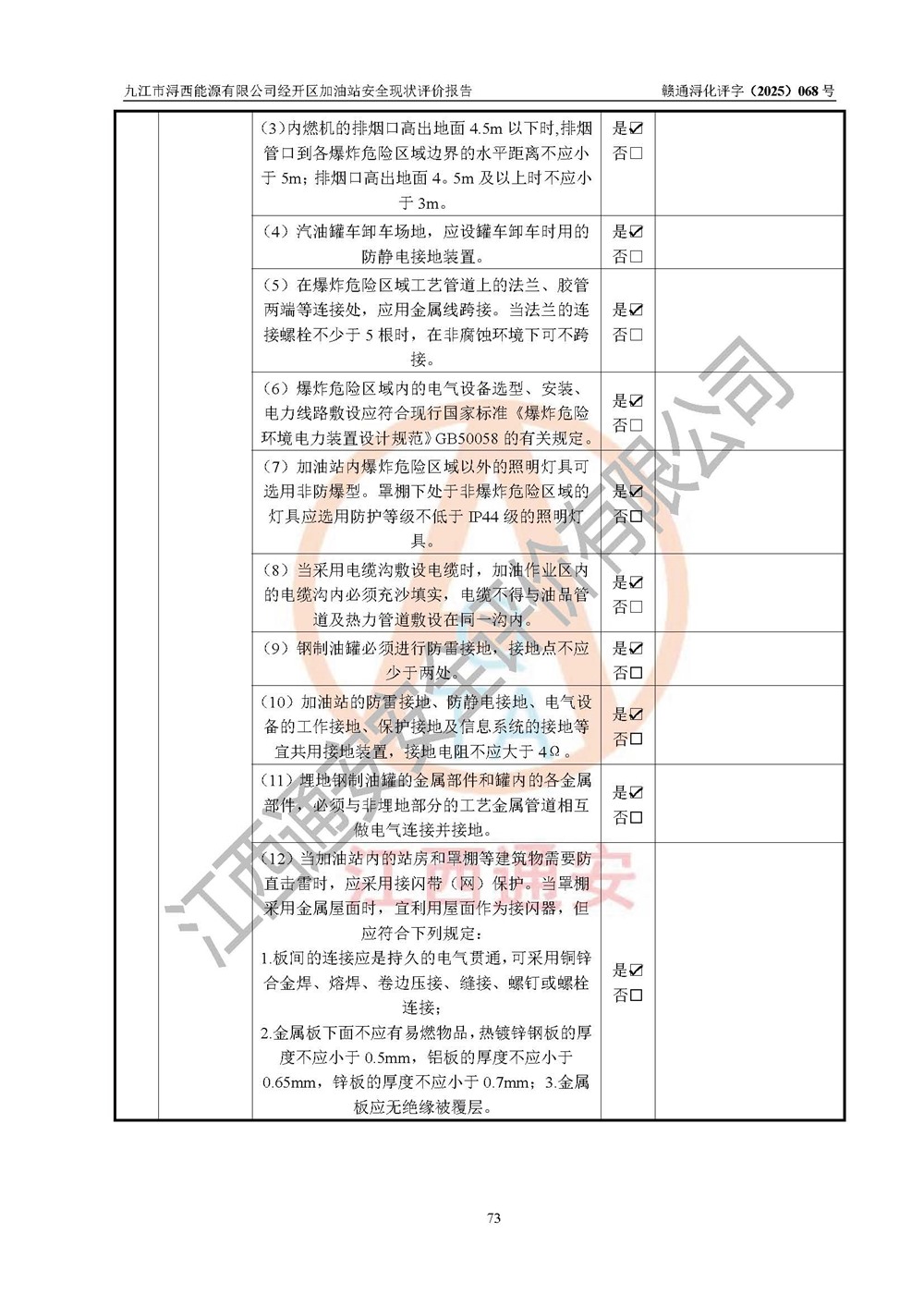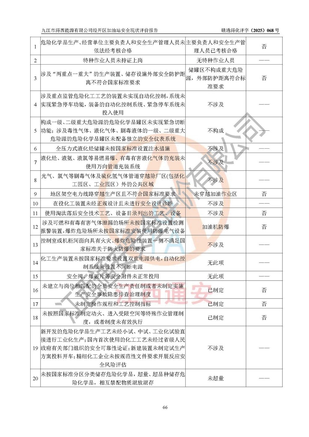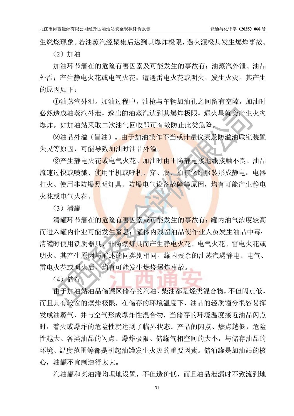 評價報告名稱 | 九江市潯西能源有限公司經(jīng)開區(qū)加油站安全現(xiàn)狀評價報告 | |||