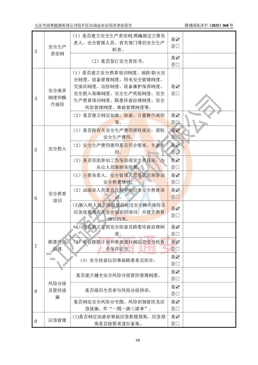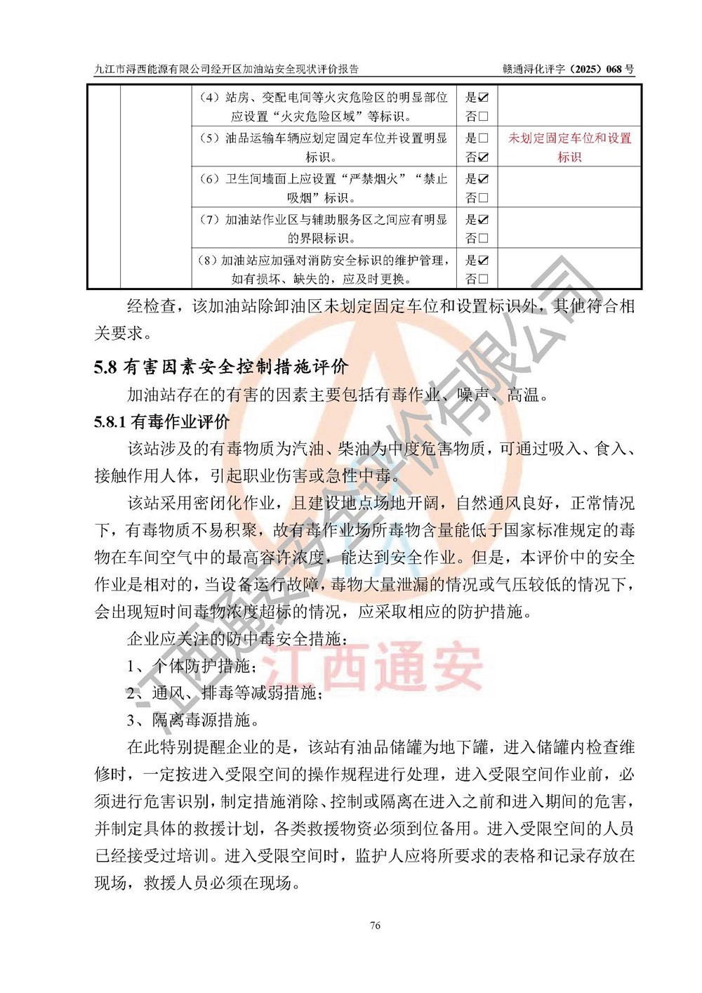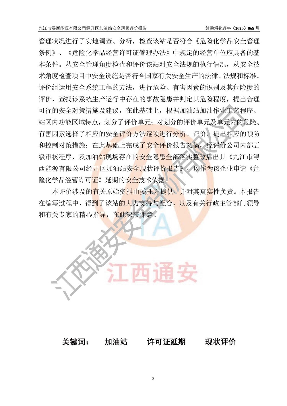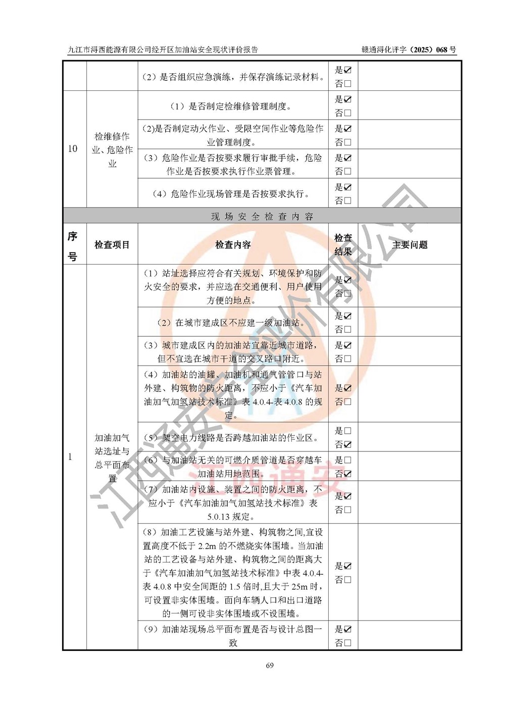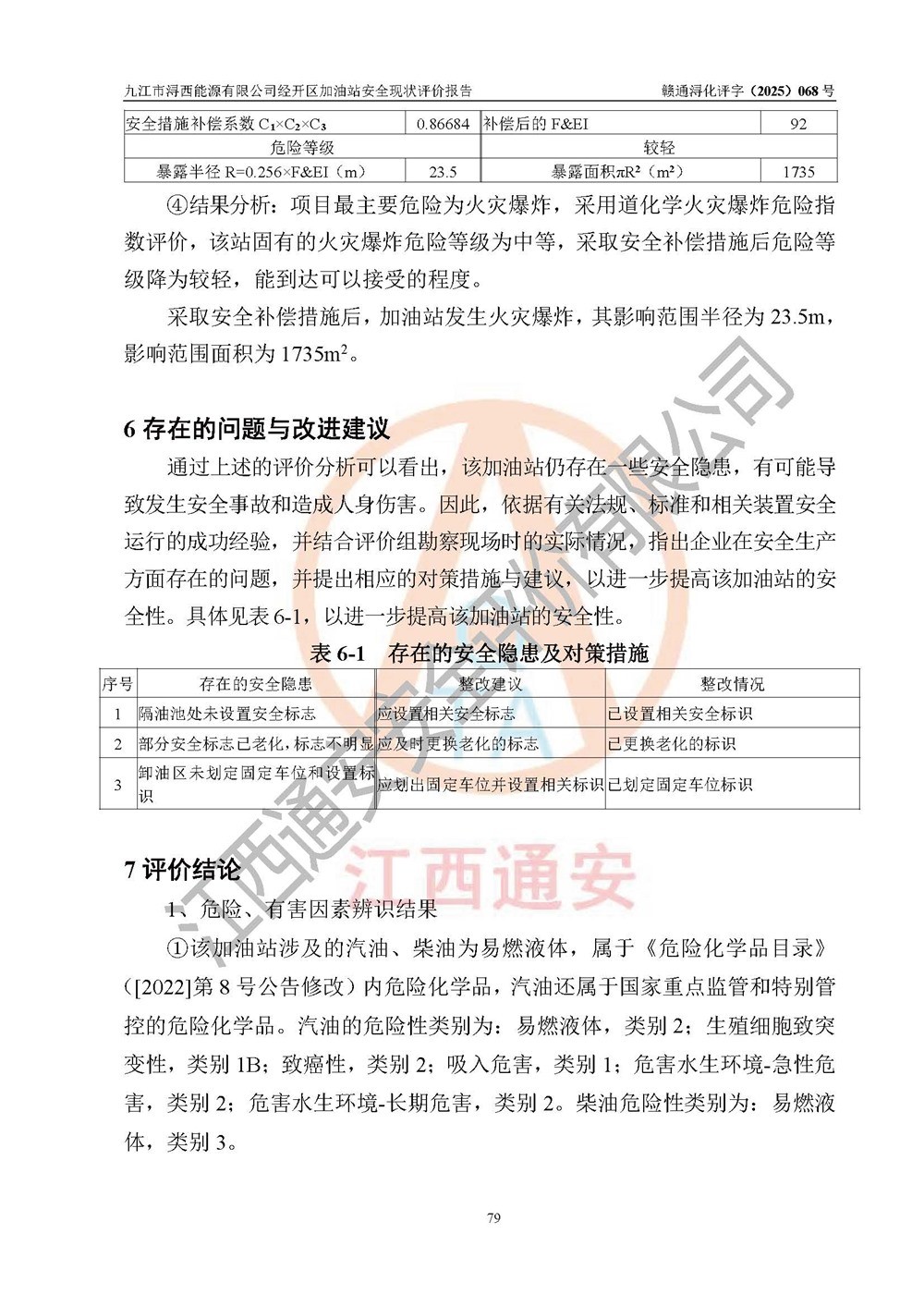 評價報告名稱 | 九江市潯西能源有限公司經(jīng)開區(qū)加油站安全現(xiàn)狀評價報告 | |||