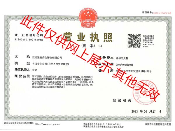 版權(quán)所有?江西通安安全評價有限公司 地址:江西省九江市開發(fā)區(qū)長城路121號