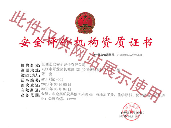 版權(quán)所有?江西通安安全評價有限公司 地址:江西省九江市開發(fā)區(qū)長城路121號