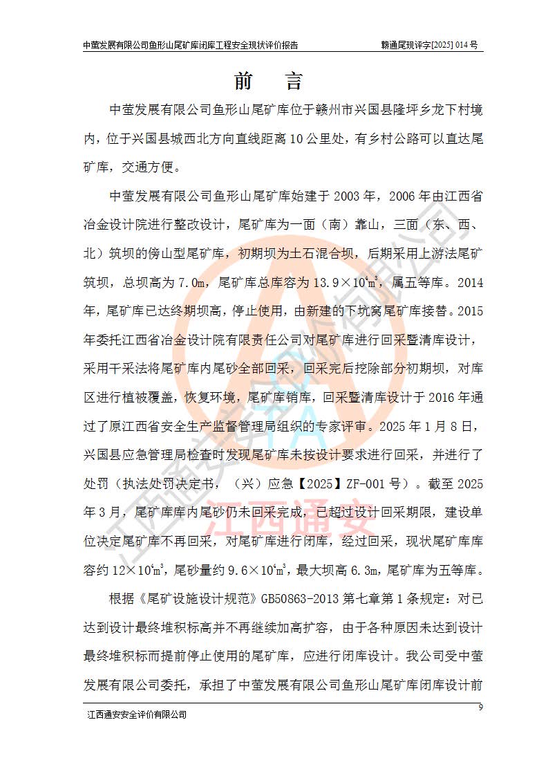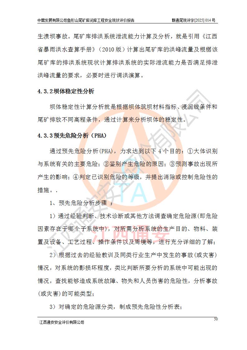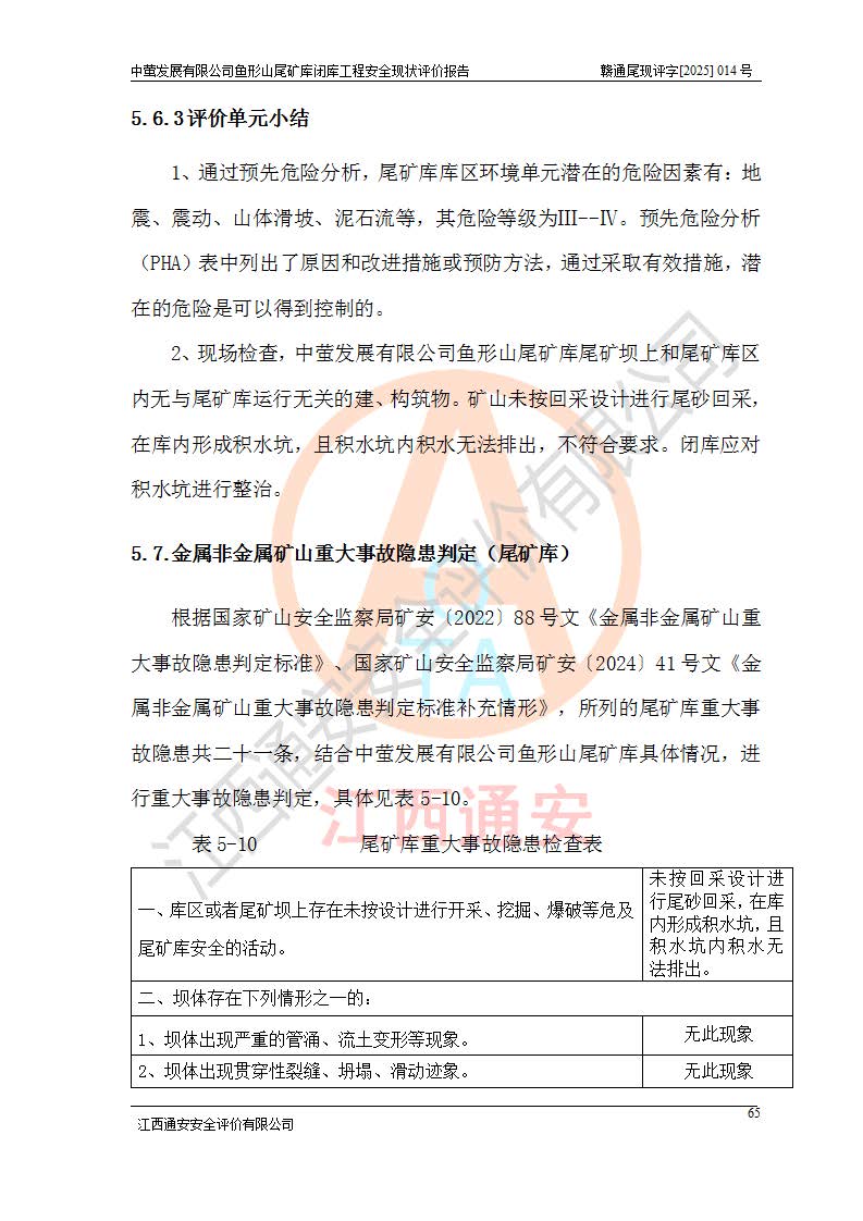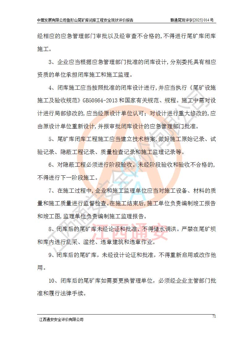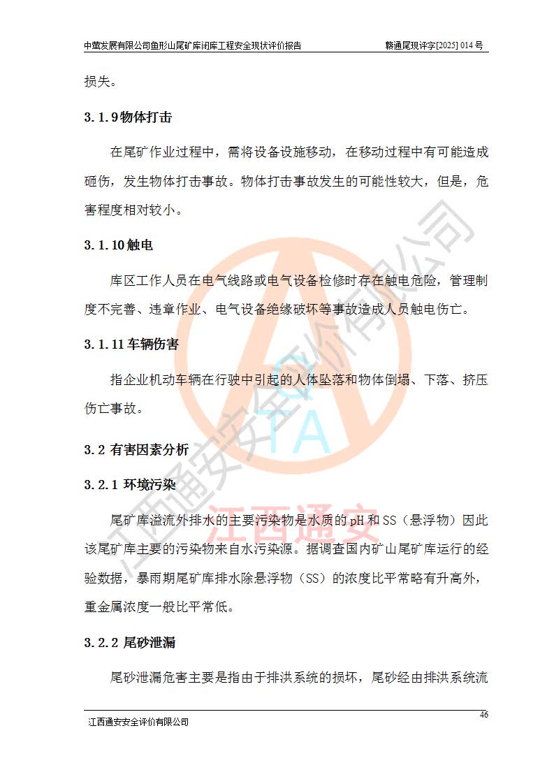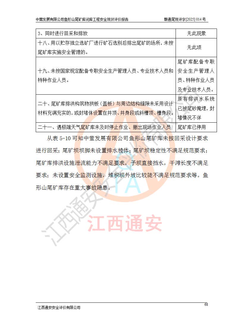 存在的問(wèn)題: 1、初期壩未設(shè)置排水棱體,下游坡比較陡,初期壩壩頂被尾砂掩埋,尾礦壩穩(wěn)定性不滿(mǎn)足規(guī)范要求; 2、堆積壩外坡比較陡,不滿(mǎn)足規(guī)范要求,東側(cè)整個(gè)尾礦壩已被下游尾砂堆掩埋,堆積壩未設(shè)置壩面排水溝,未采取護(hù)坡措施,有沖刷拉溝現(xiàn)象; 3、原有排洪水系統(tǒng)已被尾砂掩埋,封堵情況不詳,現(xiàn)狀排水管泄流能力不滿(mǎn)足要求,且進(jìn)水口位于子壩壩前,子壩直接擋水,干灘長(zhǎng)度不滿(mǎn)足要求; 4、尾礦壩上未設(shè)置安全監(jiān)測(cè)設(shè)施,安全標(biāo)志偏少; 5、未按設(shè)計(jì)進(jìn)行尾砂回采,在庫(kù)內(nèi)形成積水坑,且積水坑內(nèi)積水無(wú)法排出; 6、尾礦庫(kù)不再進(jìn)行尾砂回采,也不再使用,應(yīng)進(jìn)行閉庫(kù)。 整改措施: 1、在初期壩下游增設(shè)干砌塊石貼坡排水體,增加壩體穩(wěn)定性,在北側(cè)和東側(cè)初期壩壩腳增設(shè)壩腳排水溝。 2、對(duì)堆積壩削坡,增加壩體的穩(wěn)定性,削坡后覆土植草皮護(hù)坡,修建壩面壩肩排水溝。 3、新建溢洪道用于閉庫(kù)后尾礦庫(kù)排洪排水,拆除現(xiàn)有排水管;對(duì)原排洪系統(tǒng)進(jìn)行封堵。 4、閉庫(kù)時(shí)在尾礦壩上增設(shè)安全監(jiān)測(cè)設(shè)施,增設(shè)安全標(biāo)志。 5、對(duì)庫(kù)內(nèi)積水坑進(jìn)行平整。 6、應(yīng)進(jìn)行閉庫(kù),整治尾礦庫(kù)庫(kù)內(nèi)干灘面,為防止干灘面水土流失,覆土植草,覆土范圍為整個(gè)庫(kù)區(qū)范圍。在庫(kù)內(nèi)干灘面設(shè)置庫(kù)面排水溝,截洪溝、新建溢洪道,形成庫(kù)內(nèi)排水網(wǎng),能**的將庫(kù)內(nèi)雨水排至庫(kù)外。 |