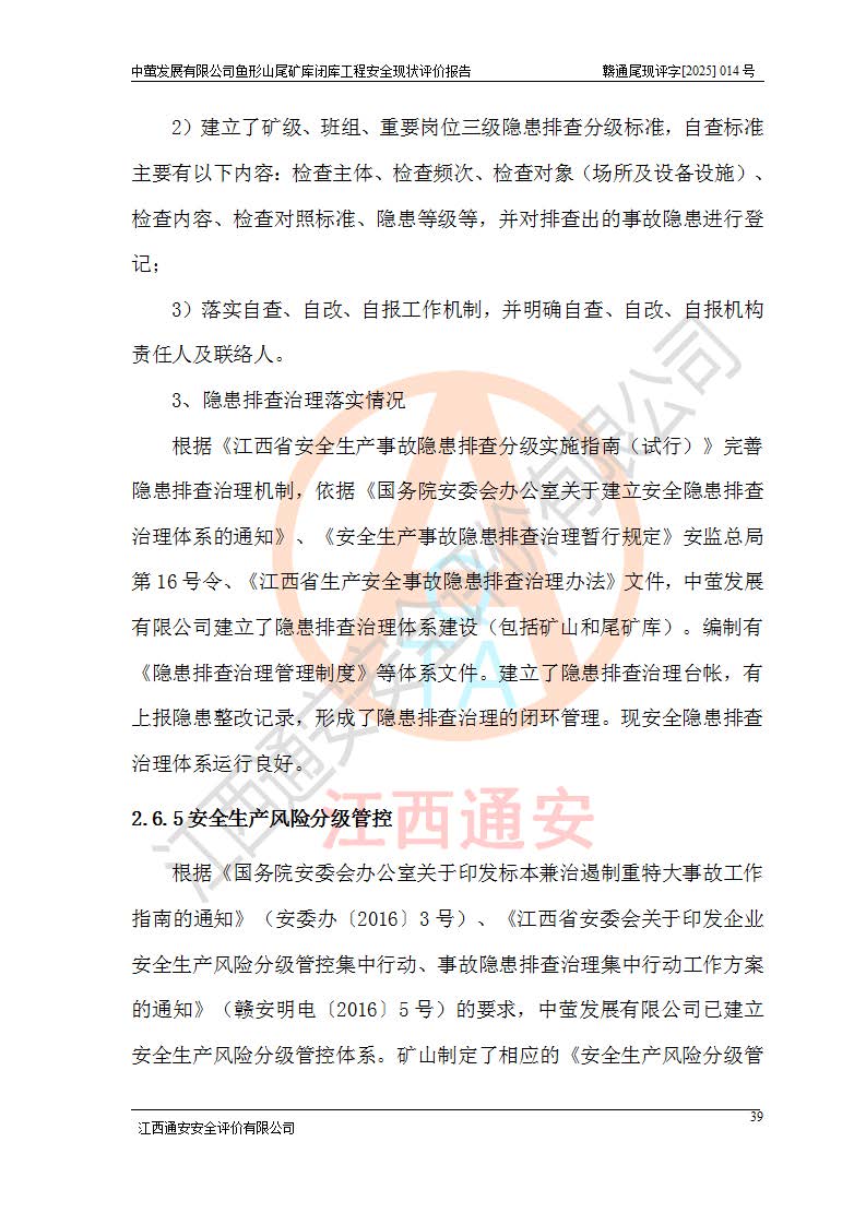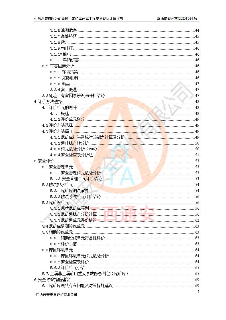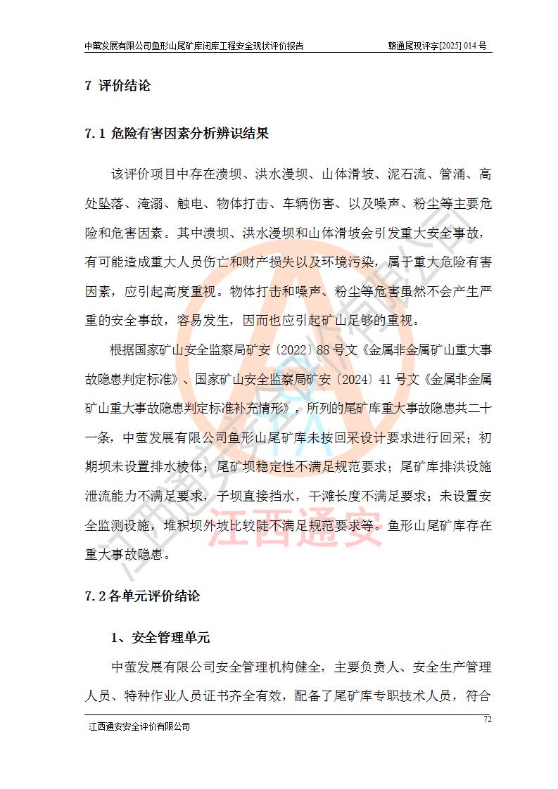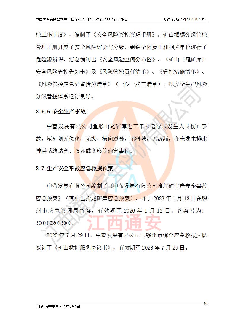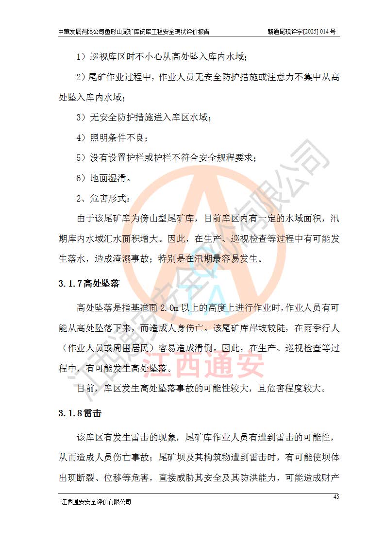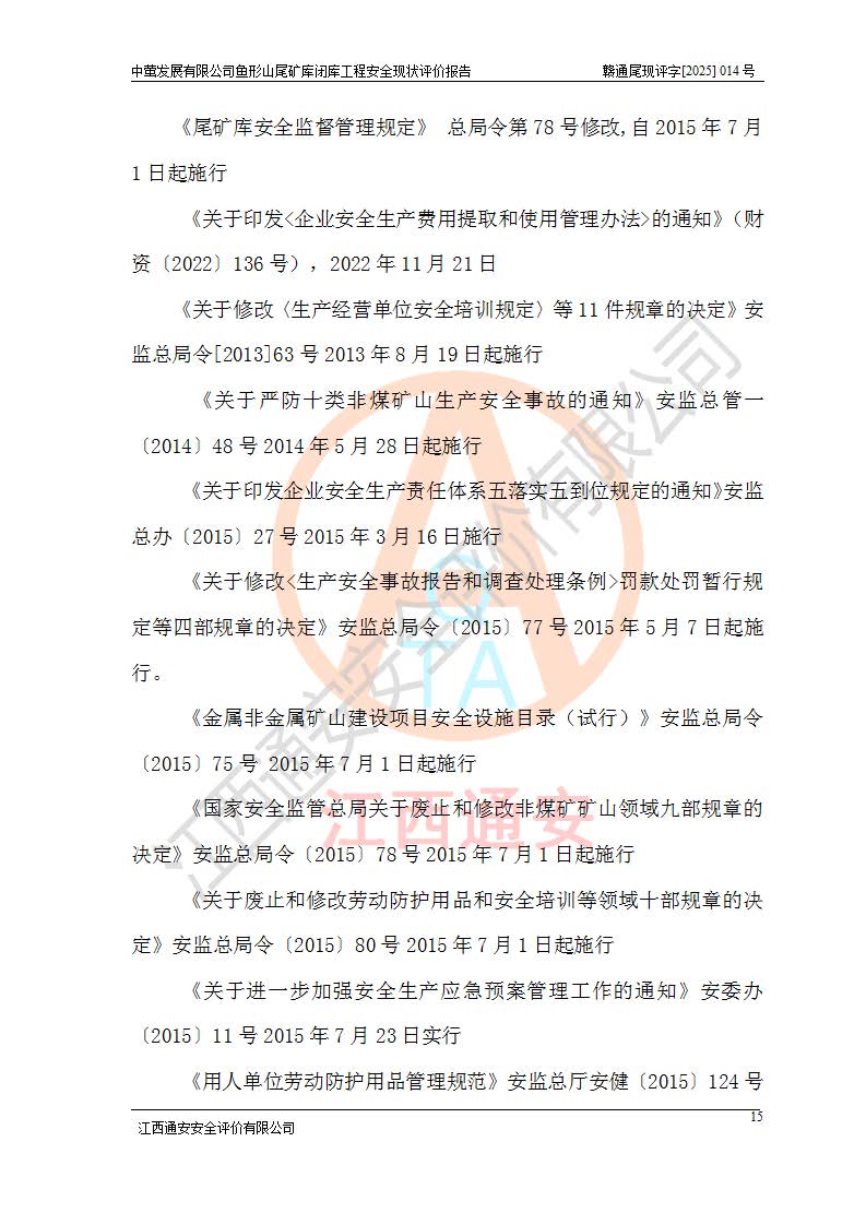 存在的問(wèn)題: 1、初期壩未設(shè)置排水棱體,下游坡比較陡,初期壩壩頂被尾砂掩埋,尾礦壩穩(wěn)定性不滿(mǎn)足規(guī)范要求; 2、堆積壩外坡比較陡,不滿(mǎn)足規(guī)范要求,東側(cè)整個(gè)尾礦壩已被下游尾砂堆掩埋,堆積壩未設(shè)置壩面排水溝,未采取護(hù)坡措施,有沖刷拉溝現(xiàn)象; 3、原有排洪水系統(tǒng)已被尾砂掩埋,封堵情況不詳,現(xiàn)狀排水管泄流能力不滿(mǎn)足要求,且進(jìn)水口位于子壩壩前,子壩直接擋水,干灘長(zhǎng)度不滿(mǎn)足要求; 4、尾礦壩上未設(shè)置安全監(jiān)測(cè)設(shè)施,安全標(biāo)志偏少; 5、未按設(shè)計(jì)進(jìn)行尾砂回采,在庫(kù)內(nèi)形成積水坑,且積水坑內(nèi)積水無(wú)法排出; 6、尾礦庫(kù)不再進(jìn)行尾砂回采,也不再使用,應(yīng)進(jìn)行閉庫(kù)。 整改措施: 1、在初期壩下游增設(shè)干砌塊石貼坡排水體,增加壩體穩(wěn)定性,在北側(cè)和東側(cè)初期壩壩腳增設(shè)壩腳排水溝。 2、對(duì)堆積壩削坡,增加壩體的穩(wěn)定性,削坡后覆土植草皮護(hù)坡,修建壩面壩肩排水溝。 3、新建溢洪道用于閉庫(kù)后尾礦庫(kù)排洪排水,拆除現(xiàn)有排水管;對(duì)原排洪系統(tǒng)進(jìn)行封堵。 4、閉庫(kù)時(shí)在尾礦壩上增設(shè)安全監(jiān)測(cè)設(shè)施,增設(shè)安全標(biāo)志。 5、對(duì)庫(kù)內(nèi)積水坑進(jìn)行平整。 6、應(yīng)進(jìn)行閉庫(kù),整治尾礦庫(kù)庫(kù)內(nèi)干灘面,為防止干灘面水土流失,覆土植草,覆土范圍為整個(gè)庫(kù)區(qū)范圍。在庫(kù)內(nèi)干灘面設(shè)置庫(kù)面排水溝,截洪溝、新建溢洪道,形成庫(kù)內(nèi)排水網(wǎng),能**的將庫(kù)內(nèi)雨水排至庫(kù)外。 |